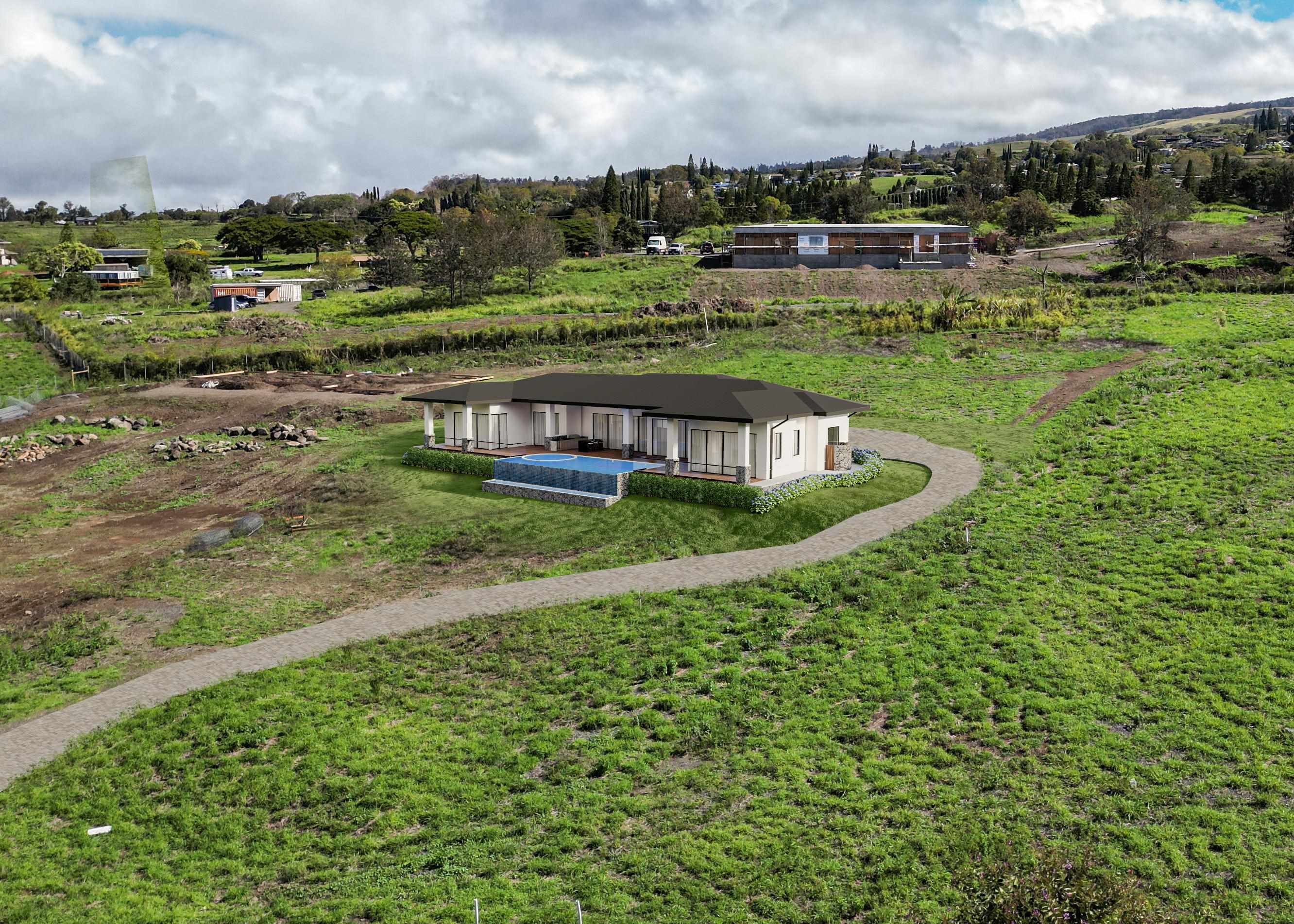 CPR Unit A currently under construction with a completion date of 2026, this brand new 6,000 sq ft under roof home can be fully customized to become your dream hale. Situated in the highly desired gated Kula I'o subdivision on 1.5 acres of flat usable land, theres plenty of space for your garden, animals, or a large barn. At 2,280 feet above sea level, this 4 bed 4 bath house enjoys a perfect year round climate. Integrating large sliding glass doors and a expansive covered lanai, the infinity lap pool with spa, Baja ledges, and fountain bubblers overlook a gorgeous sun setting ocean view.