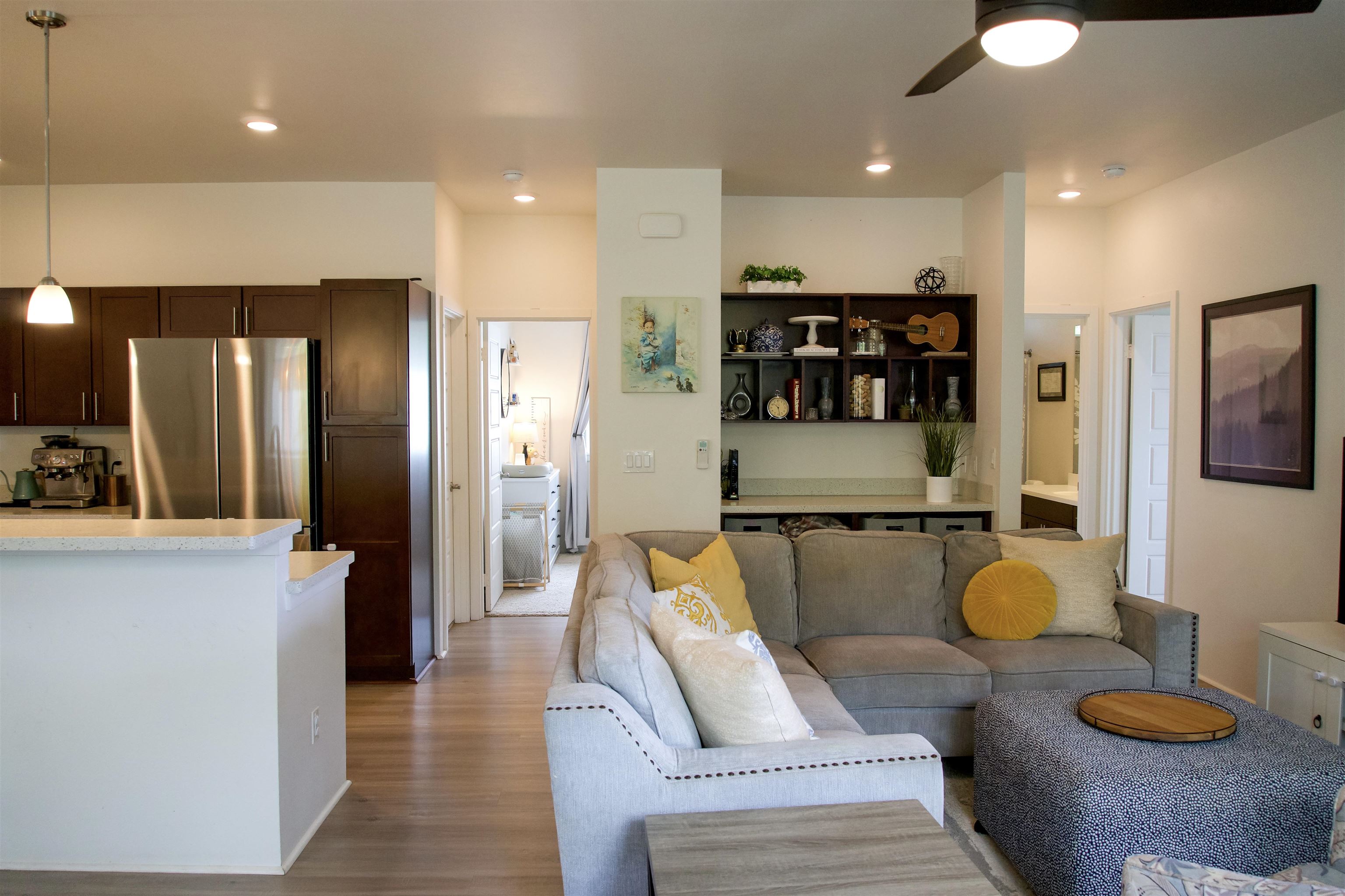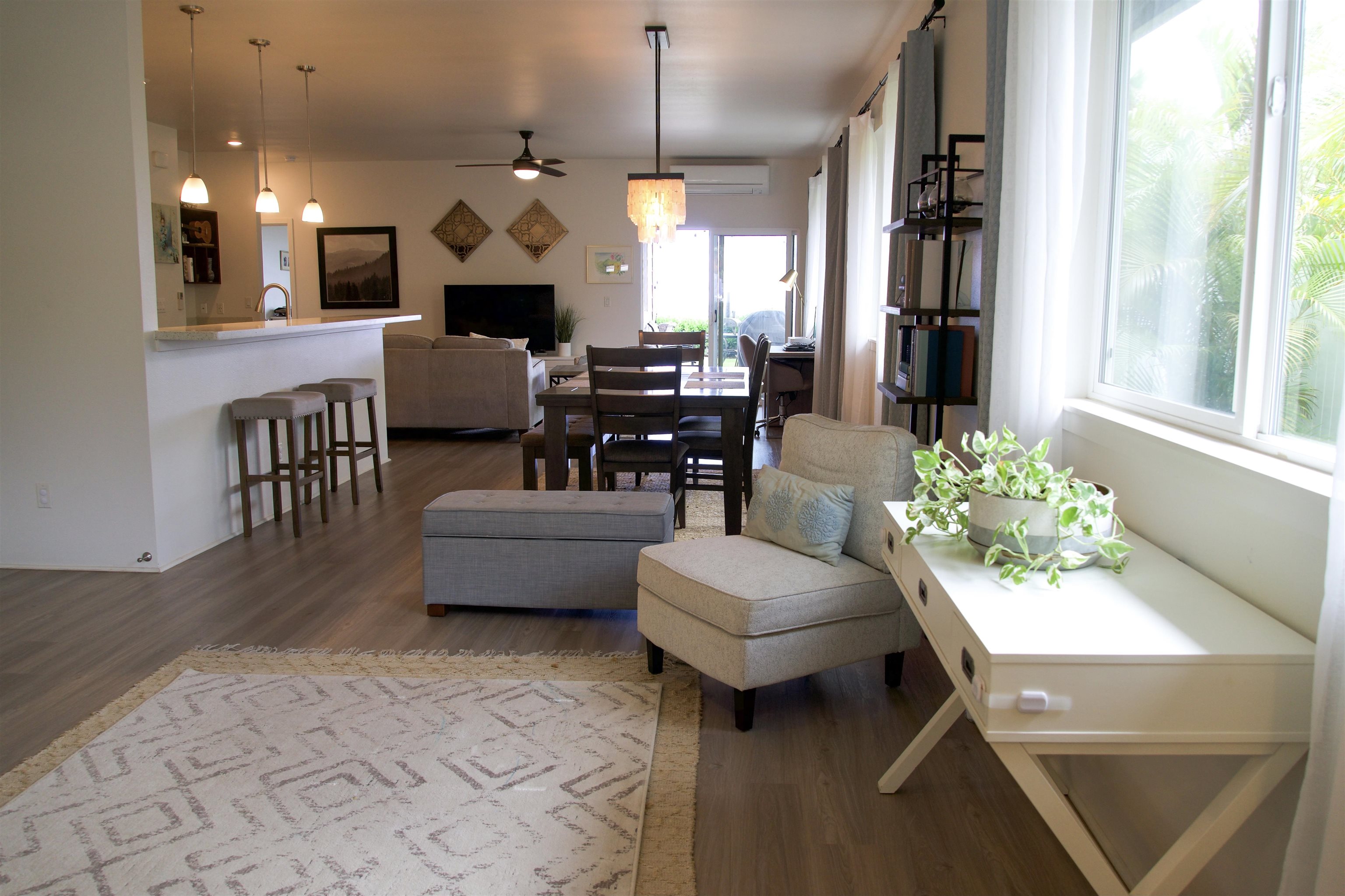 This is it. Look no further. Single level. Photovoltaic panels. Open floor plan. Gorgeous views. This home has it all! A Beautiful 3 bedroom, 2 bath home in central Maui, it features luxury vinyl plank flooring throughout the main living area with carpeting for coziness in the bedrooms. Modern ceiling fans in every room and a split a/c unit for the living room along with a 13.5 kWh battery for storage and which monitors the National Weather Service warnings and preemptively charges itself from the grid if needed. Newer appliances in the kitchen, Corian counters and a convenient drop zone for the organizers in the home. The garage is finished with epoxy flooring. The views are expansive and stunning from your covered lanai where you're sure to spend many memorable hours gazing at the ocean and Haleakala. The fully-fenced yard features an array of mature makana (gifts) itself with Dwarf Meyer Lemon and Tahitian Lime trees, liliko'i on the trellis vine, plumeria, ohi'a, hibiscus, ti leaf, palms Foxtail Agave and more! (Photos are from prior to tenant move in)