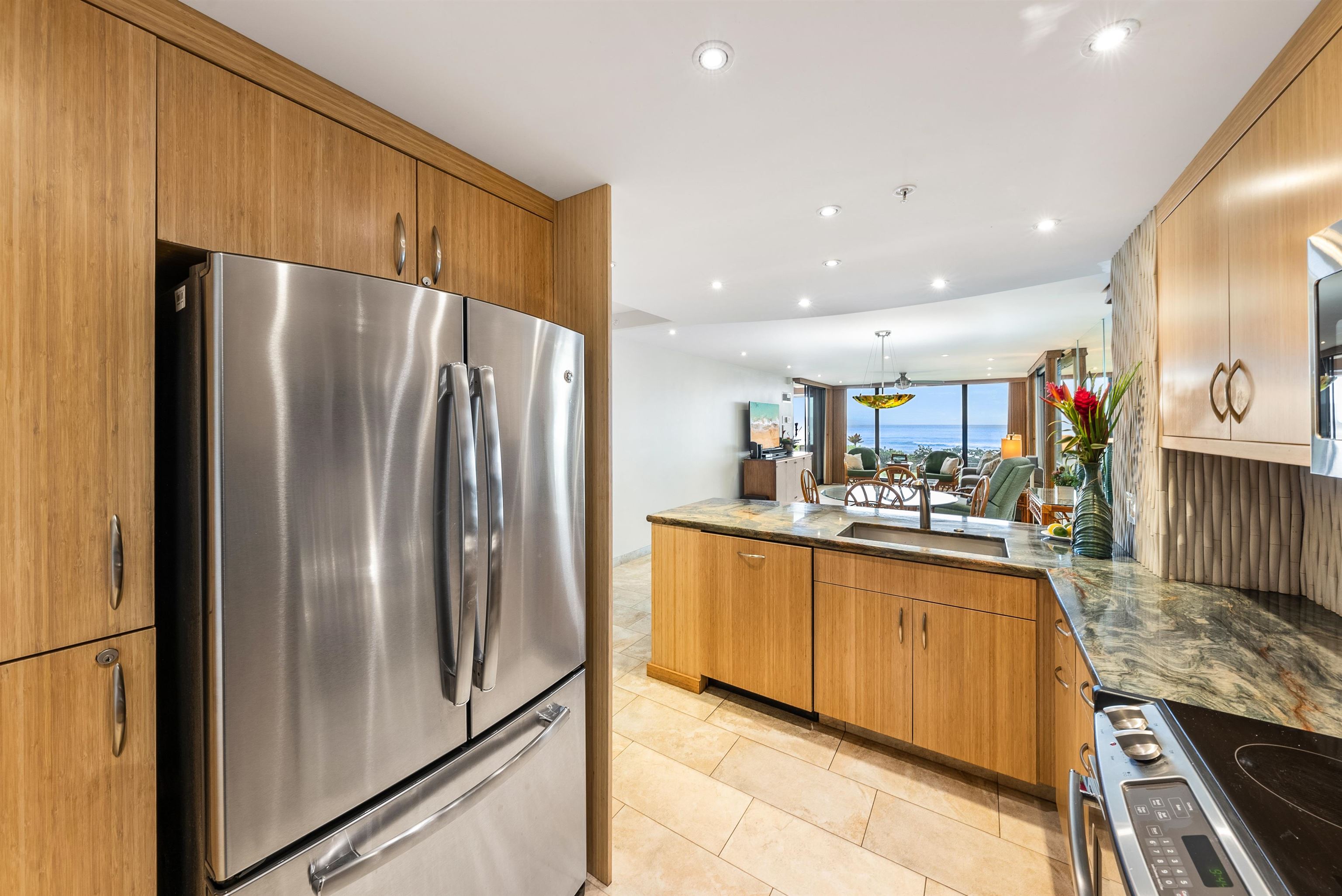 A very rare location at the Mahana, a direct oceanfront, corner ground floor 2 bed/2 bath condominium. This luxury condo is truly one of a kind offering an extra sense of privacy on this quiet, corner location, surrounded by tropical gardens for a peaceful and serene atmosphere. Just 30 feet from the sandy beach to enjoy a 2-mile stretch to Black Rock, snorkel, swim, boogie board, surf or kick back and relax in the sun. No elevators to contend with. Enjoy the stunning views of the neighbor islands of Lana'i and Moloka'i on the extra-large lanai. Perfect for sunset cocktails and viewing the whales in winter, and turtles, dolphins and surfers all year round. Superb location for panoramic ocean and mountain views and arguably the best location in West Maui. The beachfront boardwalk leads to beach activities, numerous restaurants, Whalers Village Shopping Center and beyond. The Mahana is Hotel zoned allowing short term vacation rentals. This unit is being sold turnkey, move-in ready, and is part of the highly regarded on-site Aqua Aston vacation rental management program. This unit has been meticulously maintained with exquisite finishes including tile flooring throughout, granite countertops, solid bamboo cabinetry, stainless steel appliances, and central AC. This superior condo that sleeps six and includes a new comfortable sofa sleeper. Unit 109 boasts a spacious primary bedroom with a king size bed and oceanfront lanai where the ocean waves will lull you to sleep. Enjoy the premier amenities including an oceanfront swimming pool, Jacuzzi, BBQ area, shuffleboard and a lit tennis/pickleball court. Includes ample interior owner locked closets and cabinets, plus an exterior locker and exterior shared storage for surfboards and bicycles. Monthly Maintenance Fee includes: $2753.06 Maintenance + $1284.96 Reserves + $879.24 Utilities + $2703.41 Special Assessment = $7620.67 Total. In April 2027 the special assessment will be removed.