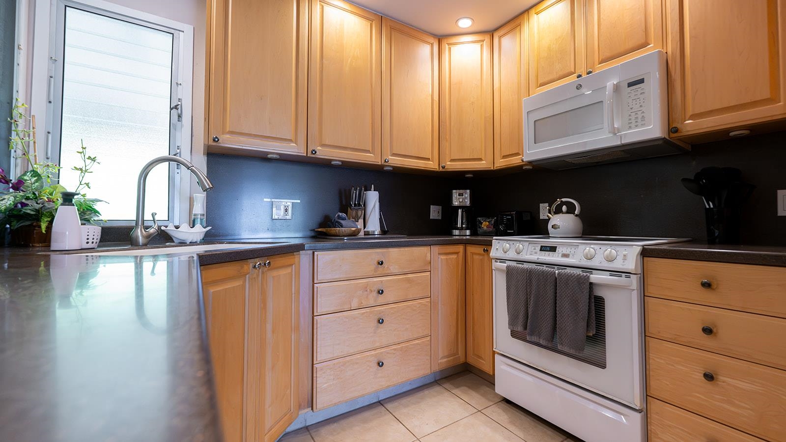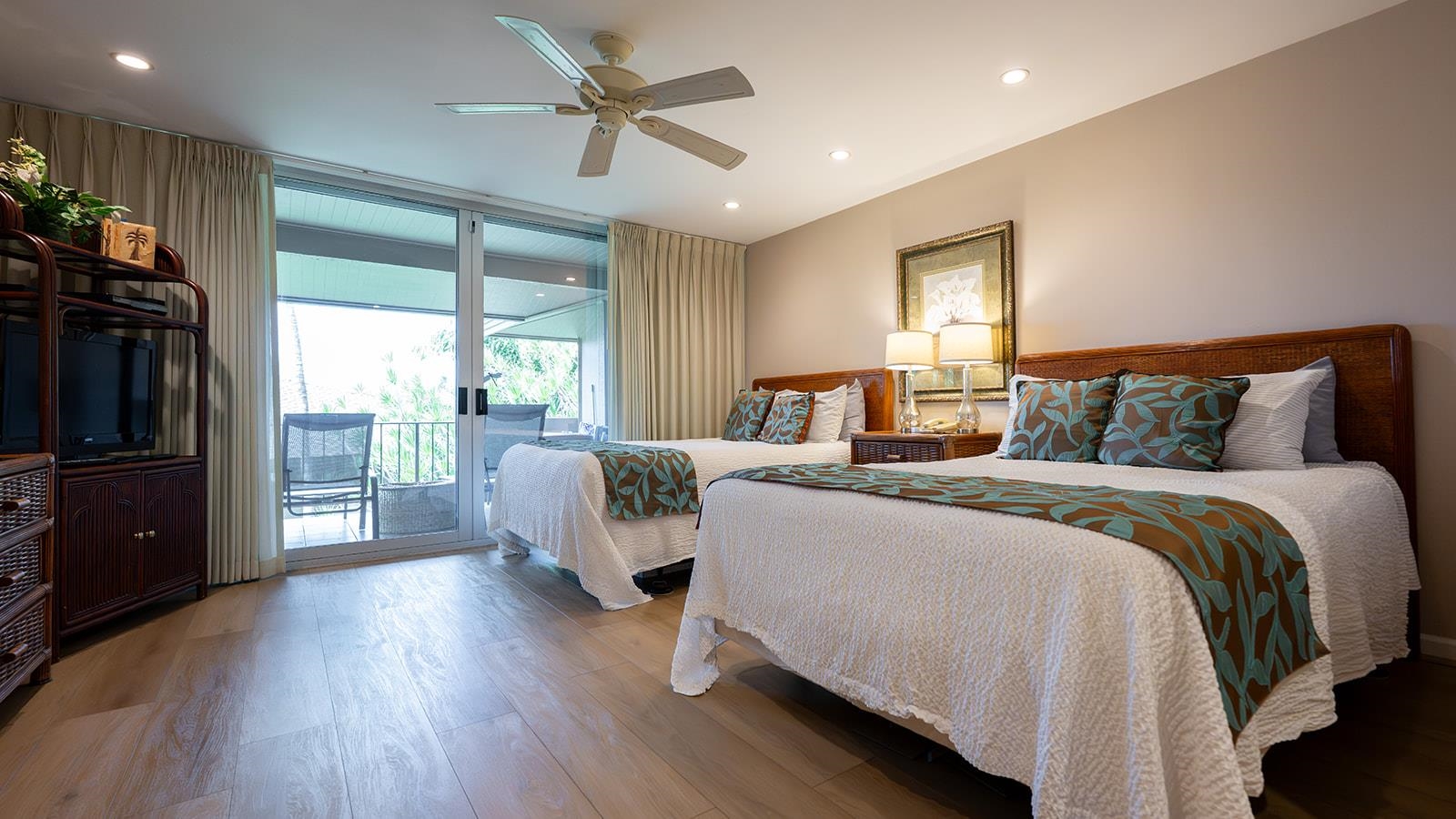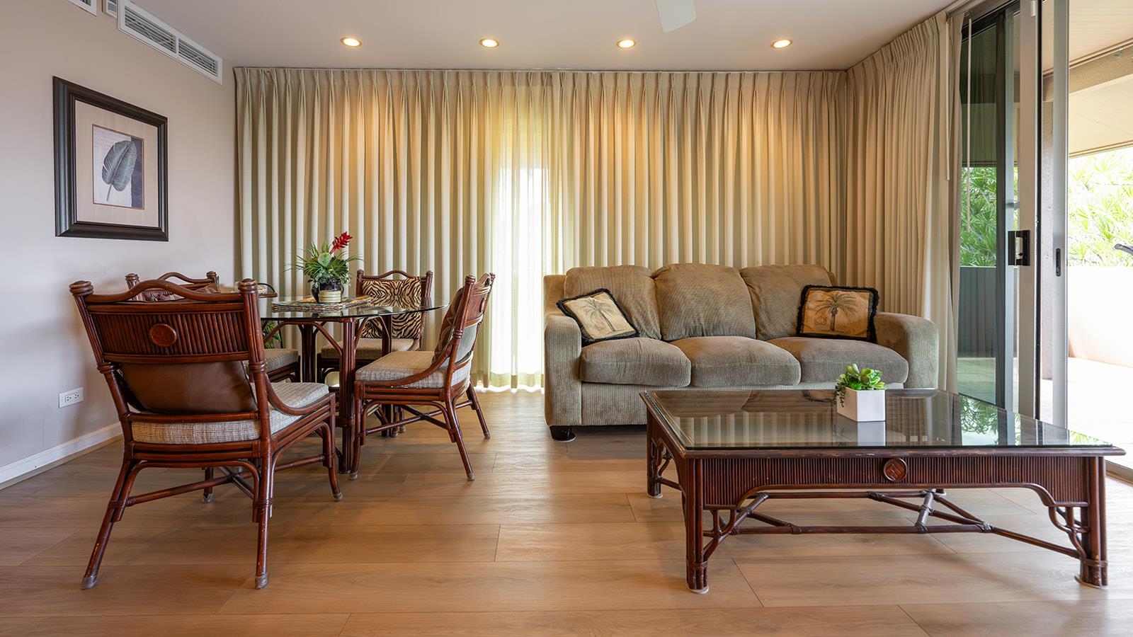The Maui Eldorado complex is in the heart of the Kaanapali world renowned resort area, known for its beaches, its views, its golf courses, its restaurants and its island charm. The complex itself sits directly on the golf course and has a unique "cabana" that sits directly on the beach, within fifty feet of the ocean, and is reserved for the exclusive use of owners and guests. It is VERY SPECIAL. Additionally, the complex features three pools, an exercise room, an outdoor gaming area and a shuttle to escort you to the cabana or elsewhere on the grounds. And the unit itself? Arguably one of the best in the complex. With 960 interior square feet and an additional 287 square feet of livable lanai area, it has been completely upgraded (new flooring, outdoor lanais, sliders to the lanais, appliances ... including a large washer/dryer) and is one of the rarer one bedroom units that has two full bathrooms! Because this is a second floor corner unit, it enjoys the Maui sunlight streaming into two sides of the unit (giving it an even more tropical and open feeling) and yet is very private, overlooking palms, shrubbery and a grassy area. The unit is also conveniently located close to two of the three pools and the main parking areas. There is usually a reason why the good ones are priced accordingly, and one look will help you understand why this unit is fairly priced while being "simply wow"! Oh, and an added bonus ... the HOA fees include ALL utilities and, while the complex is a leasehold property, the owners have been able to purchase 10% of the land, so it is actually a 10% fee simple, 90% leasehold property. Please note that the Maui Eldorado complex is zoned "apartment" and that there is currently a County review underway regarding the continuation of short-term vacation rentals in "apartment" zoned complexes. Please discuss this matter with your Realtor for more details.