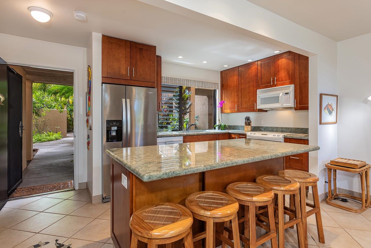 Hidden within one of Wailea Ekahi’s most peaceful garden enclaves, unit 20-D is a light-filled retreat designed for effortless island living just moments from the golden sands of Keawakapu Beach. From the scent of plumeria in the breeze to the quiet rustle of palms just outside your lanai, every moment here invites calm, comfort, & connection to nature. This spacious 1Bd./2Ba., 952 s.f., freshly painted, ground-floor unit opens wide to lush tropical landscaping & offers seamless indoor-outdoor living. Bright airy interiors, & a spacious 228 s.f. tiled lanai afford a level of peace, privacy, & indoor-outdoor harmony that’s rare even in Wailea. Floor-to-ceiling beveled glass mirrors in the main living area reflect the vibrancy of the surrounding gardens & amplify the sense of openness & airiness. Two separate entrances provide functional flexibility, added privacy, ideal for extended stays or welcoming guests. The kitchen features Esmerelda granite countertops, matching backsplash, & a prep island.The bedroom suite is generously sized with ample closet space & private en-suite bath. From here, direct access to the lanai allows for effortless outdoor living from sunrise to evening stars. Every detail is designed to create a sense of comfort, refuge, belonging. Unit 20-D is located near the community’s coastal entrance & the world-class beauty of Keawakapu Beach, putting the sand, the surf, & the beachfront pool pavilion just moments from your door. Guests enjoy multiple quiet pools, mature tropical landscaping, walking paths, & a vibrancy that makes Wailea Ekahi one of Maui’s most beloved beachfront developments. The best of Wailea: championship golf courses, top-rated restaurants, art galleries, luxury spas, & the acclaimed Shops at Wailea, are minutes away. Whether you're seeking a peaceful full-time residence, a sun-filled second home, or a vacation rental, Wailea Ekahi offers a lifestyle that’s equal parts soul-soothing & extraordinary. What you’ll find here is more than a home it’s a rhythm, a feeling, a lifestyle you’ll never want to leave.
