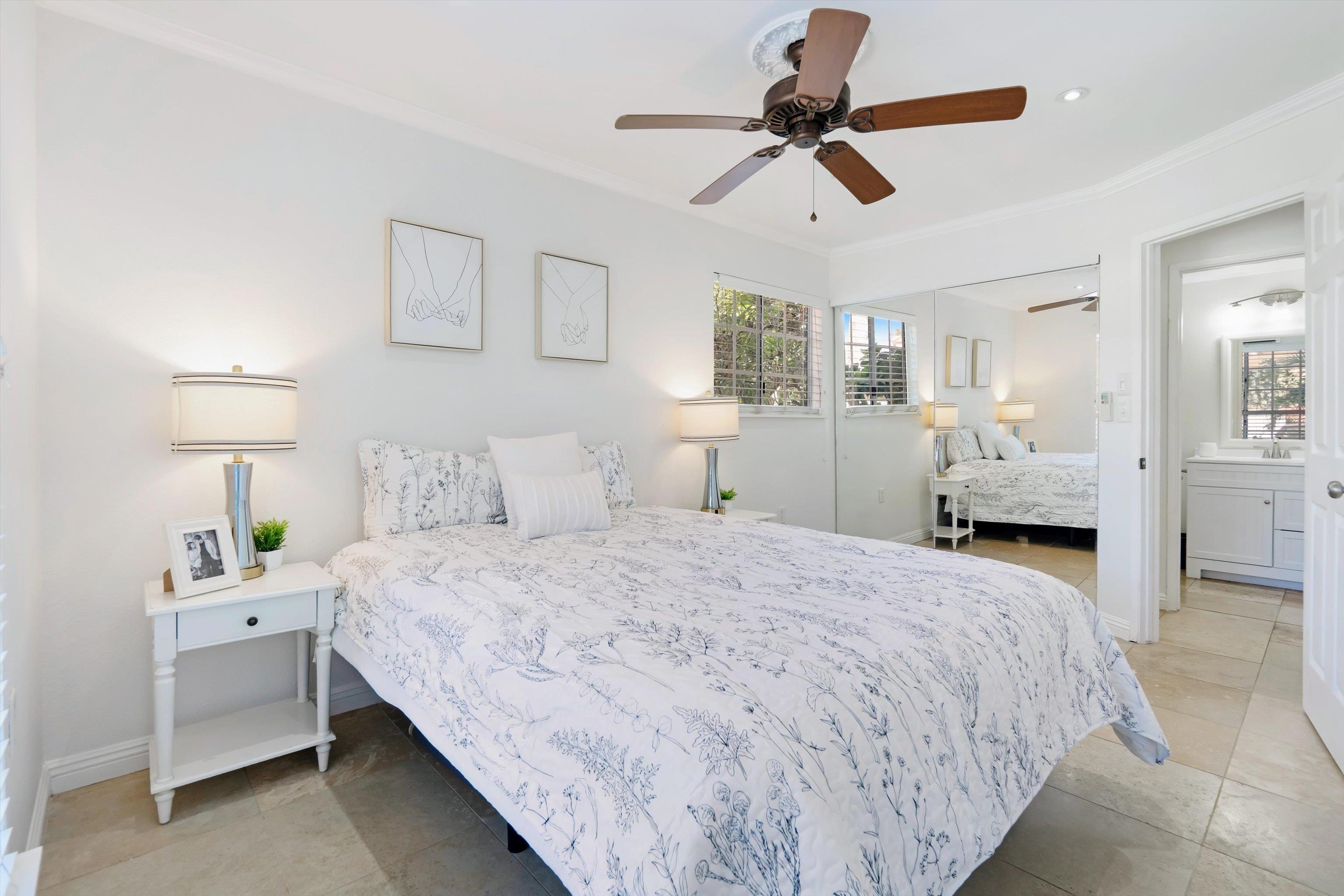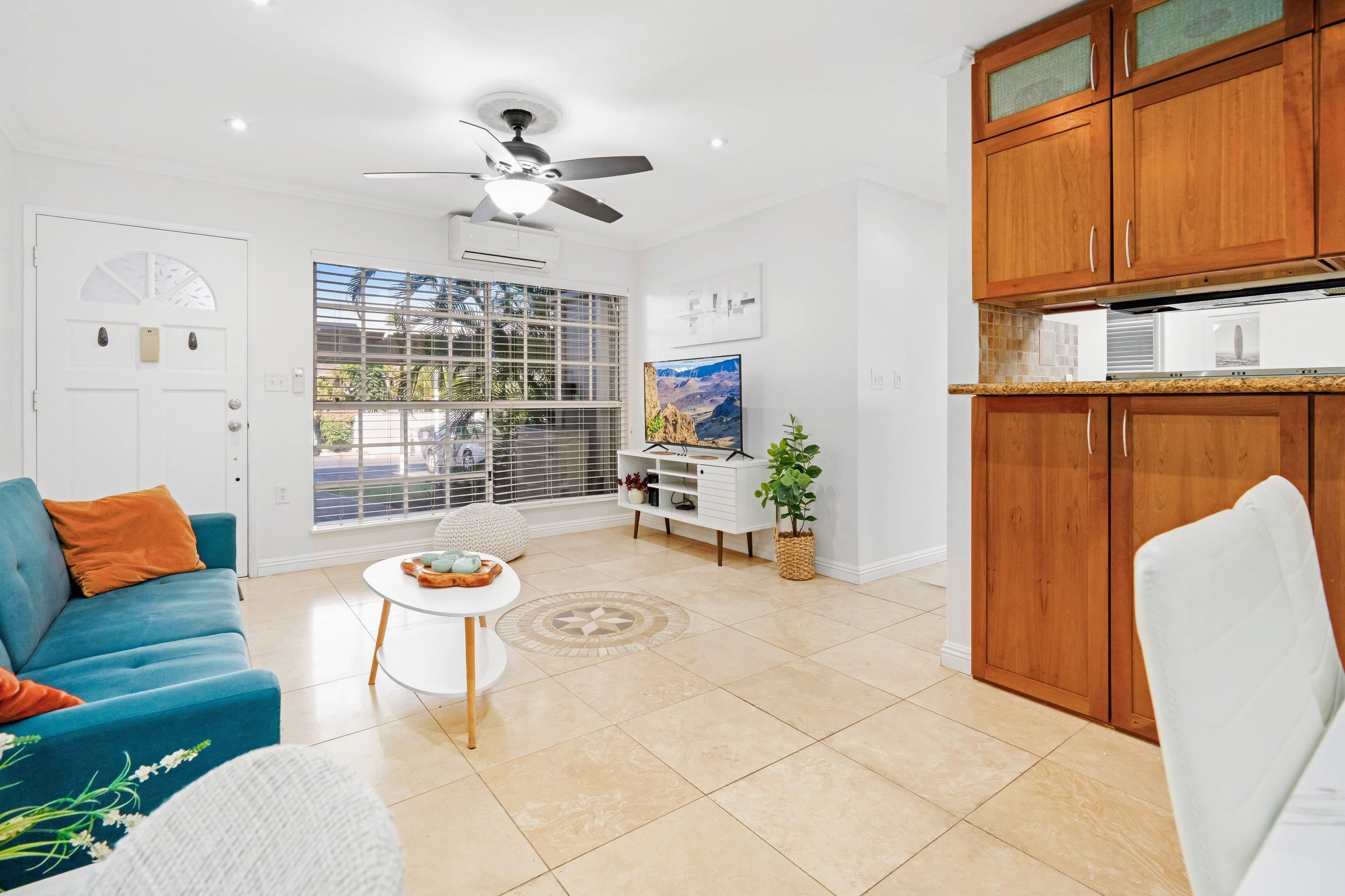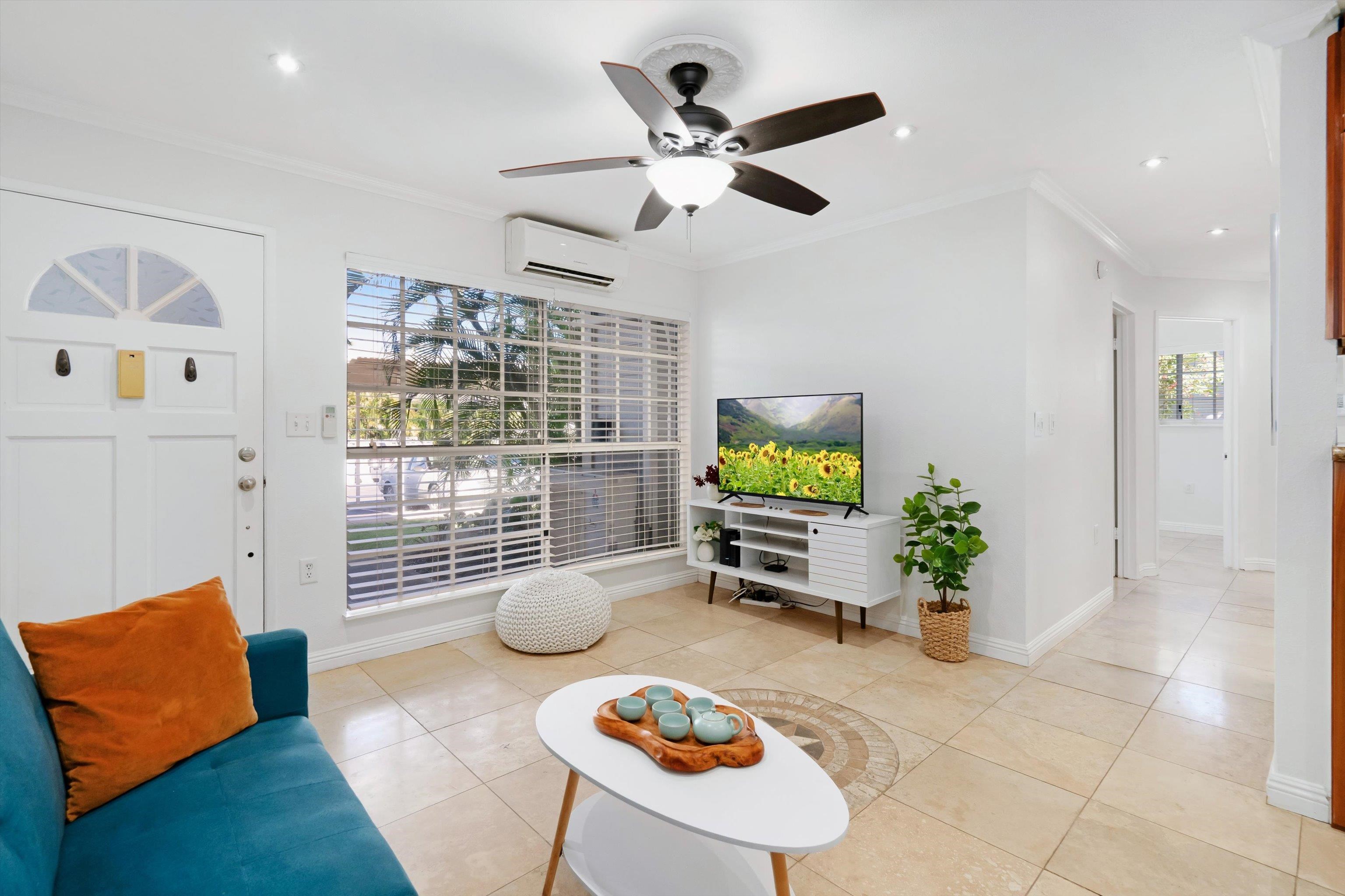 Escape to paradise with Keonekai Villages Unit 14-101, a beautifully appointed 2-bedroom, 1-bathroom ground-level condo located across from the breathtaking Kamaole Beach Park III in Maui, within walking distance to the wonderful Kamaole beaches, renowned as the best sunset-watching area in Maui. Keonekai is also the southern most Kihei neighborhood before entering into Wailea where there is a mall, shops, and amazing restaurants. This move-in-ready gem features travertine tile flooring throughout, freshly painted walls, and modern lighting, creating a fresh and contemporary vibe. The updated kitchen shines with style and functionality, while the bathroom boasts a sleek, tiled shower. Stay comfortable year-round with split AC in every room, and enjoy the convenience of a fully furnished unit. The property includes two parking stalls (263 + 264) –1 covered and 1 uncovered–for added convenience. With low maintenance fees compared to other Maui complexes and situated outside the special flood area, this condo is a rare find. Just 26 minutes from the airport, this coastal retreat is easy to show and ready for you to make it your own!