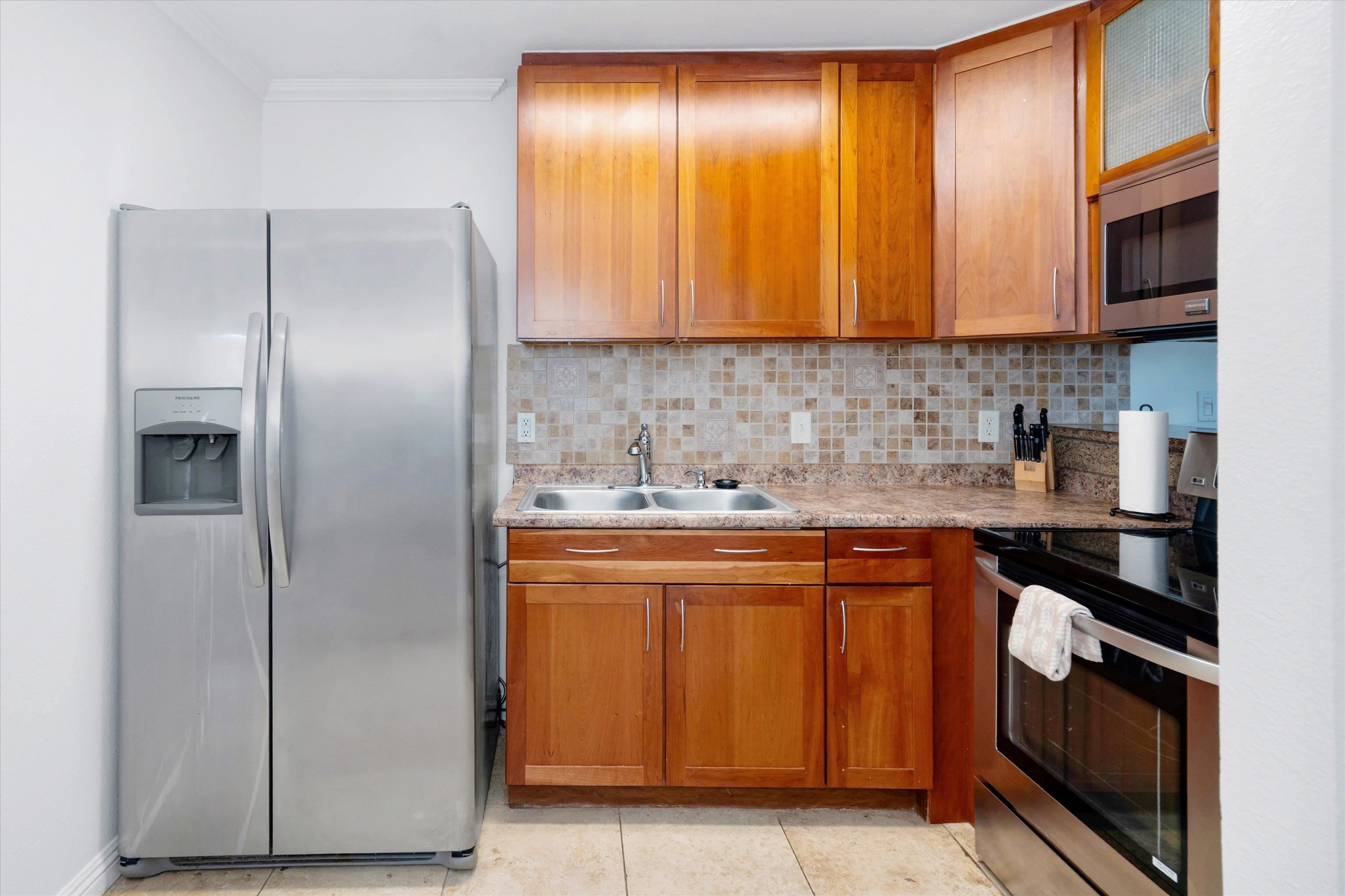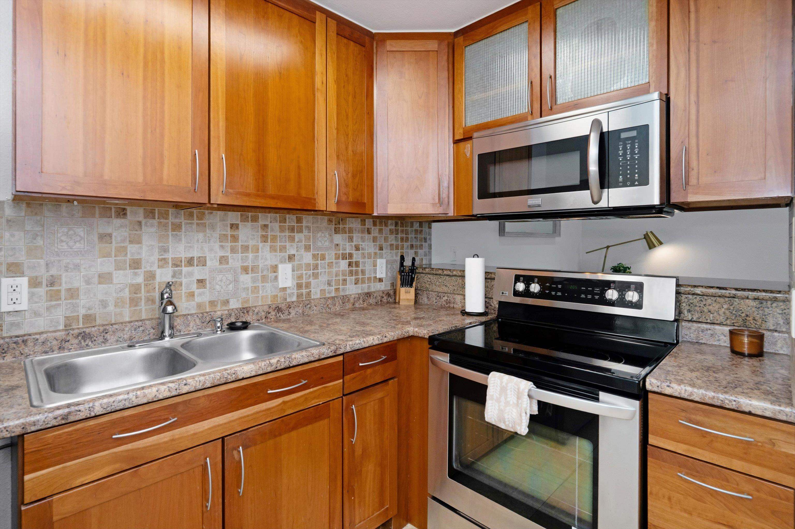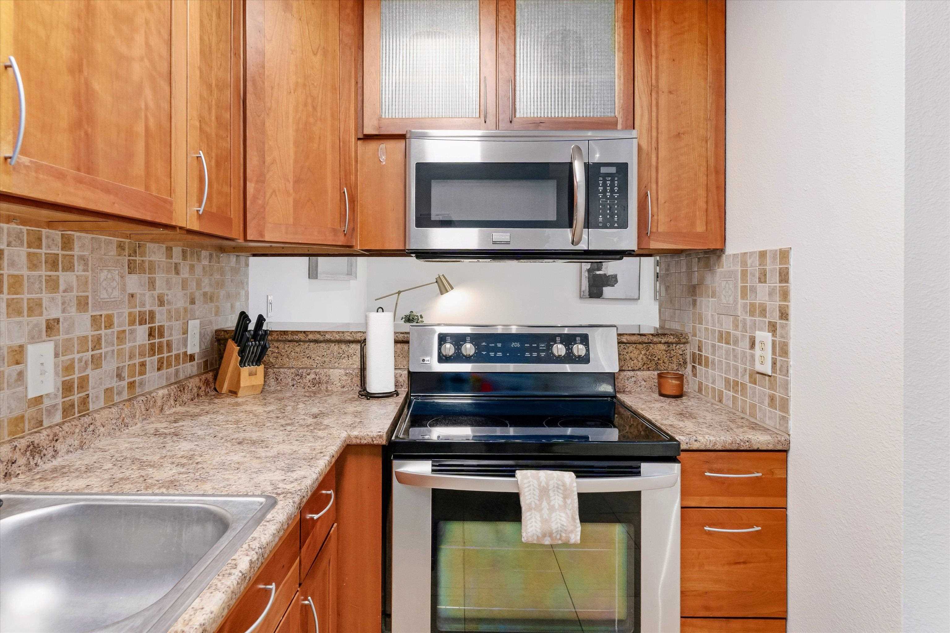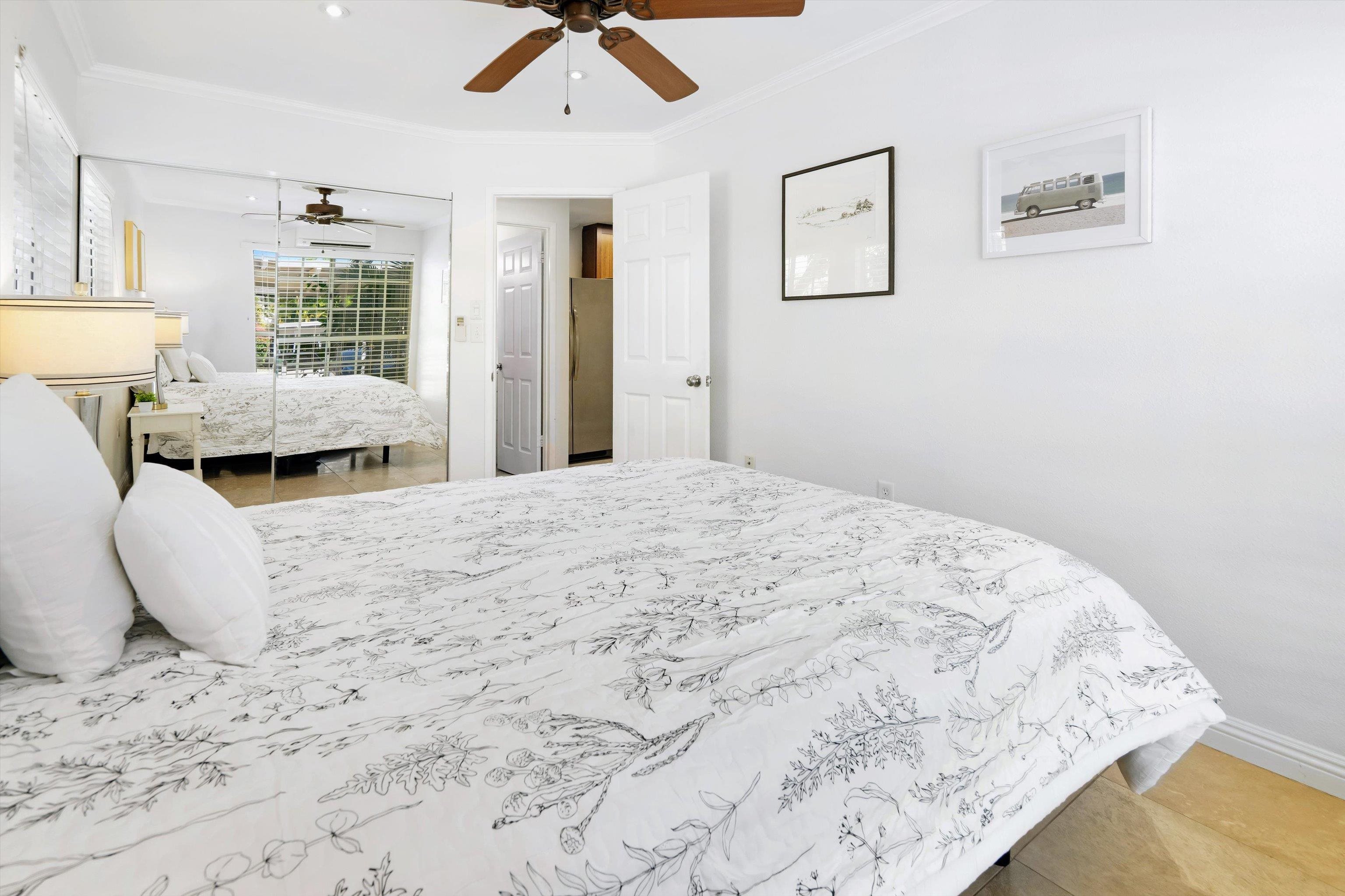 Escape to paradise with Keonekai Villages Unit 14-101, a beautifully appointed 2-bedroom, 1-bathroom ground-level condo located across from the breathtaking Kamaole Beach Park III in Maui, within walking distance to the wonderful Kamaole beaches, renowned as the best sunset-watching area in Maui. Keonekai is also the southern most Kihei neighborhood before entering into Wailea where there is a mall, shops, and amazing restaurants. This move-in-ready gem features travertine tile flooring throughout, freshly painted walls, and modern lighting, creating a fresh and contemporary vibe. The updated kitchen shines with style and functionality, while the bathroom boasts a sleek, tiled shower. Stay comfortable year-round with split AC in every room, and enjoy the convenience of a fully furnished unit. The property includes two parking stalls (263 + 264) –1 covered and 1 uncovered–for added convenience. With low maintenance fees compared to other Maui complexes and situated outside the special flood area, this condo is a rare find. Just 26 minutes from the airport, this coastal retreat is easy to show and ready for you to make it your own!