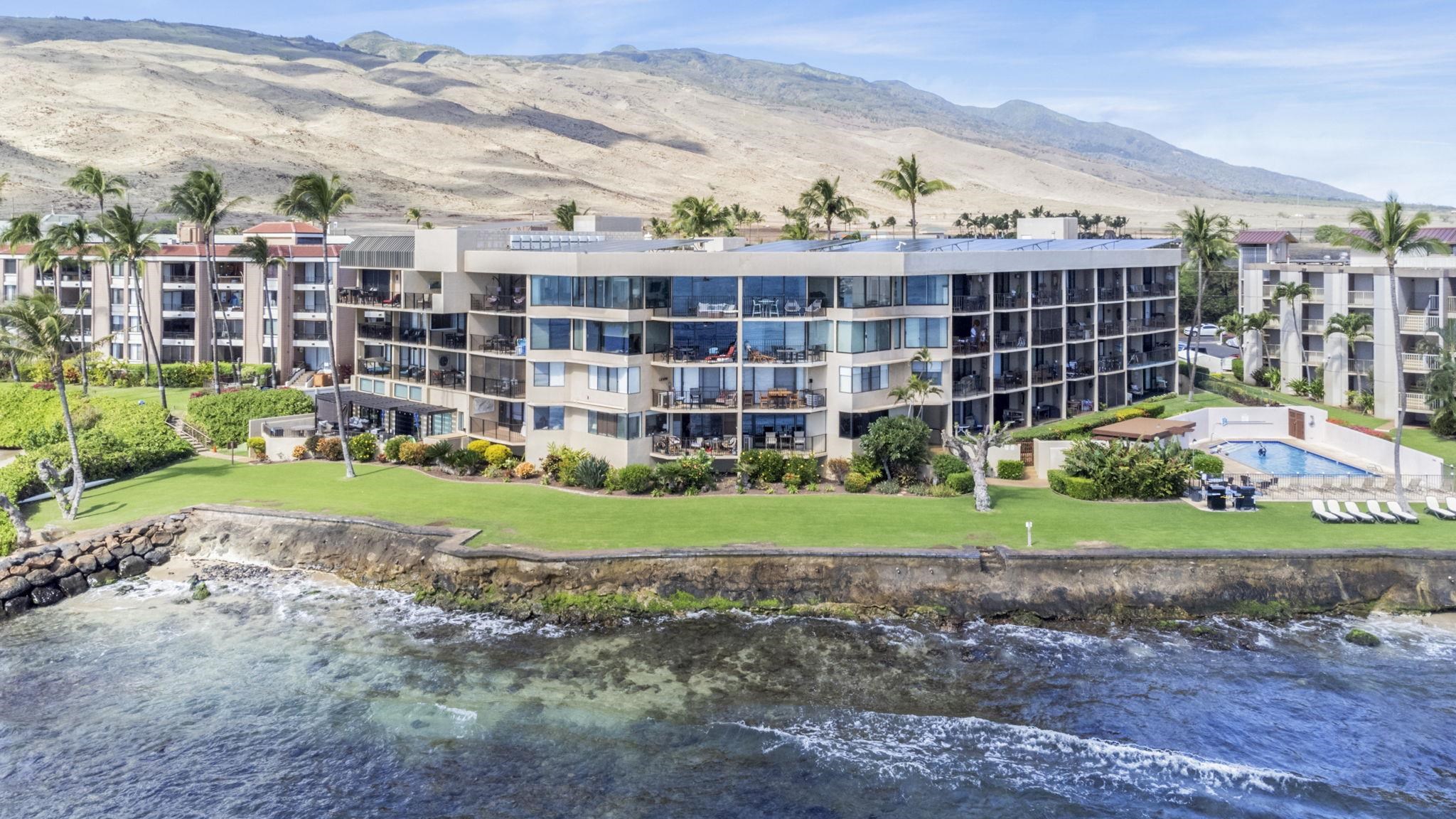 Welcome to Unit 409 at Milowai, a rare fourth-floor condo offering stunning oceanfront views. Watch the magic of Maui unfold right before your eyes - turtles playing, whales frolicking, surfers gliding, and boats cruising in and out of Maalaea Harbor. This is your opportunity to own true ocean front at an attractive price. Open to your imagination to create the space you desire. Milowai boasts a prime location, steps away from the beach and close to everything you could want for an unforgettable Maui experience. Relax by the pool, fire up the grill for a BBQ, or take a leisurely stroll to the white sand beach that stretches for miles. World-class restaurants, shops, Starbucks, the Maui Ocean Center aquarium, and more. Opportunities for snorkeling, whale watching, and more are all within walking distance. This complex is also conveniently close to the airport and town center, with Lahaina and Kihei easily accessible in either direction. The Milowai complex has a permitted seawall and this unit has covered and assigned parking. It is leasehold, ask about that. The HOA, reserve fee, and costs associated can be off-set by rental income. Find it on Airbnb. Contact your favorite Real Estate agent today for a confidential showing of Unit 409 at Milowai. Enjoy. All info believed to be accurate, but not guaranteed, Buyer to do their own due diligence.