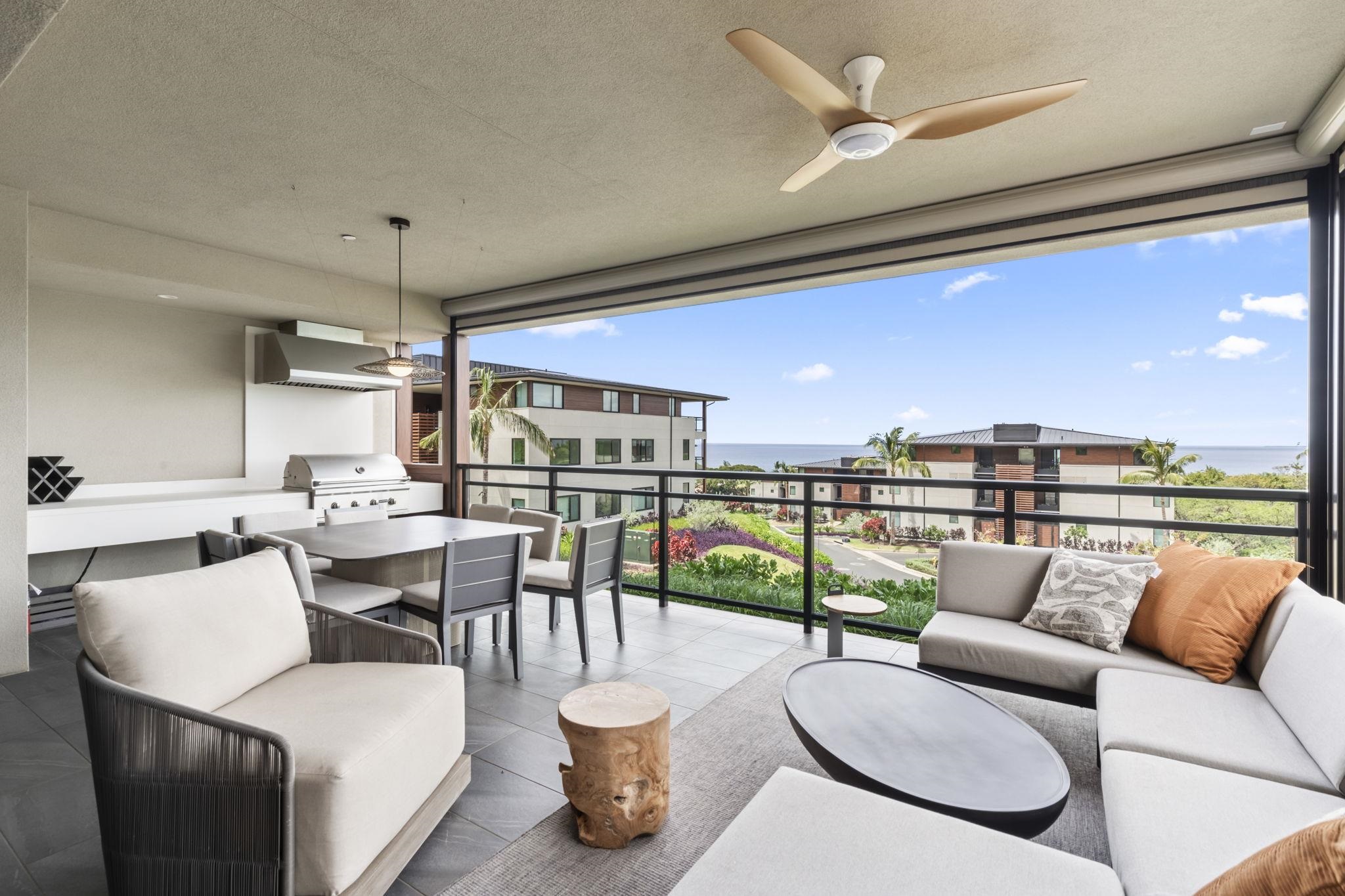 La’i Loa Luxury with Outstanding Ocean View! Wailea’s Newest Development and your golden opportunity to have it all is here! This gorgeous Turnkey Residence in La’i Loa comes with over $400K in luxury furnishings and decor - everything you need to begin the Maui life you’ve earned. Perfectly situated within the community, you will enjoy the pinnacle of island luxury in this exquisite turnkey residence. Upon entry, you can see how thoughtfully designed and lavishly appointed your new Maui home is, all courtesy of Philpotts Interiors. This masterpiece comes fully furnished with high end designer pieces, elegant wallpaper selections, and tasteful, refined finishes throughout. This amazing home is serene yet sophisticated, and the floor plan sits wide to the view, which offers views from all the living areas and the primary suite, which has it’s own dedicated lanai for privacy. A standout feature of this exquisite residence is the seamless indoor outdoor living feel. The wall to wall sliding glass doors retract fully into the wall and open to the oversized main lanai to maximize your Maui lifestyle where you’ll enjoy the built in Coyote gas grill, plus the motorized sunshades on both sides of the huge lanai. The incredible gourmet kitchen features top of the line Bosch Benchmark appliances including refrigerator, cooktop, range, microwave, and built in wine refrigerator, plus Fisher and Paykel two drawer dishwasher - everything you need for day to day living or upscale entertaining. Perfectly positioned near the world class amenities center, you will enjoy effortless access to the huge resort style pool with infinity edge and an additional dedicated lap area to one side, state of the art fitness center, steam and sauna in the facilities, plus beautiful covered and uncovered entertaining areas. Additional highlights include a giant storage room for the home, underground garage parking plus an additional dedicated parking space ground level, and elevator convenience on every level. Your new Maui home awaits with luxurious finishes and thoughtful design throughout - this home is truly move in ready - and offering the very best of the Wailea Resort Lifestyle and access to the best of the world class beaches, restaurants, and shopping in Hawaii. It is time to live the life you’ve earned!