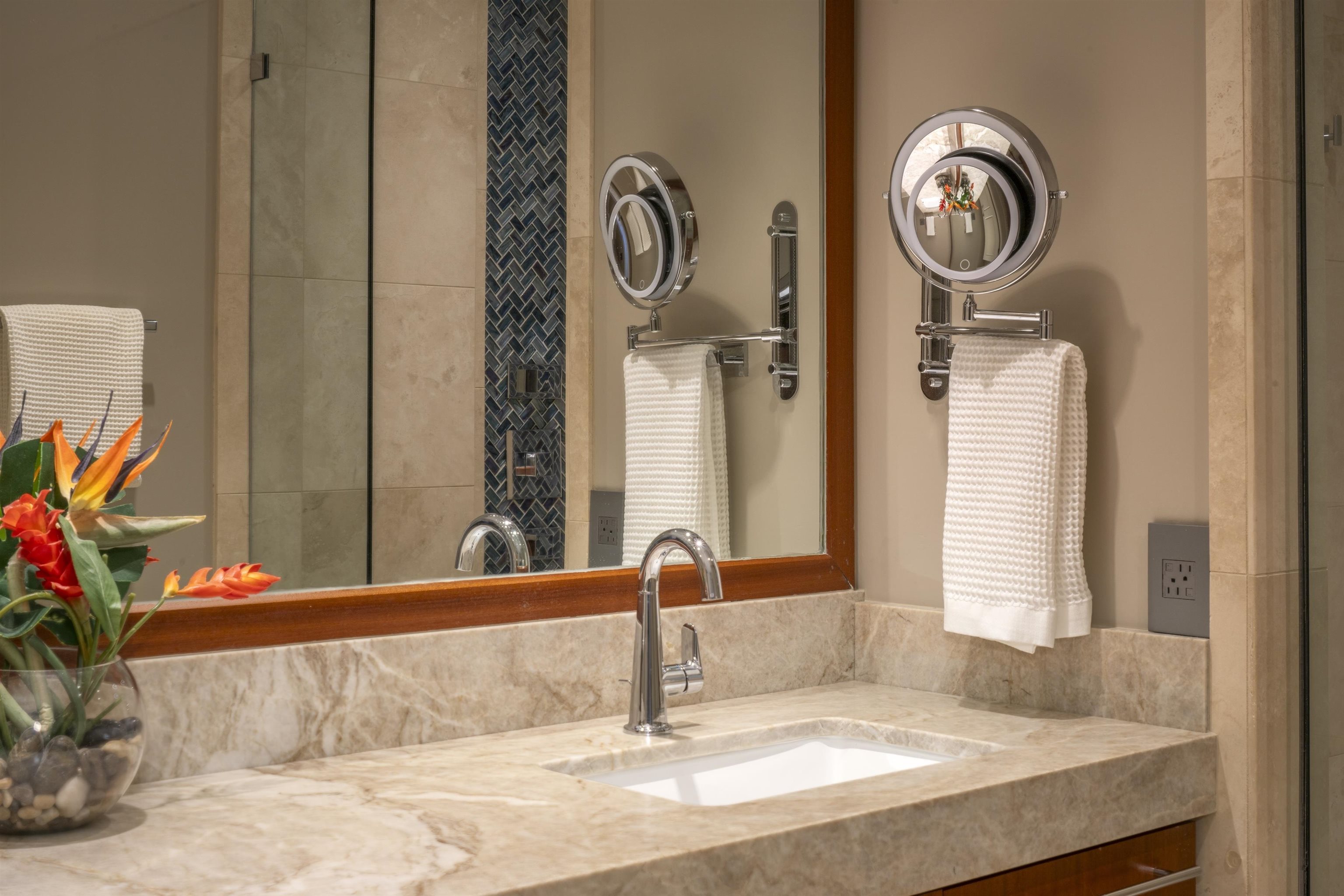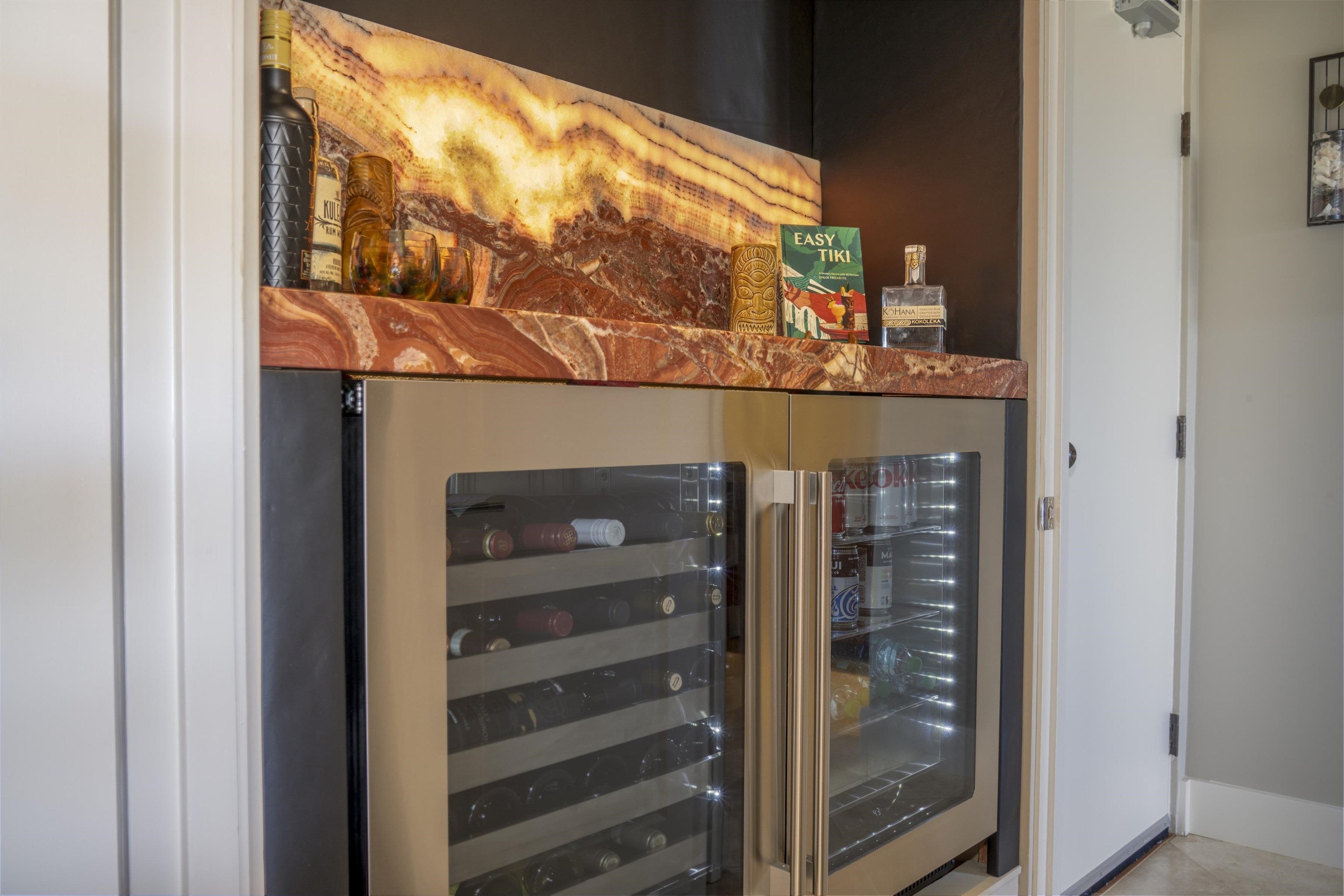 This beautifully updated single-level villa offers panoramic ocean, sunset, and outer island views, perched at the coveted top of the Golf Villas. The interior has been freshly painted throughout and features new elegant finishes that blend comfort with sophistication. The kitchen has been thoughtfully redesigned with Bosch stainless steel appliances, including an induction cooktop and oven, Taj Mahal leather-finish quartzite counters and backsplash, a Kraus sink with cutting board and drying rack, and Hansgrohe fixtures. The dining area is lit by a crystal chandelier, while the living room is furnished with tasteful, updated pieces–including a sofa sleeper with memory foam mattress for guests, swivel chairs, and a desk. The primary suite features a new hybrid mattress and a spa-inspired bath complete with Taj Mahal quartzite surfaces, Grohe fixtures, a rain shower head with water filter, and a GE washer and vented dryer. The guest suite offers equal comfort, with a hybrid mattress, walk-in closet, an upgraded bath showcasing quartzite counters, new shower hardware with jets, a Gerber faucet and a lighted makeup mirror. A backlit stone counter with built-in wine cooler and beverage center has been added between the living room and guest suite. A favorite spot is the spacious lanai– start the day with breakfast at the outdoor dining table, then relax and read on the lounges under the new deck umbrellas, followed by one of Maui’s spectacular sunsets. Located within the heart of the Kapalua Resort, the Golf Villas are surrounded by the resort amenities, including stunning beaches, tennis and pickleball, golf, miles of trails, and award-winning restaurants. This villa is offered turnkey with the option to include a car.