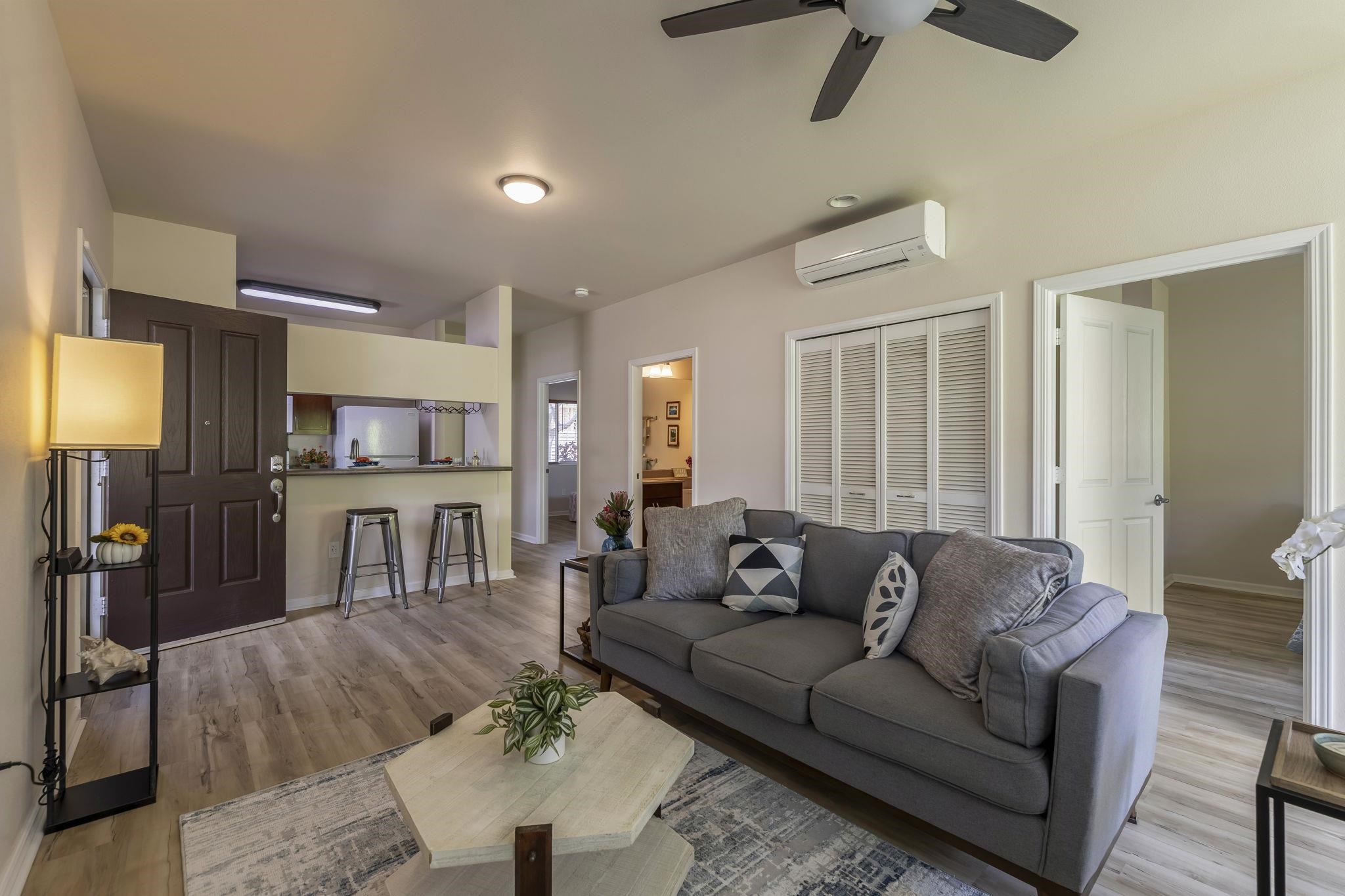 Discover a wonderful opportunity to own this rarely available 3 bedroom, 2 bath, single floor condominium at the stunning Hoolea Terrace. This single-story home offers ultimate privacy with no one living above, providing a peaceful retreat surrounded by the serene beauty of the West Maui Mountains. The home features new luxury vinyl plank flooring, split air conditioners in all 3 bedrooms, and the living room, and two side by side parking stalls directly in front. Pet-friendly and partly furnished, this home allows you to move right in and start calling it your own. Kehalani living at its best- truly a perfect sanctuary for comfort, privacy, and easy island livings. This master planned community is great for enjoying the outdoors, walking, biking, parks, schools, and shopping conveniently located in central Maui. This is one property you do not want to miss out on! Easy to show!