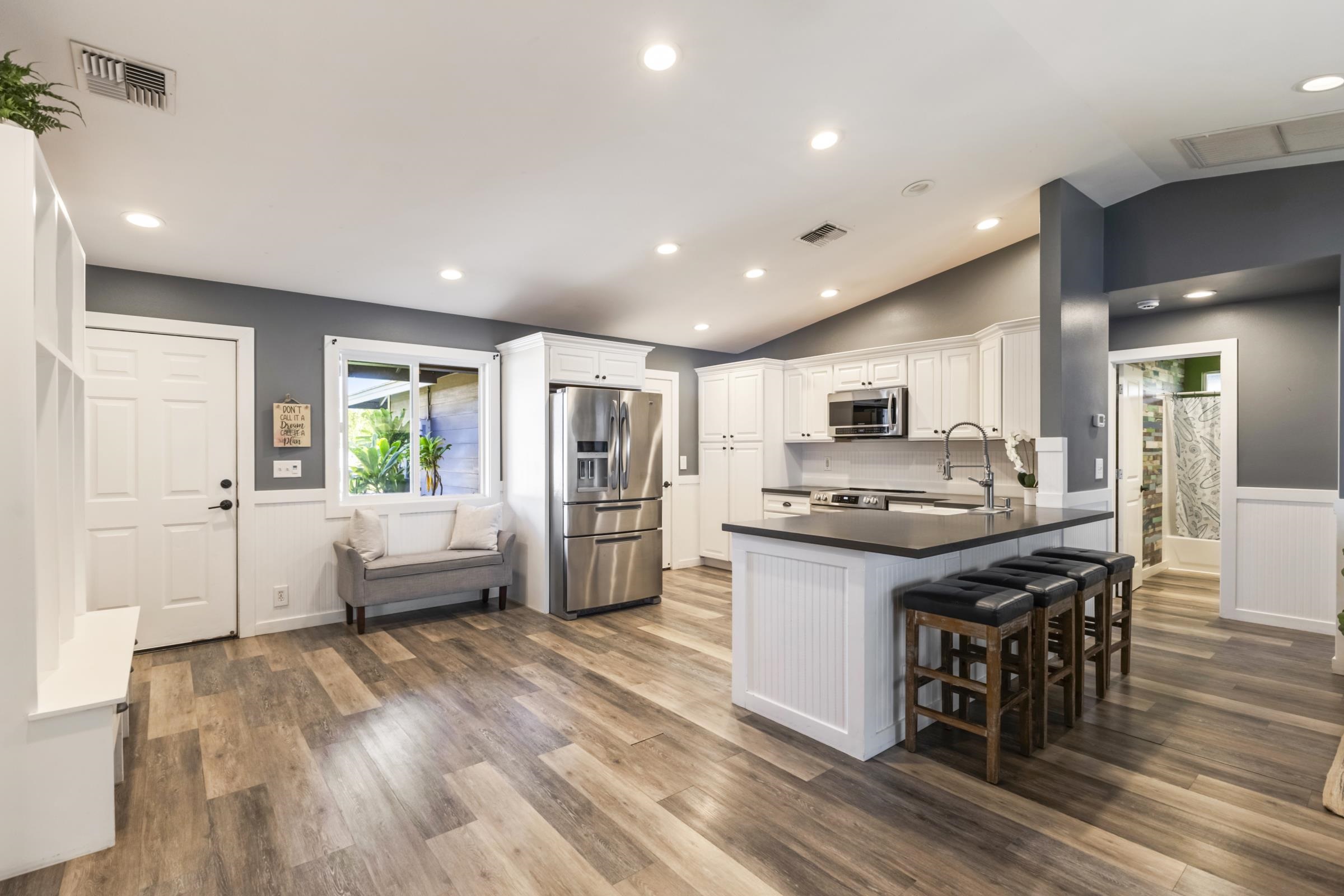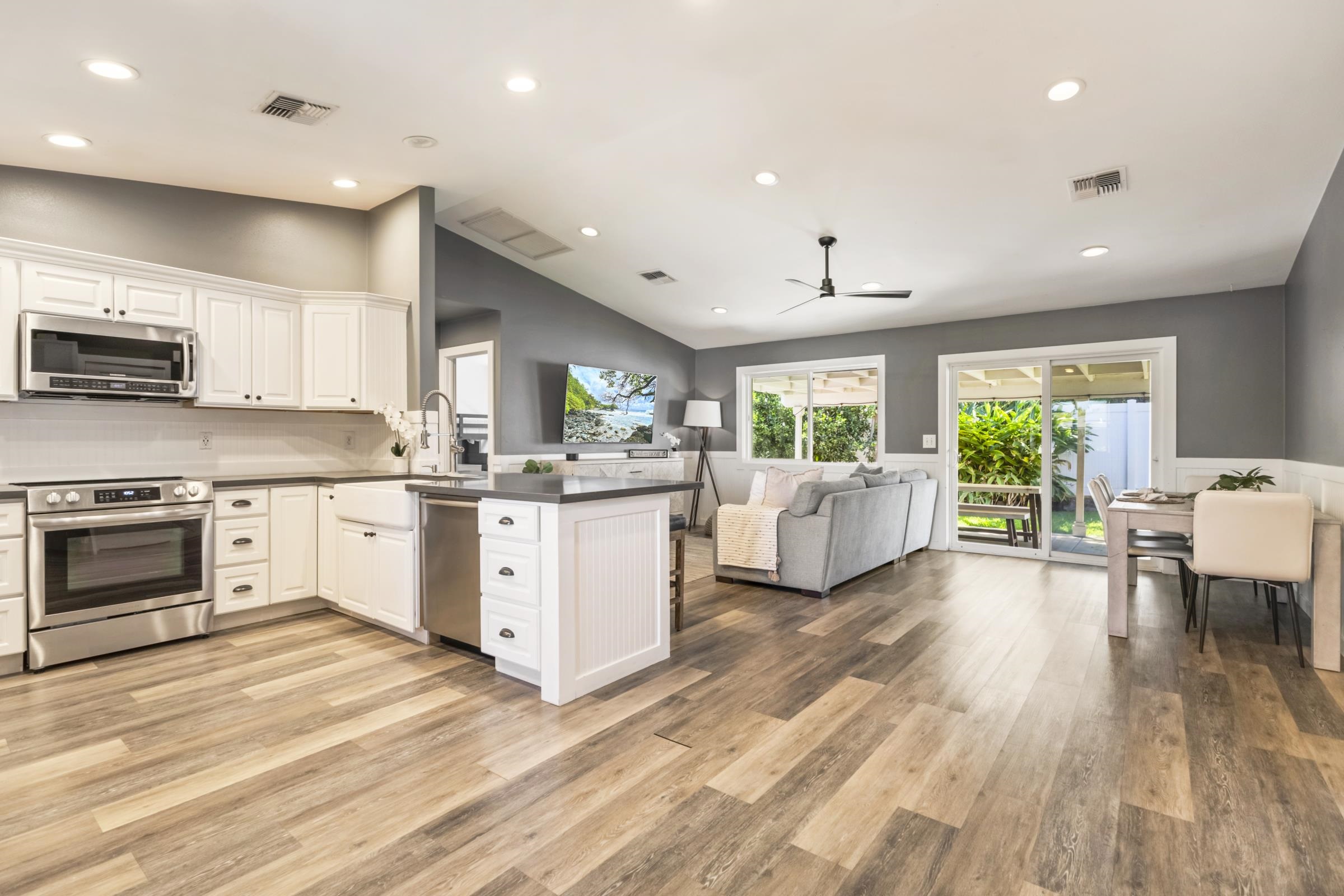 Welcome home to 35 Heona place, a beautifully remodeled single level residence, just moments away from the crystal blue waters in Kihei, Maui. This home is tucked within a natural private, family thriving, impeccable kept neighborhood of 18 homes. It rests on an expansive large lot, offering the perfect blend of privacy, space, and effortless island living. From the moment you arrive, the lush landscaping and inviting front yard create a sense of calm and welcome. Step inside to an open concept layout, highlighted by vaulted ceilings and modern finishes, filling the space with natural light and inviting feel. The kitchen is the heart of the home, featuring counter seating and clean, contemporary quartz countertops. A large sliding glass door opens to the outdoor living area, creating a seamless connection between the interior and the spacious backyard; perfect for entertaining, family play and gathering, relaxing, dining, or enjoying Maui’s ocean breeze. The master suite is thoughtfully positioned on one side of the home, offering a serene retreat with a spacious ensuite bath, an expansive double shower and beautiful double vanity.On the opposite side, two additional bedrooms and a full bath provide comfort and flexibility for family or guests. Outside, the property truly shines. The back yard is fully fenced with a large open space and lush grass to play. There is an array of mature fruit trees, including lilikoi vines, citrus, guava, dragon fruit, lime, papaya and avocado. Garden boxes for convenient gardening. Modern comforts include central air conditioning and owned photovoltaic panels for energy efficiency and low utility costs. Not only is this home located in a quiet, family friendly cul de sac, it’s also just minutes from Piilani Village Shopping Center, ono dining options and sandy beaches; offering both quality living and convenience. This rare gem captures the essence of aloha modern island living.
