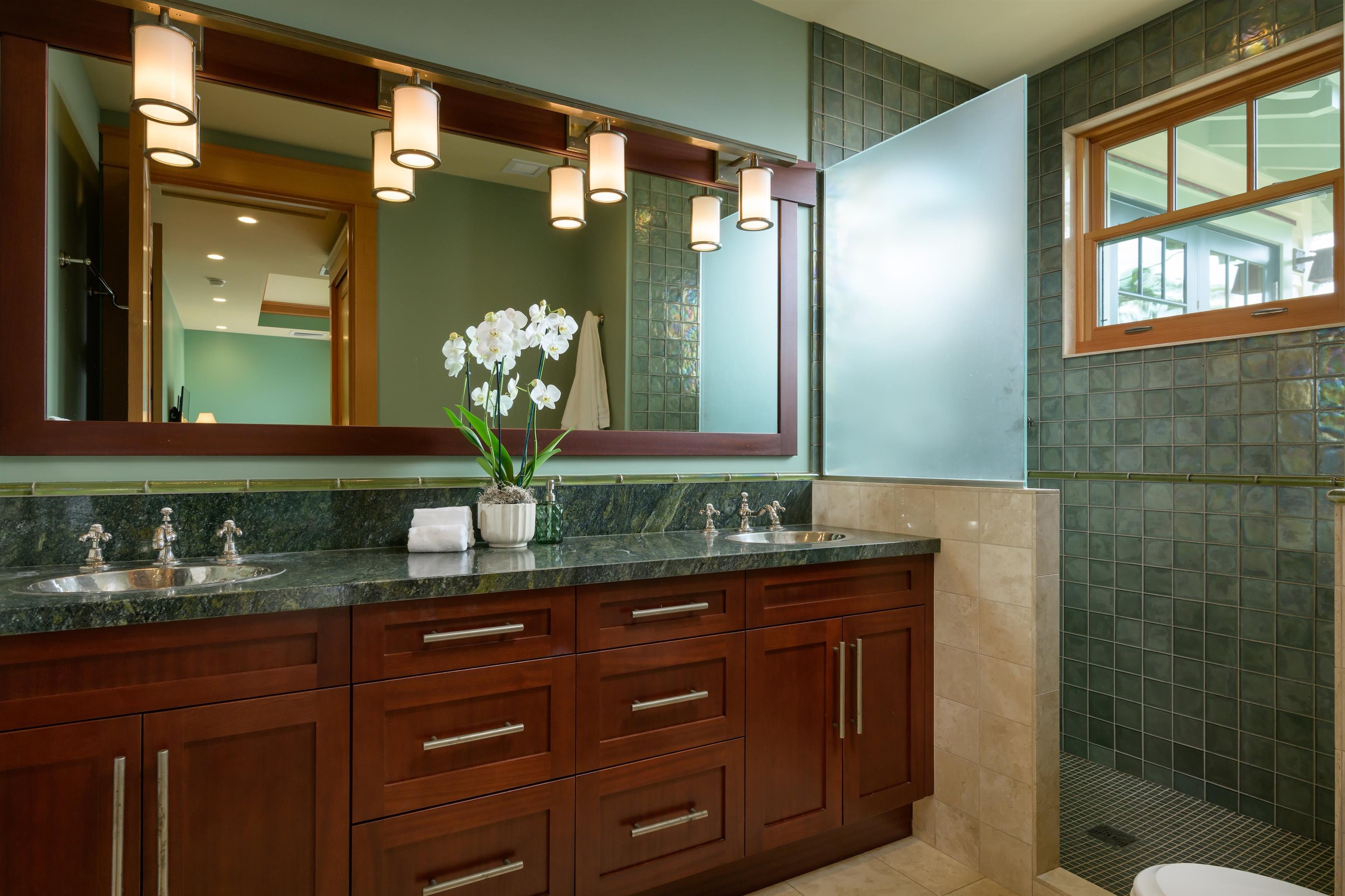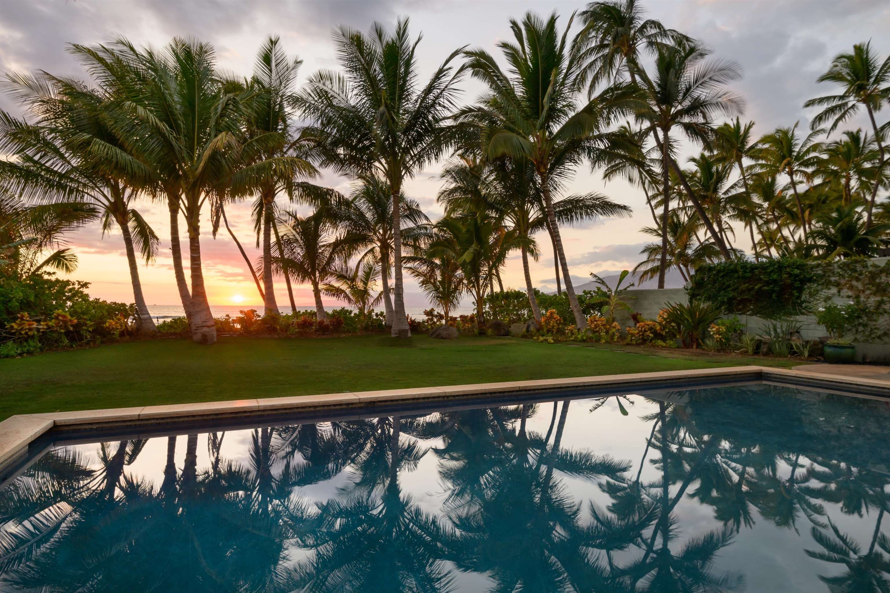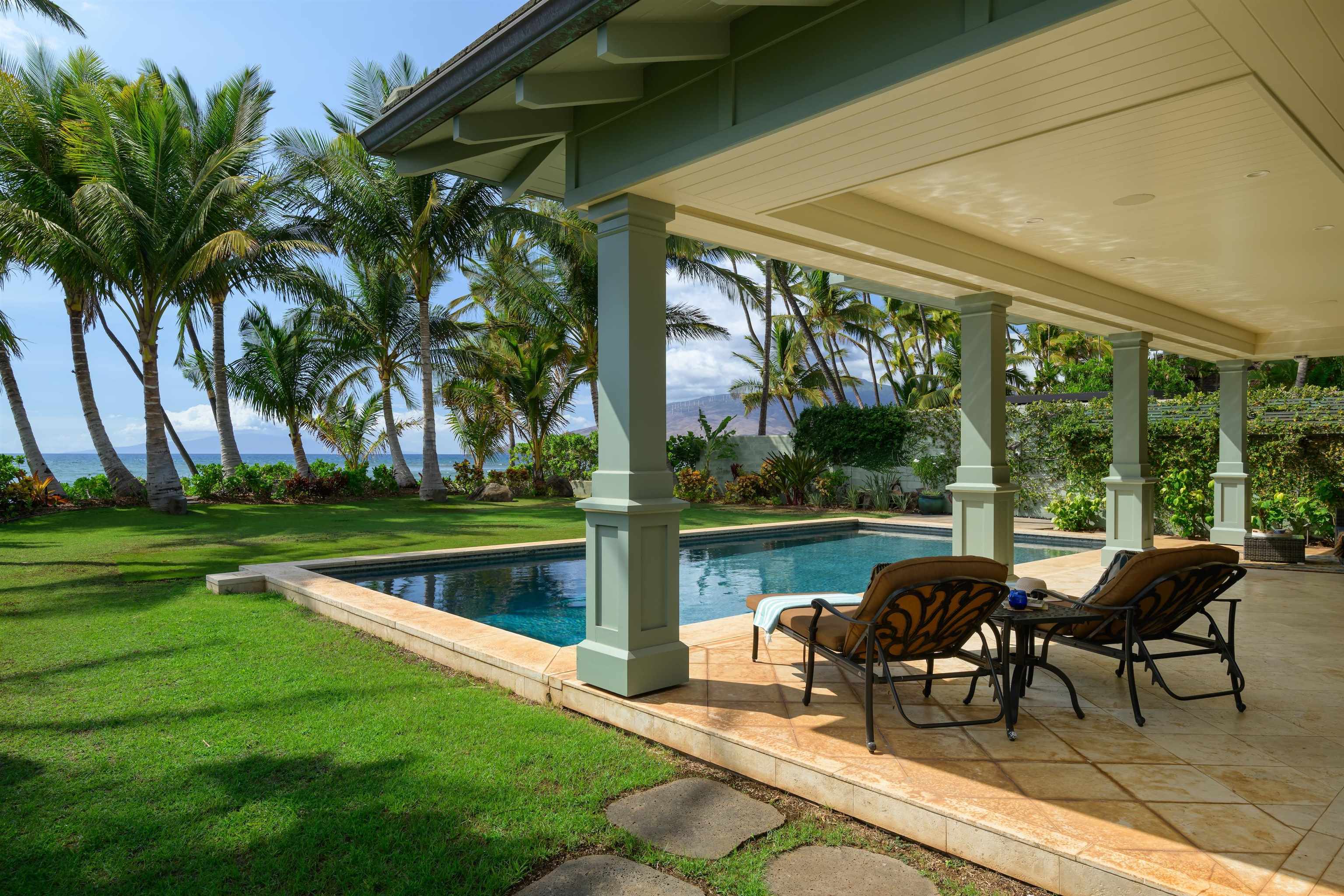 Beachfront living on the sandy end of Halama Street. Offered for the first time, this Smith Builders Maui residence combines timeless design with a coveted oceanfront setting. The home was crafted with enduring materials including Monier tile roof, Hardie siding, and copper gutters, ensuring beauty and durability. Inside, the Craftsman-style interiors are rich with detail – Douglas fir wainscoting, artisan wallpaper, and Rocky Mountain hardware lend warmth and authenticity, while expansive windows frame the ocean just steps away. The floor plan features five ensuite bedrooms, highlighted by an entire upstairs primary suite with sweeping ocean views, a private office, and its own laundry. The heart of the home – kitchen, dining, and living areas – opens through large doors to a lanai with pool and grassy lawn, extending naturally to swaying palms and the sandy beach beyond. From here you can watch the surf, launch a paddleboard, or take in Maui sunsets over the Pacific. Additional features include a 3-car garage with an upstairs ohana, ideal for a caretaker or visiting guests, fresh exterior paint, and a landscape installation by Guilian Buhl. Tucked into one of South Maui’s most private and walkable enclaves – yet just moments from restaurants and conveniences – this Halama Street estate offers the rare combination of craftsmanship, comfort, and true beachfront living.