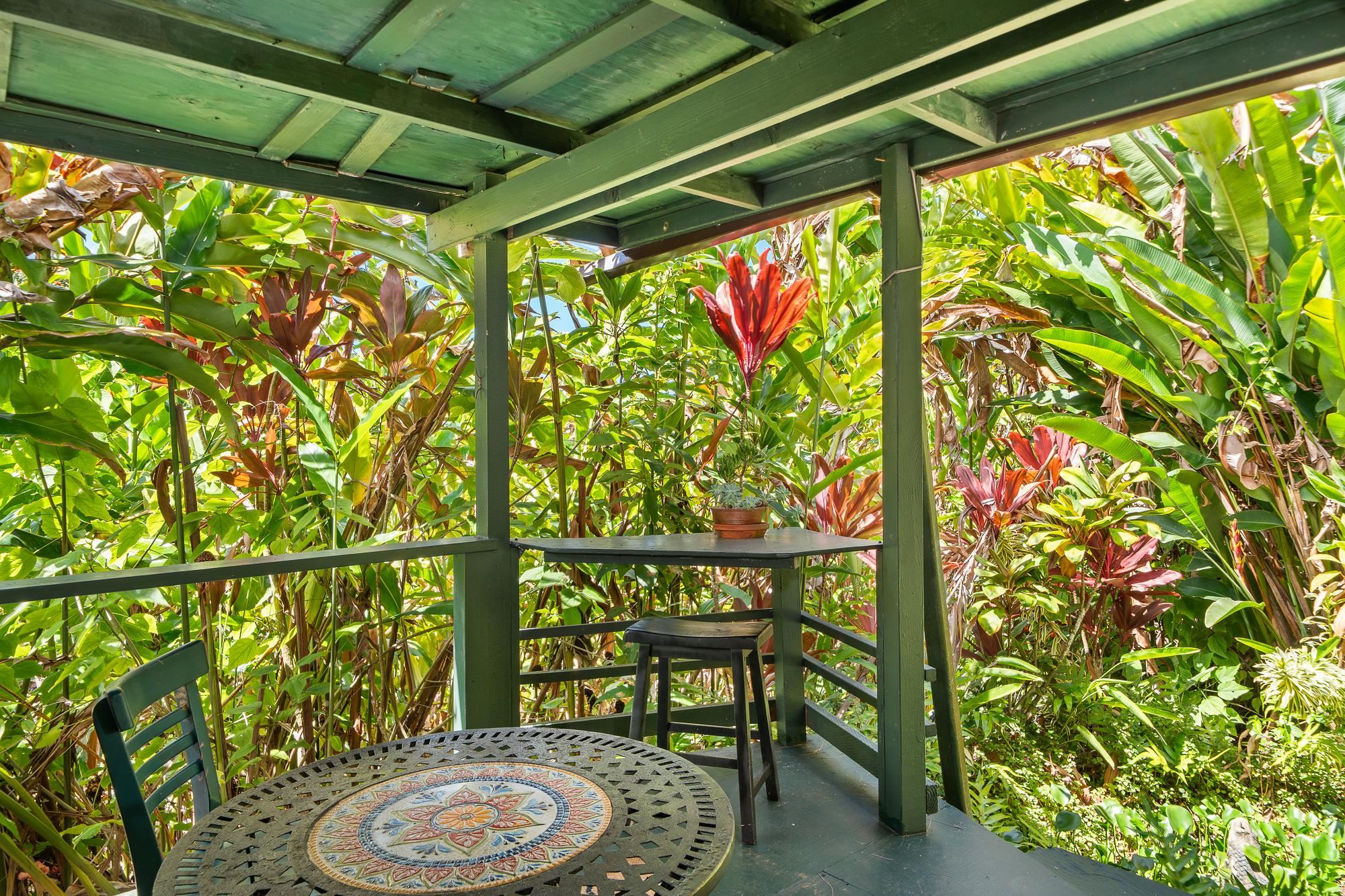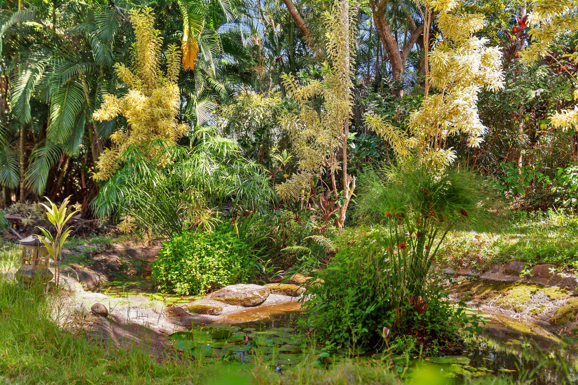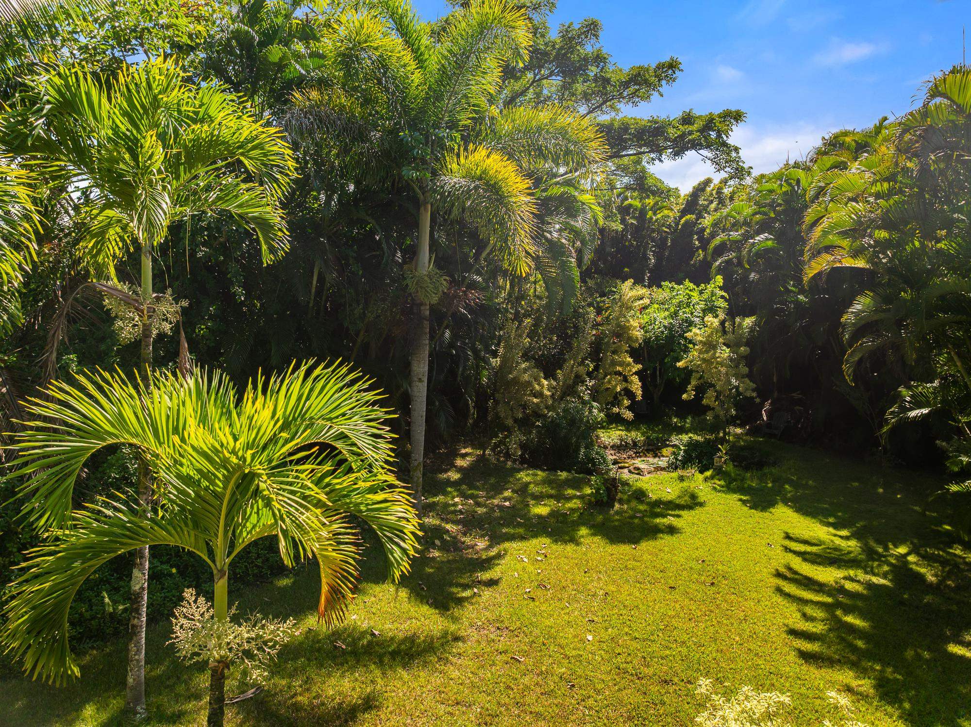 Nestled below the legendary Road to Hana at the top of Door of Faith, this seven plus acre North Shore sanctuary is more than property–it is living land, shaped by decades of vision and aloha. Rain-kissed and abundantly green, it balances wild jungle with hand-tended gardens, where every corner tells a story. Wander through groves of palms, ti, and ginger, past shimmering ponds alive with water plants and fish. Meandering paths invite exploration and reflection, while hearing the sound of the ocean carried on the trade winds. At the top of the property, the main home welcomes with open-beam ceilings, light-filled spaces, and a wraparound lanai framing ocean views. A loft above serves as a studio, meditation, or office, while the lower level - with its own entrance - offers privacy for guests. Across the lower acreage, additional structures are thoughtfully tucked into the landscape, each with its own sense of seclusion, shaped by the contours of the land. Long cherished as gathering spaces for family and friends, they carry forward the spirit of North Shore community. Here, the land itself is the star–vibrant, soulful, and aloha. Minutes from Paia and Haiku, yet worlds apart, this Huelo hideaway is ready for its next steward.