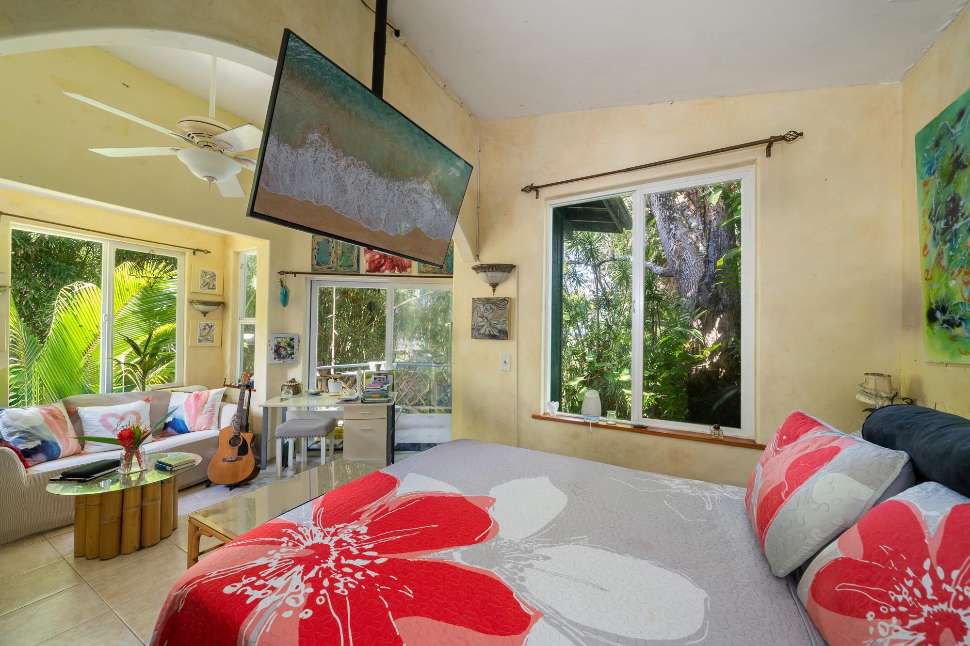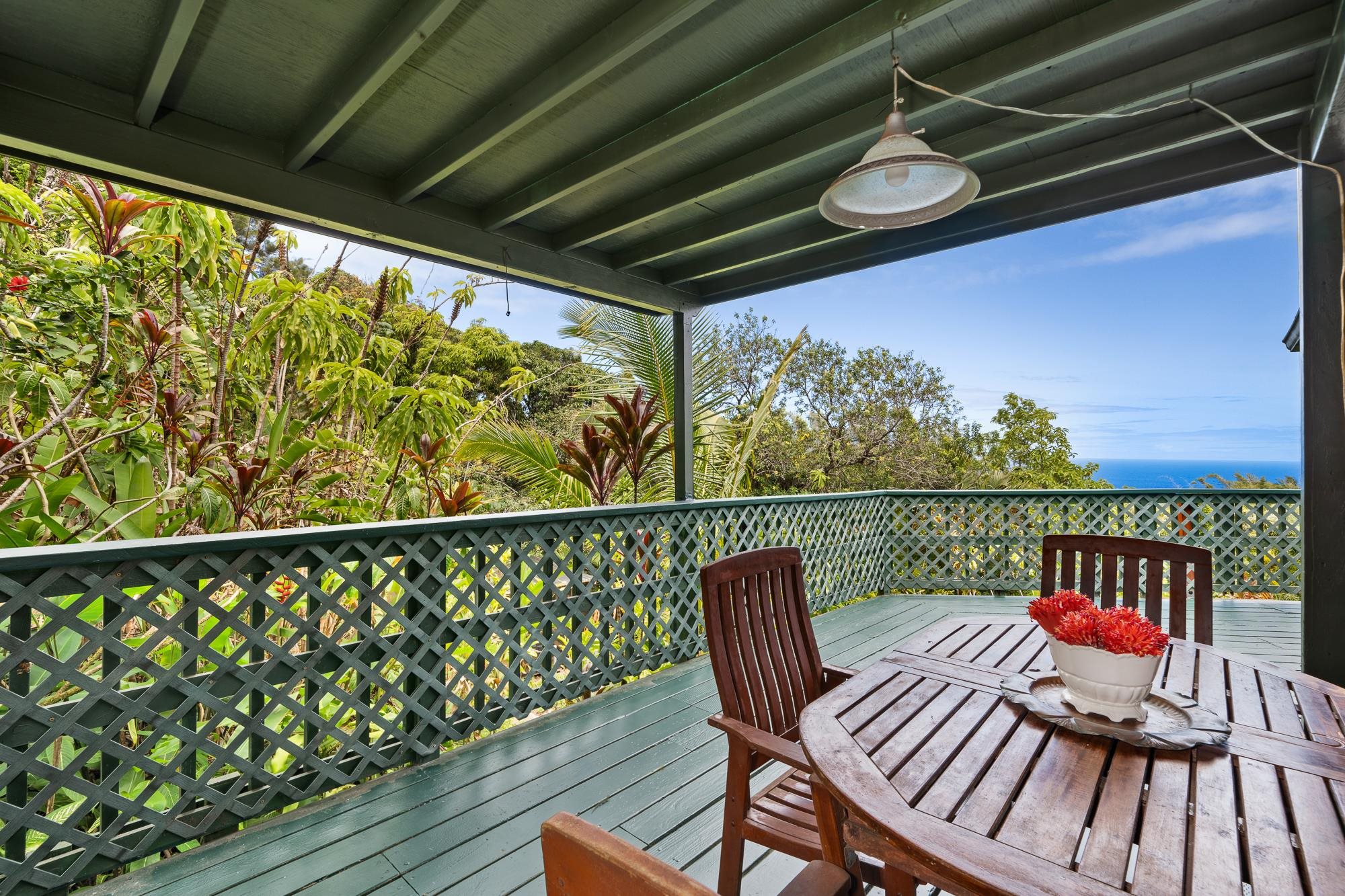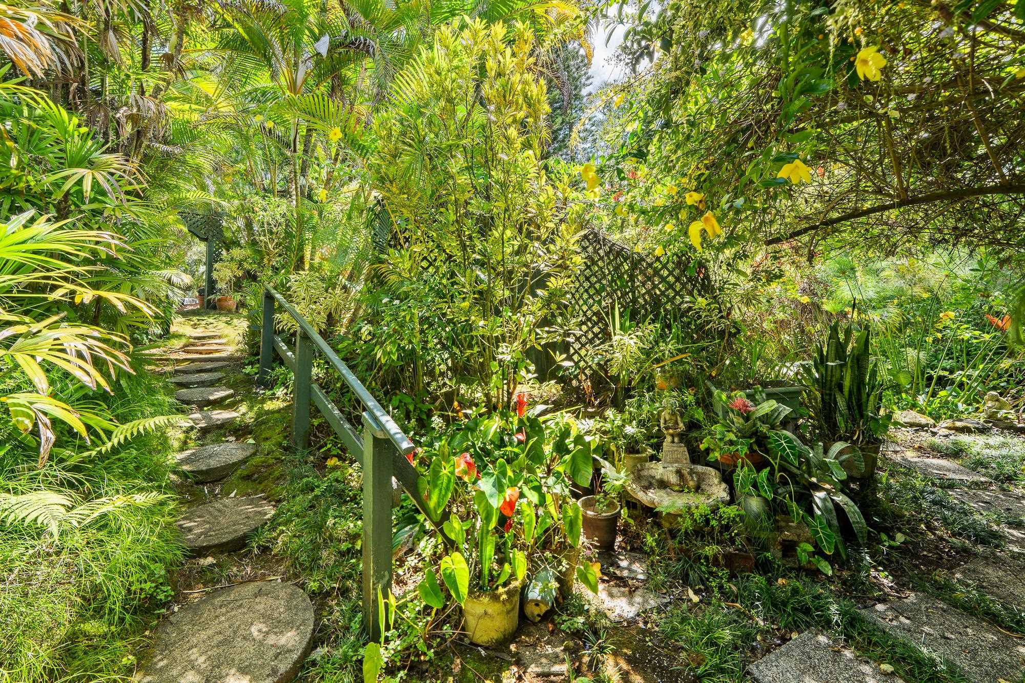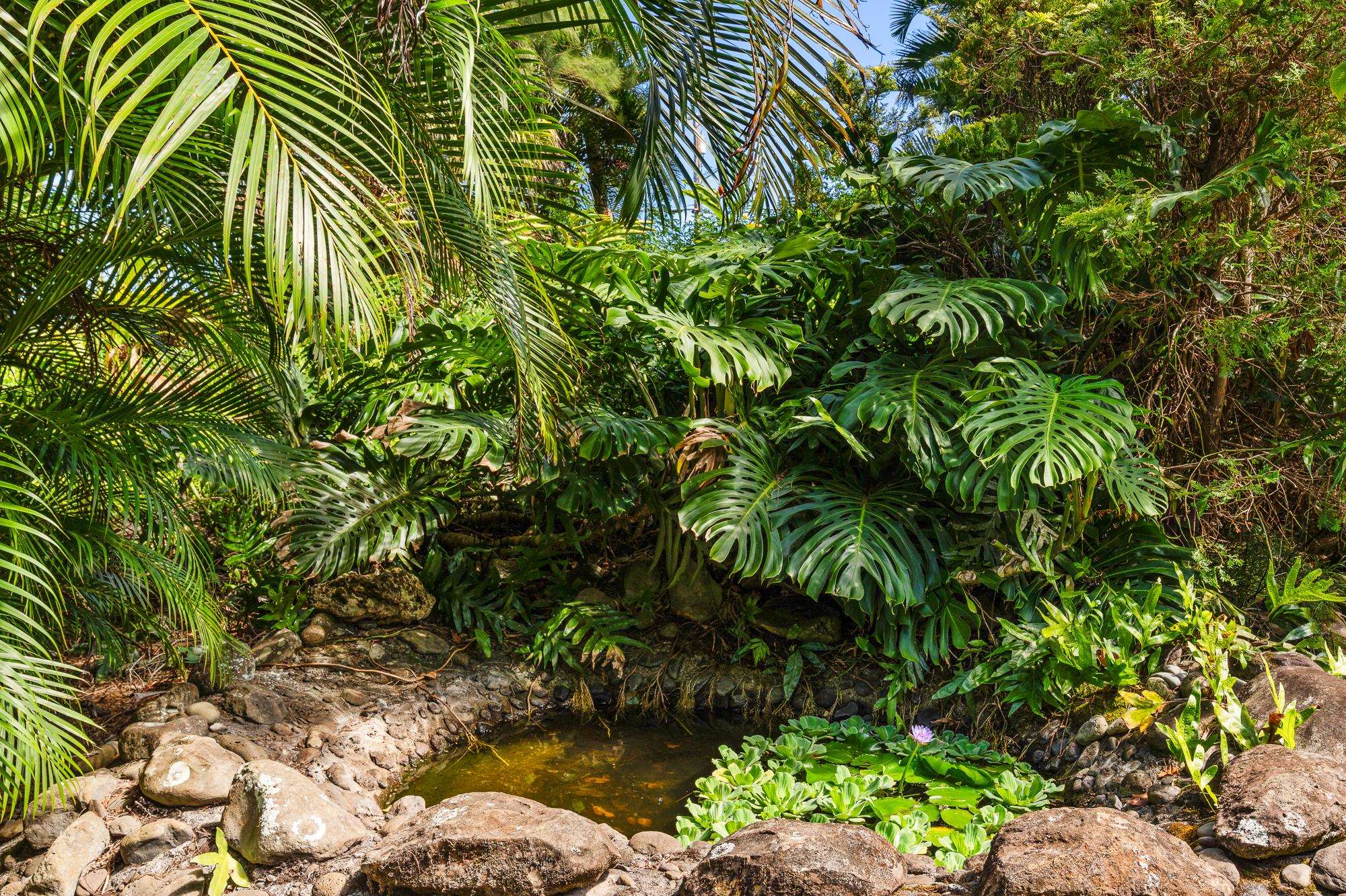 Nestled below the legendary Road to Hana at the top of Door of Faith, this seven plus acre North Shore sanctuary is more than property–it is living land, shaped by decades of vision and aloha. Rain-kissed and abundantly green, it balances wild jungle with hand-tended gardens, where every corner tells a story. Wander through groves of palms, ti, and ginger, past shimmering ponds alive with water plants and fish. Meandering paths invite exploration and reflection, while hearing the sound of the ocean carried on the trade winds. At the top of the property, the main home welcomes with open-beam ceilings, light-filled spaces, and a wraparound lanai framing ocean views. A loft above serves as a studio, meditation, or office, while the lower level - with its own entrance - offers privacy for guests. Across the lower acreage, additional structures are thoughtfully tucked into the landscape, each with its own sense of seclusion, shaped by the contours of the land. Long cherished as gathering spaces for family and friends, they carry forward the spirit of North Shore community. Here, the land itself is the star–vibrant, soulful, and aloha. Minutes from Paia and Haiku, yet worlds apart, this Huelo hideaway is ready for its next steward.