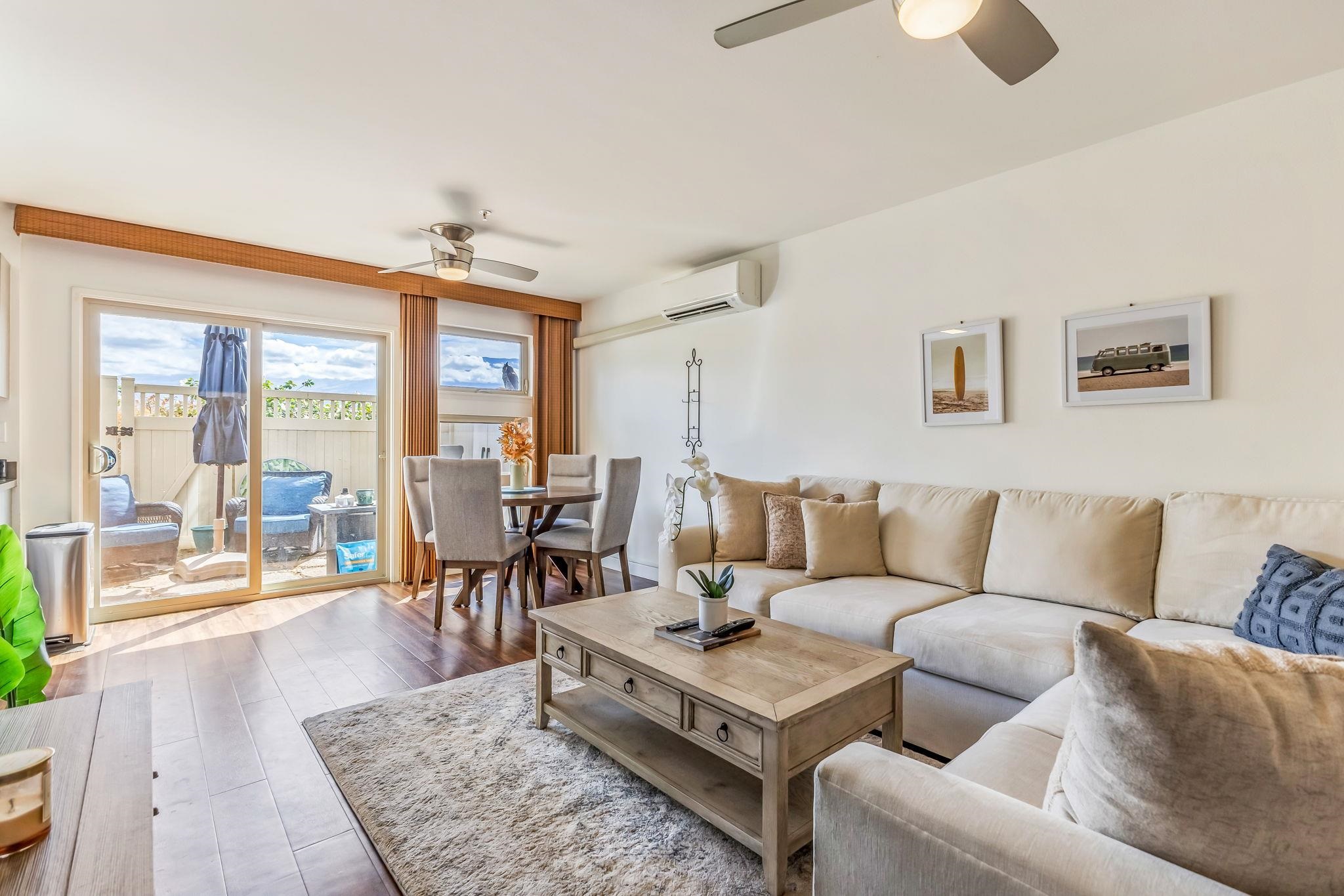 Opportunity knocking!! New to the market, this 3 bedroom, 2.5 bathroom Townhomes at Kehalani in north Kihei is currently the only townhome available at the time of listing! It is the rare condo in Kihei that has a garage! Conveniently located, you have convenient access to the nearby Sugar Beach, Piikea Shopping Center, restaurants and are a quick drive to Kahului, Costco or south to Wailea. Unit 1902 includes updated luxury vinyl flooring downstairs and in the bathrooms, carpeted bedrooms upstairs and four (4) split A/C units throughout. Bedrooms are all upstairs as is your own laundry. Main bed and bath suite has a walk in shower. Custom window shutters and ceiling fans are nice upgraded touches. Your own fenced, private yard provides you with outdoor living space off the kitchen/living area where you can BBQ and hang out! The kitchen features granite countertops, stainless appliances and an energy efficient gas Samsung range. This townhome offers a one car garage with an additional parking space in the driveway. In the back of the complex, this unit backs up to an open area with no neighbors behind you. Kamalani is a pet friendly complex. Water, sewer, trash, high speed internet, common area maintenance, reserves and exterior building insurance are all included in monthly maintenance fee. Schedule a showing today so you don’t miss this opportunity!