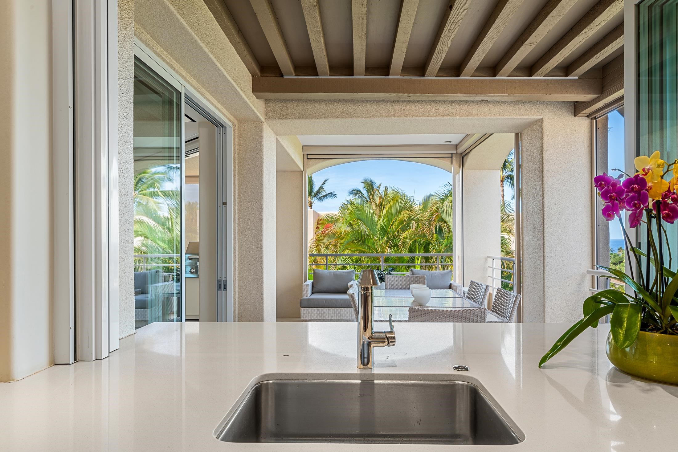 Discover the epitome of island luxury in this beautifully remodeled 2-bedroom, 2.5-bath top-floor unit at Wailea Palms Residences. Every inch of this home has been thoughtfully redesigned, blending modern sophistication with the laid-back charm of Maui. The open floor plan is complemented by tile and wood flooring throughout, while split AC units ensure comfort year-round. Step out onto the expansive lanai, seamlessly integrating indoor and outdoor living, perfect for savoring Wailea’s breathtaking sunsets. The sleek, custom remodel exudes a clean, contemporary vibe, offering a move-in-ready retreat for the discerning buyer. Wailea Palms is a gated community boasting exceptional amenities, including a private fitness center, BBQ area, and pool/spa that overlook the lush Wailea landscape. As an owner at Wailea Palms Residences, you have the added benefit to join the exclusive Wailea Golf membership, with world-class courses just moments away. Nestled in the heart of the Wailea Resort community, this prime location offers convenient access to stunning beaches, upscale shopping, and fine dining. Experience the finest in resort living at Wailea Palms #2902!