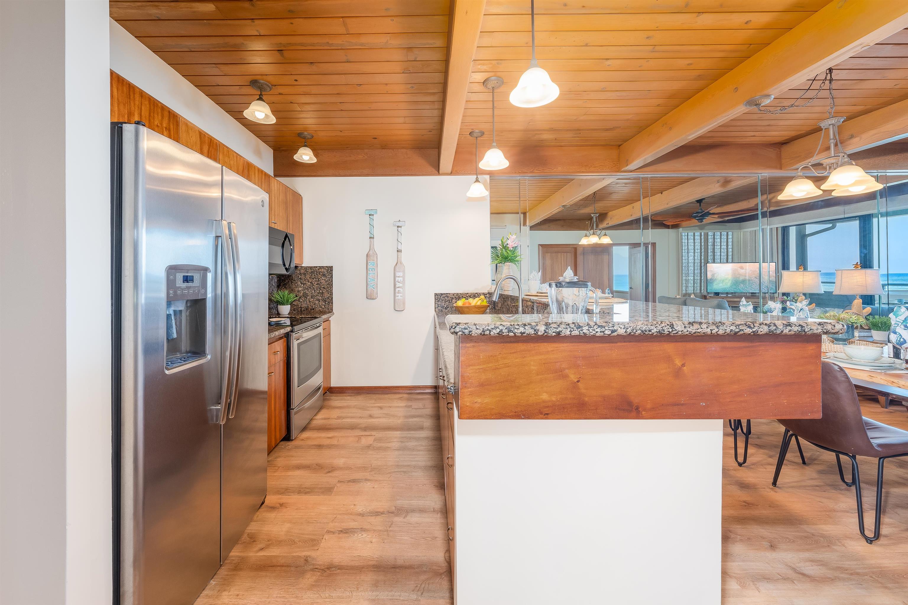 The first ground floor direct oceanfront unit for sale in 10 years! This 3 bed/3 bath unit is literally a few steps to the ocean, with ocean views from the living area, kitchen, the primary and second bedrooms and of course, the lanai! Side stairs off the nice sized lanai provide easy access to both the ocean and the pool with BBQ. You will love the charm of this small, peaceful, 16-unit complex, this unit undoubtedly offers the best location at the complex. Located in a rare reef protected cove, overlooking the islands of Molokai and Lanai, this is the perfect place to watch whales, stunning sunsets and rainbows. Sold fully furnished and remodeled in 2022. This unit will feel more like a home than a condo. Located just minutes to Kaanapali or Kapalua and close to restaurants and shopping. Don't let this one get away! The lease on this leasehold property listing, expires in 2071.