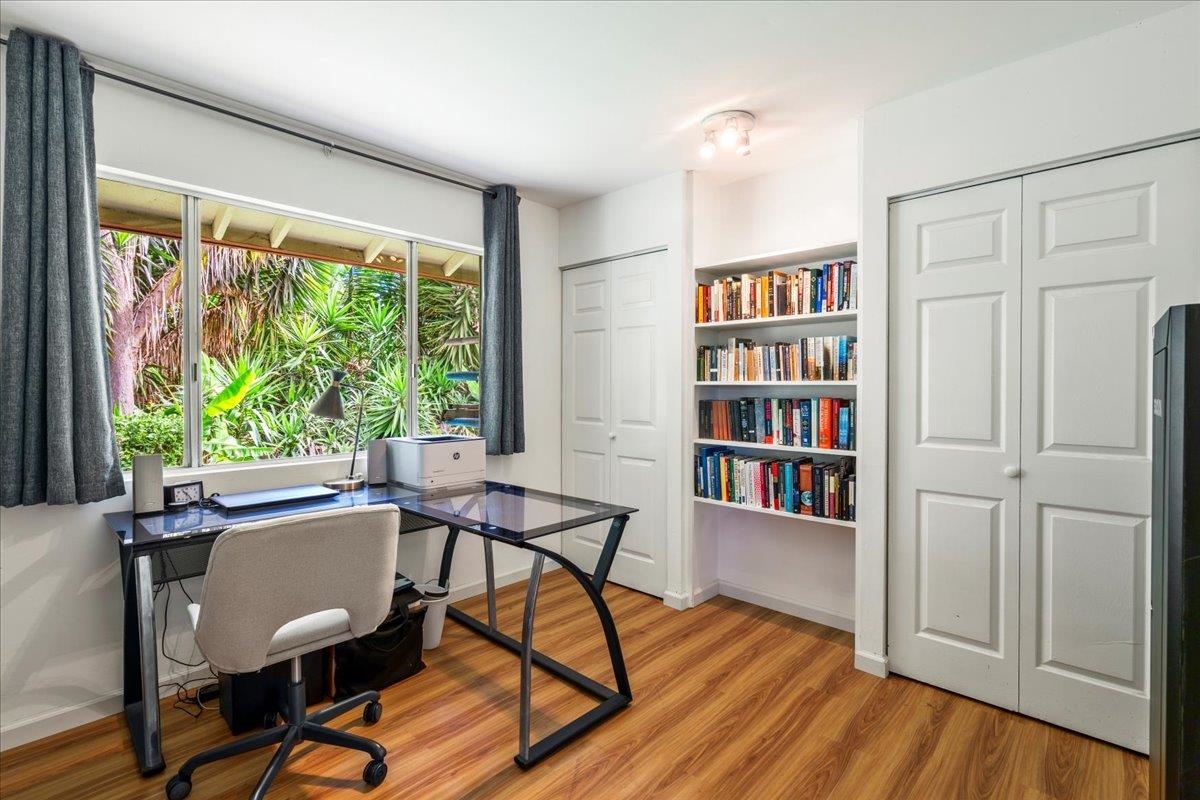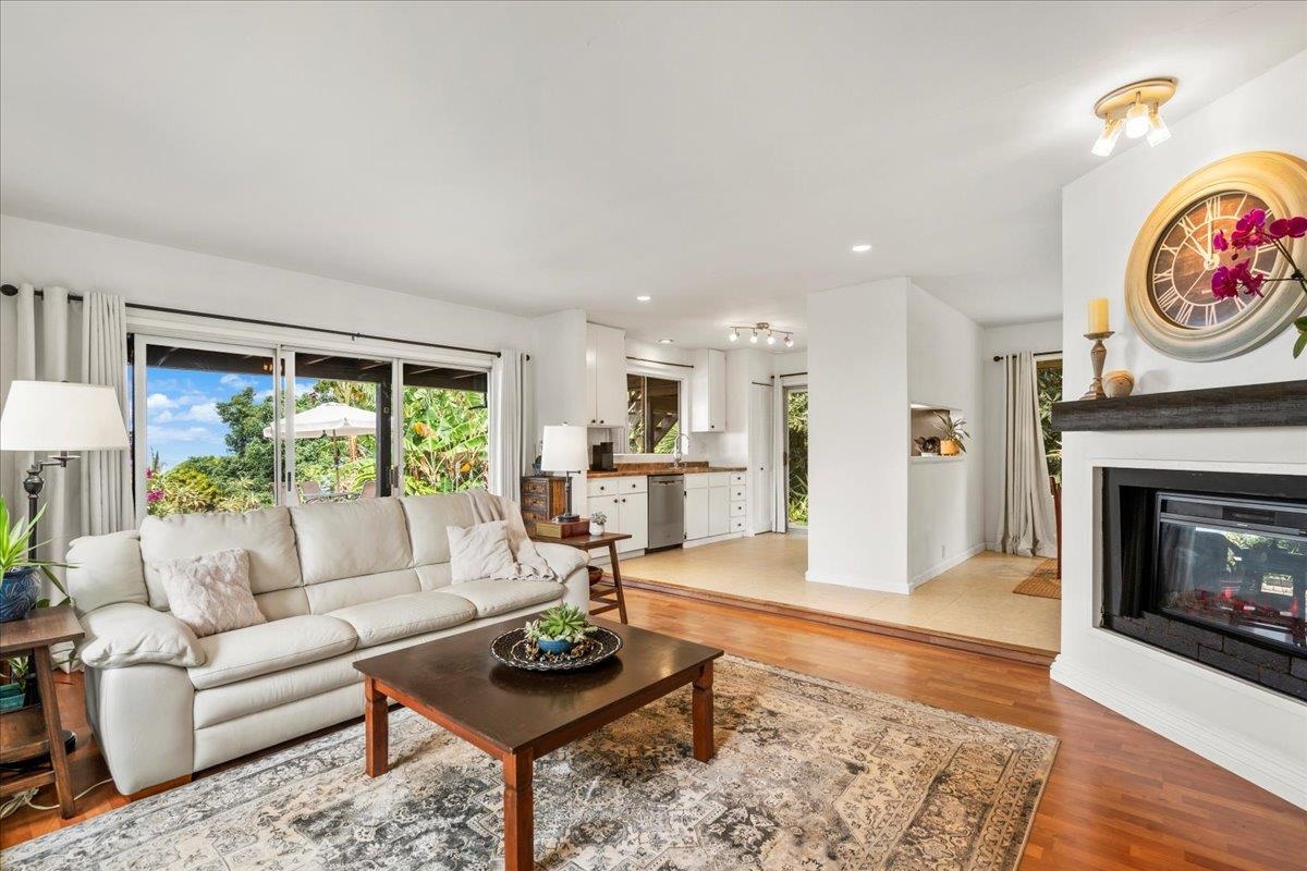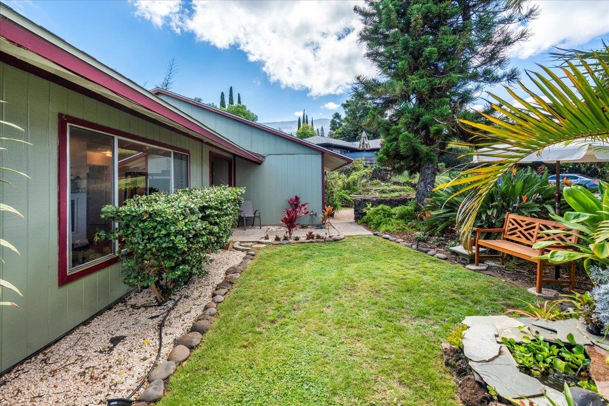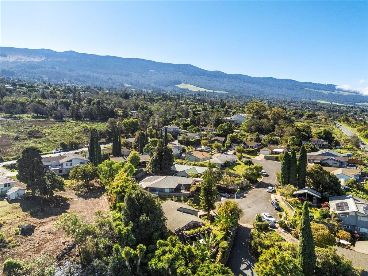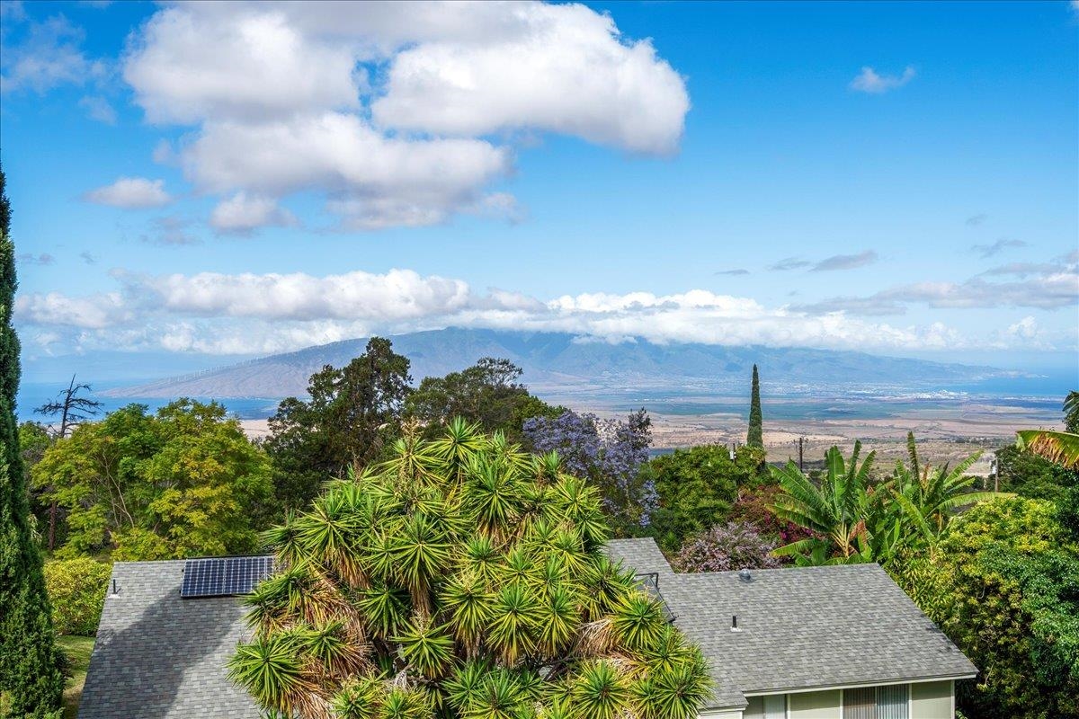 Everything you need, right in the heart of Kula! Welcome home to this single level, well-maintained property at the end of highly desirable cul-de-sac. The spacious living room offers views of the gardens & an abundance of natural light. The focal electric fireplace helps create the iconic cozy Kula ambiance. The pass through kitchen features newer stainless steel appliances as well as a separate slider to the exterior. Enjoy meals in the separate dining area. The primary en suite features it's own electric fire place, large closet, separate full bath and great garden view from the picture window. The second bedroom is currently set up as a very spacious office. The generous bonus 3rd bedroom has it's own full bath, room for a seating area and closet. Washer & dryer are located inside, along with a separate storage area perfect for pantry overflow & extra bulky items. Step outside to enjoy outdoor living at it's best. Take advantage of the covered & open area for dining, lounging & entertaining. The bonus second floor viewing deck offers incredible bi-coastal ocean views of South Maui, the North Shore and Haleakala. The lush landscaping includes many tropical fruits & flowers including banana, dragon fruit, avocado, figs, citrus and more. Close proximity to Morihara Store, Kula Bistro & Kula Community Park. This property has been lovingly cared for and is ready for it's next chapter.