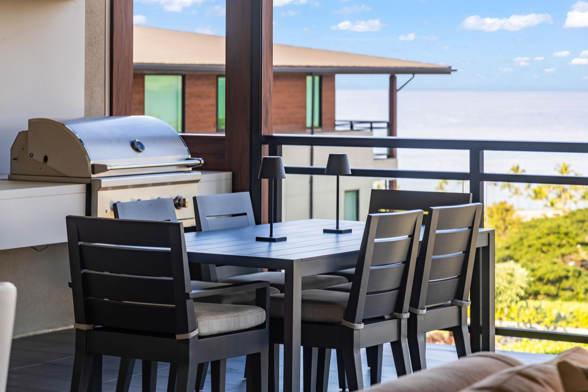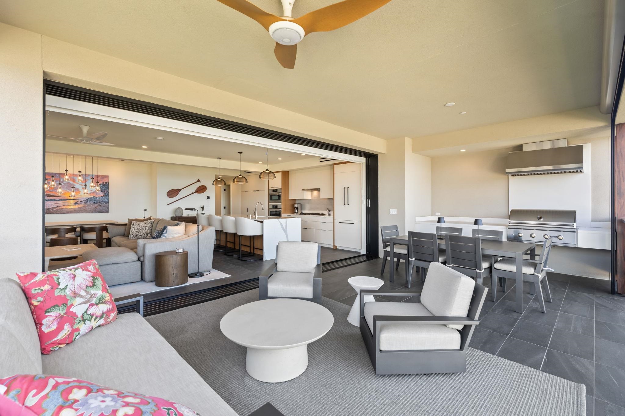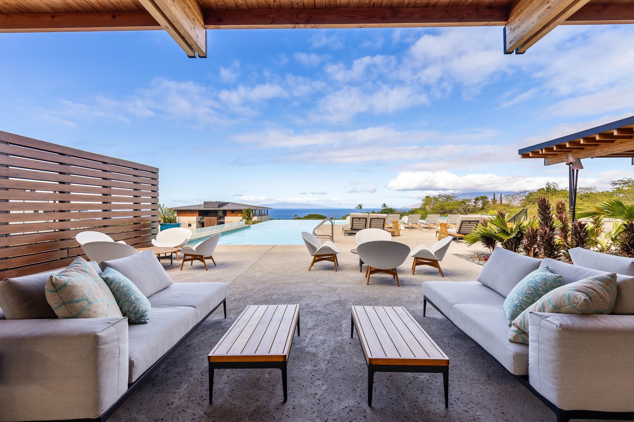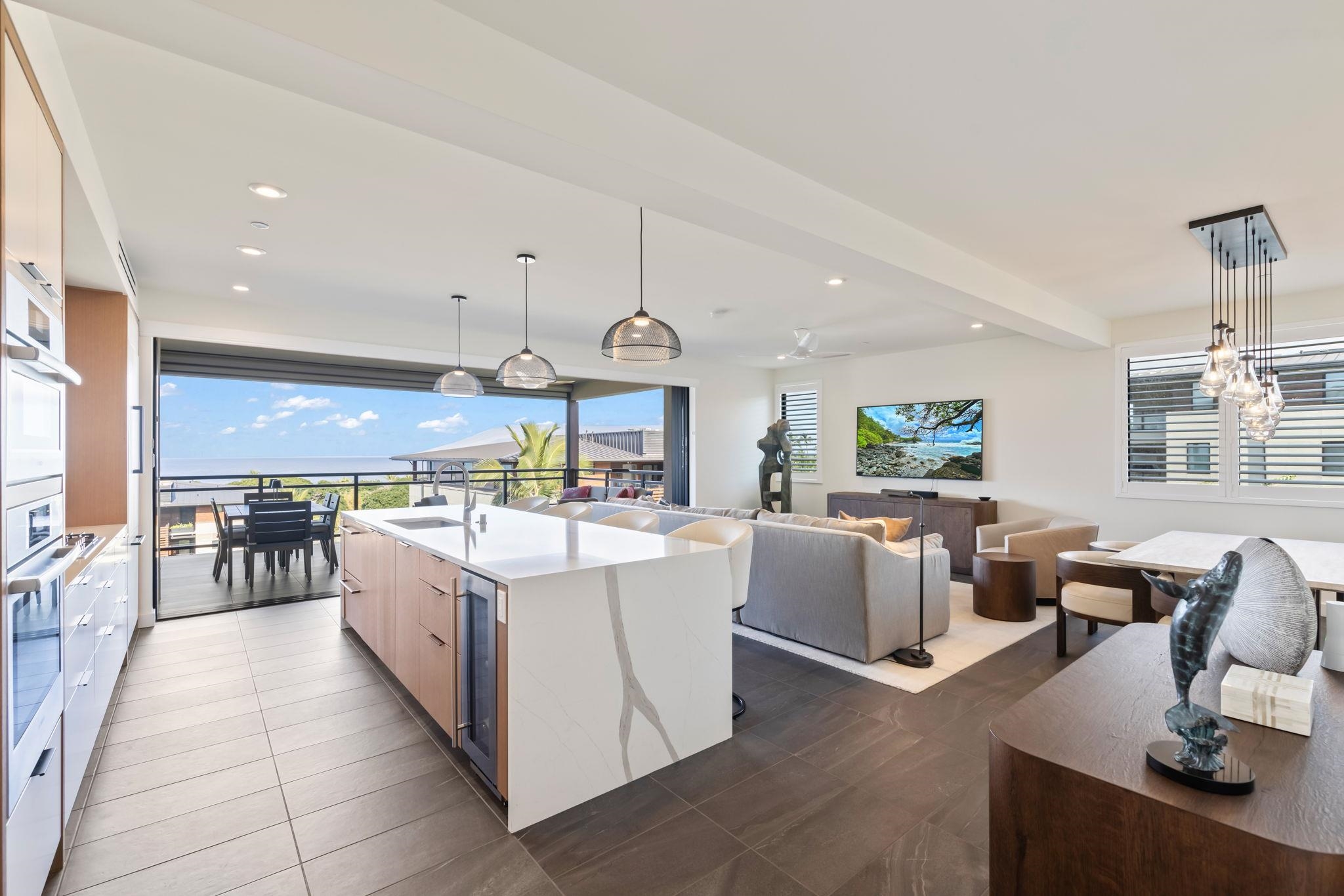 Live the Life You’ve Earned! Upon first entry, you will know you are home in Wailea’s Newest Development. Located in one of the most coveted locations within the La’i Loa community, this immaculate and luxurious second floor 2 bedroom 2 bath unit greets you with amazing Ocean and Outer Island views and offers fantastic sunsets and the wonder of great whale watching from your new home. This open floor plan sits wide to the view and once the beautiful sliding glass doors disappear into the walls, the living and outdoor areas blend seamlessly into the indoor outdoor lifestyle of your dreams. This home is beautifully appointed throughout and offered fully furnished with custom furnishings designed by Restoration Hardware. The handsome tile flooring upgrade extends to all areas and the world class chef’s kitchen with high end appliances including gas range from Bosch and Fisher Paykel double drawer dishwasher is wonderfully open for entertaining or your daily relaxation with loved ones. The expansive lanai features a Coyote gas grill with plenty of room for outdoor dining and an outdoor living area. You’ll notice the custom shutters and shades on all windows, plus the auto sunscreen on the oversized lanai, that gives you the flexible privacy and customizable mood setting for appreciating the beauty of each Maui day. The two baths are elegant in decor and function, offering the comfort and quality feel of resort type spa living. In addition to the community gates, each building has electronic access gates and garage, plus an elevator to all levels. Your private storage space in the garage area is huge and so convenient for extra storage, ready for any bikes, clubs, or other Maui accessories. The gated community has unbelievable amenities including an expansive infinity edge pool with dedicated lap end, giant hot tub, steam and sauna in the facilities, state of the art fitness center with free weights, two gathering areas, gas fired pit for sunset watching and more. This incredible unit is being sold turnkey - so just bring your clothes and get ready to live the good life in the one of a kind Wailea Resort, with all the world class beaches, shopping, restaurants, and amazing beauty of Maui to enjoy.