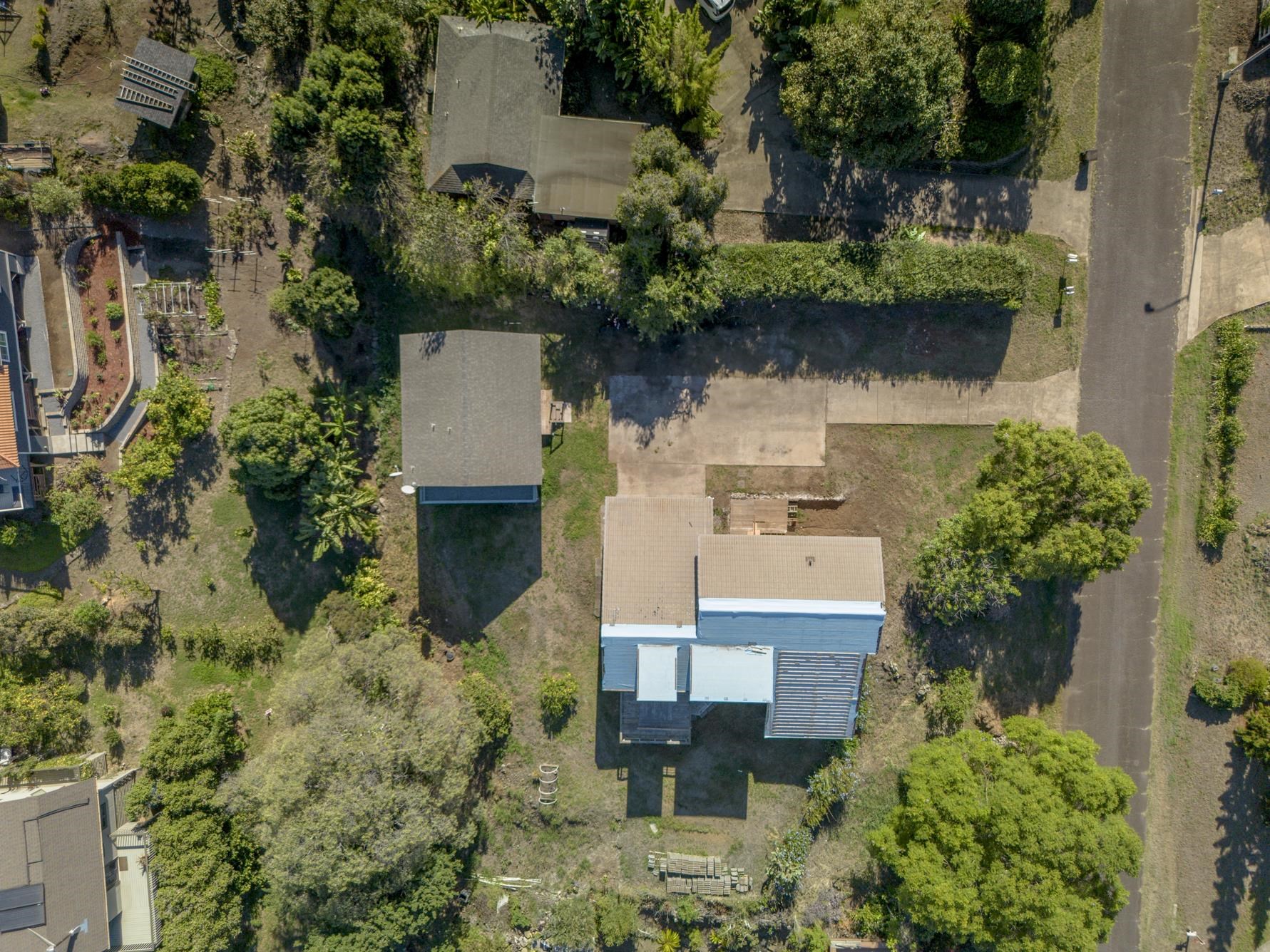 Nestled just above Lower Kula Road on peaceful Akea Place, this rare Upcountry Maui property offers panoramic views of the ocean and Haleakala and enjoys Kula's ideal climate-cool evenings, warm days, and the tranquil charm of country living. Set on a half-acre lot, the property features a main home (approx. 2,230 sq. ft.) and a detached two-bedroom, one-bath cottage (700 sq. ft.) with workshop. The main home has been architecturally redesigned to reflect desired modern living aesthetics with an elegant new open concept floor plan, and the in-progress realization of a 4-bedroom, 3.5 bath residence, with large bedrooms and a modern design. This is an exceptional opportunity for a contractor or creative homeowner-live in the Ohana while completing the main home to your own specifications. With permits pending, cabinetry and flooring for the main home and cabinetry for the cottage are included in the sale. The property also holds condominium (CPR) subdivision potential, offering the ability to create two sellable units for added long-term value. Enjoy peace, privacy, and tremendous upside in one of Kula's most desirable locations, on a quiet dead-end cul-de-sac. (Listing agent is owner.)