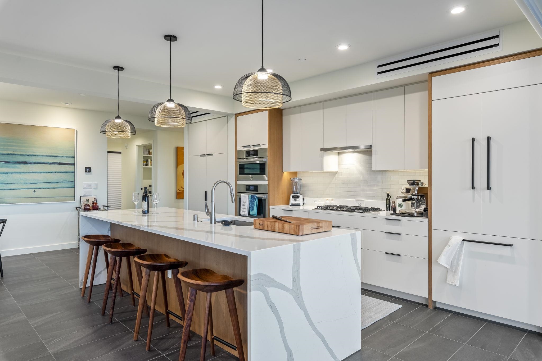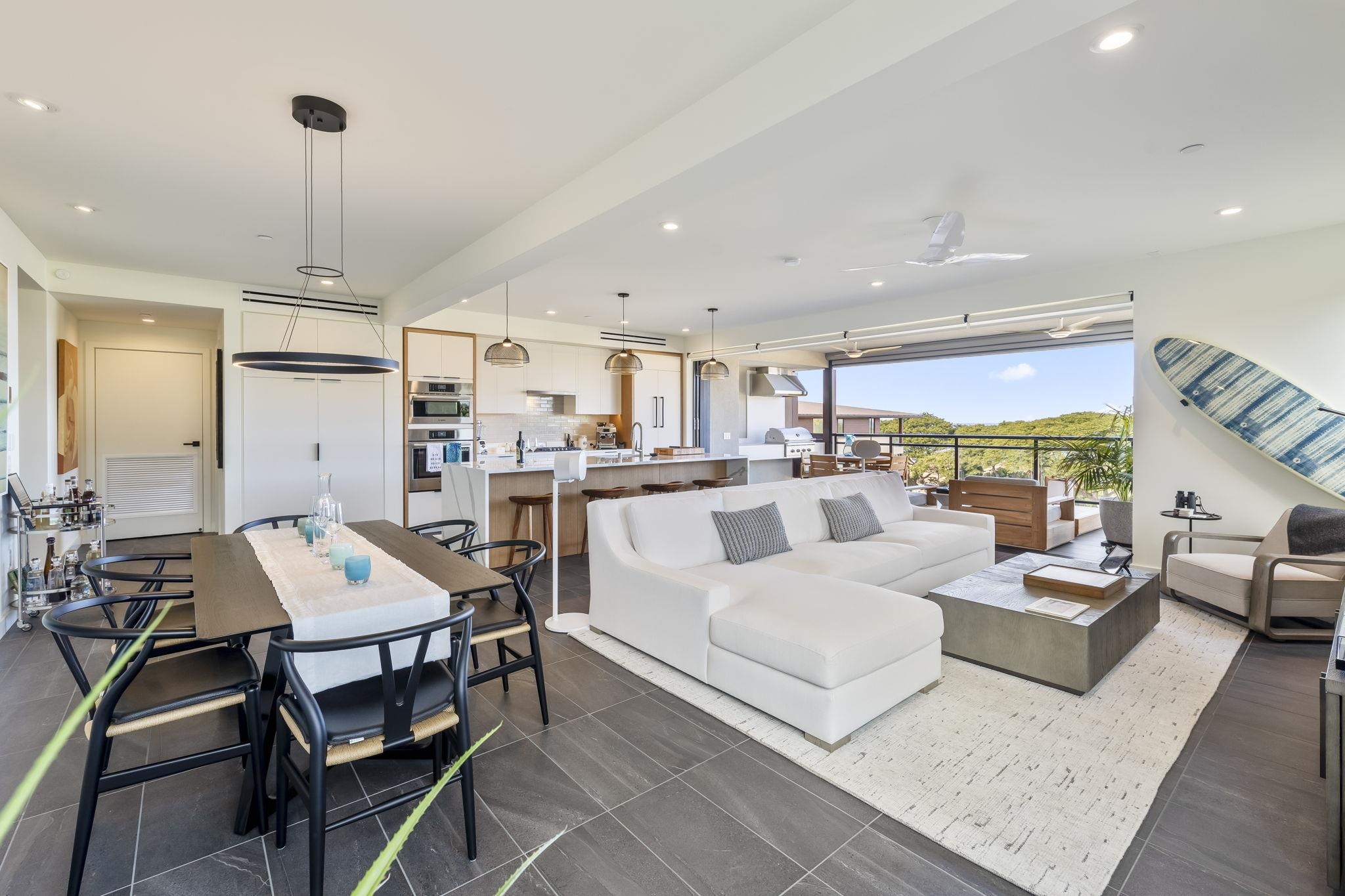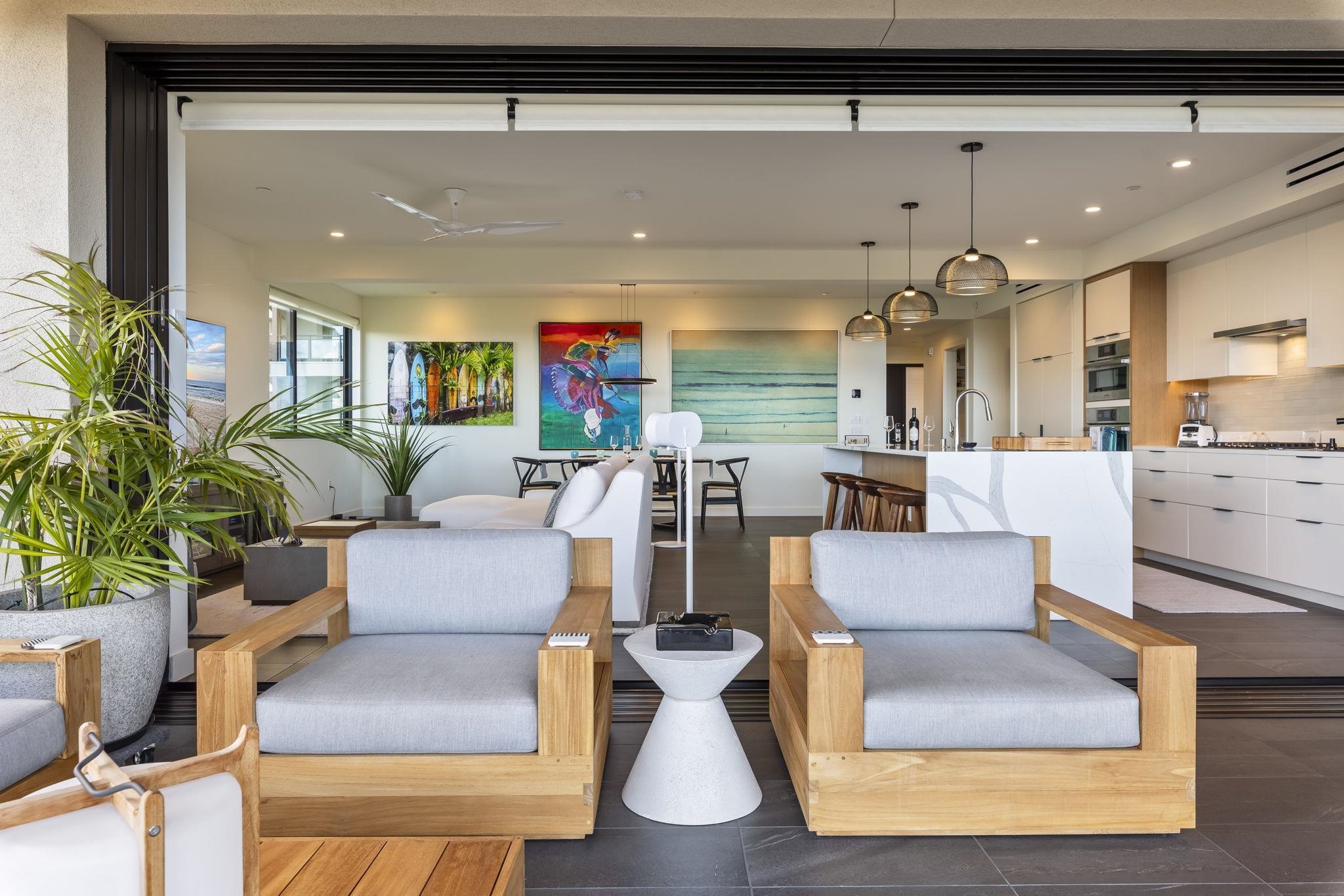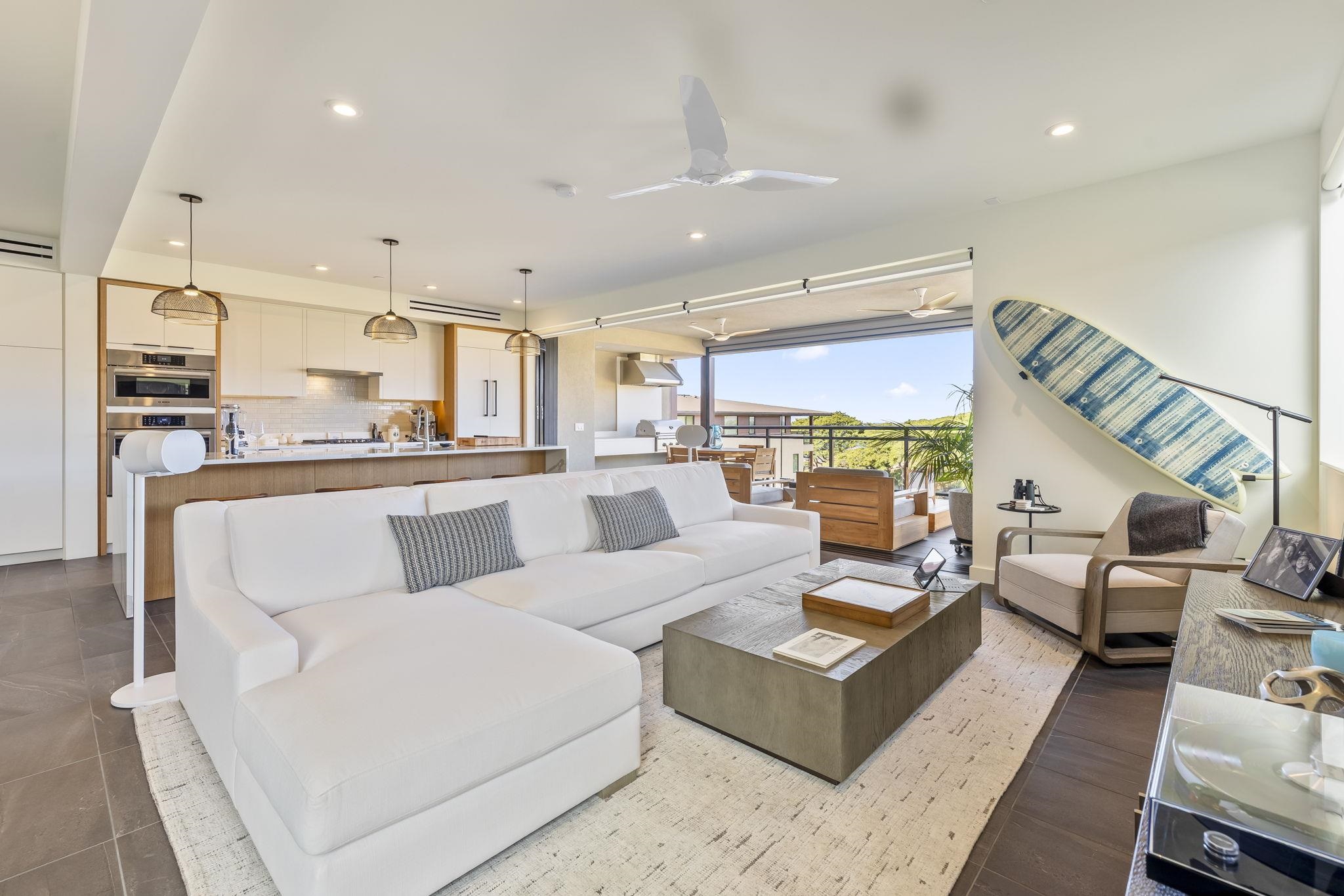The Pristine Wailea Residence you've been waiting for! Impeccable La’i Loa 3 bedroom 3 Bath Luxury Condo with expansive Ocean and Outer Island Views from the living areas and primary suite. The spacious quality extends in all directions on upgraded beautiful tile floors throughout. Generous open concept living, dining and state of the art kitchen, wide and comfortable, flows unobstructed out to the expansive 312 SF lanai as the handsome gliding glass doors disappear into the wall. Your modern kitchen features stainless Bosch appliances including refrigerator, oven, microwave and propane cooktop, Fisher Paykel double dishwasher, U-Line wine cooler and custom Blum cabinets. Huge quartz waterfall island has bar seating with handsome barstools and pendant lighting. The main lanai features a built in stainless four burner Coyote gas grill with vent. Beautiful furnishings specifically designed for this home are included, so you can enjoy the sumptuous comfort of your new Maui life from Day One. (Owners art excluded) The primary suite will be your luxury sanctuary complete with its own private 112 SF lanai area boasting stunning views plus the amazing primary bath. The premier electronics viewing and entertainment package includes 4 Samsung “The Frame” technology TVs and whole house wireless Sonos sound system. Custom Lutron auto shades and programmable Lutron lighting throughout are available to suit your every mood. Enjoy upgrades galore plus the elegant Hans Grohe fixtures, Rinnai propane fired instant hot water recirculating system, Blum cabinets and Toto toilets. One car garage downstairs with remote garage door access plus huge bonus storage room and an additional assigned parking space. The well equipped workout facility sits next to the tranquil infinity edge pool with bonus lap area and giant hot tub/spa with sauna and steam rooms available. Giant covered community entertainment area with extra grills and prep areas. The community gate puts you a short stroll from the Wailea Beachwalk, the Wailea Resort Hotels, The Shops at Wailea, and multiple world class beaches. Get ready to wake up, grab your coffee and Live the Life You’ve Earned!