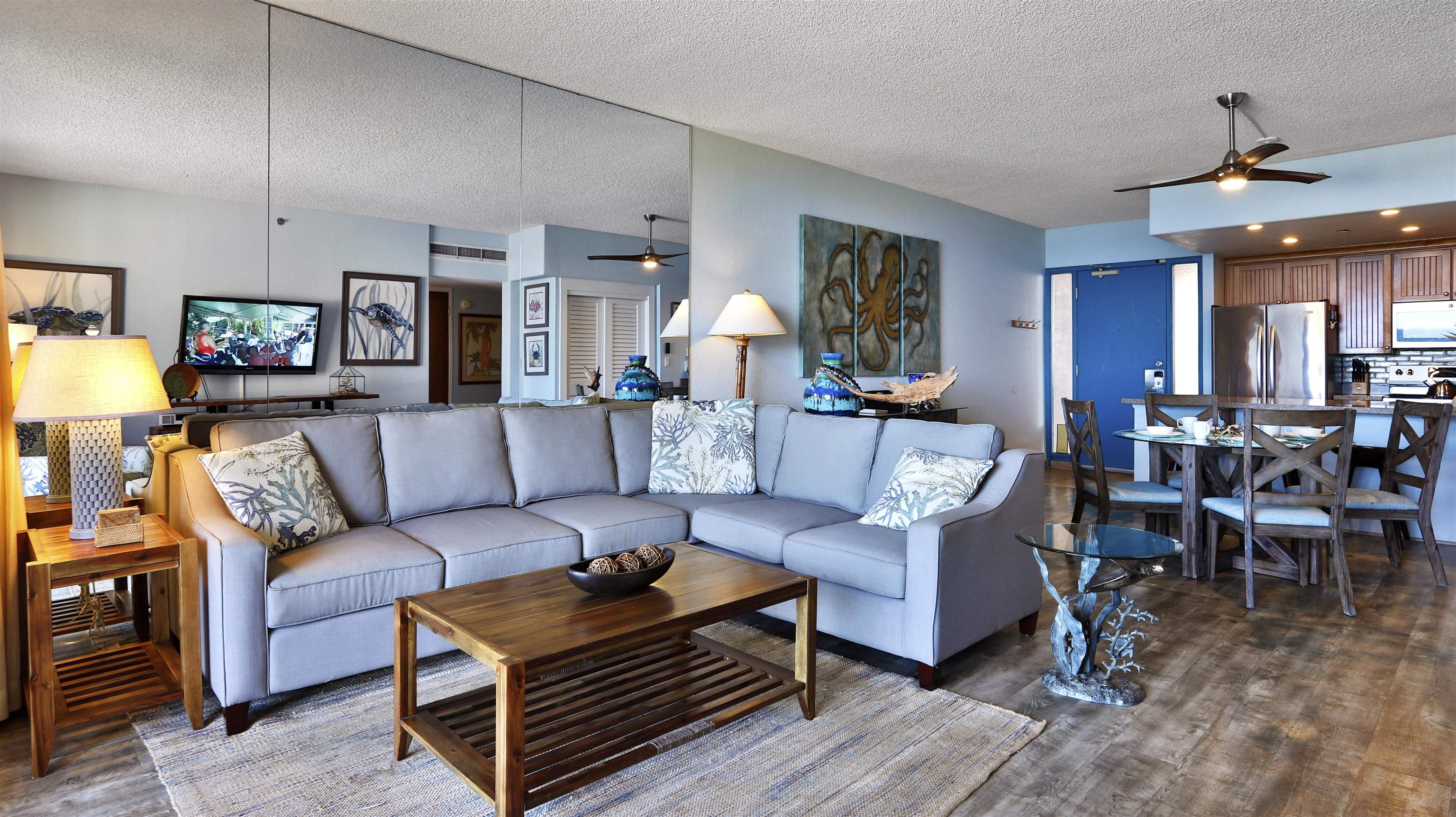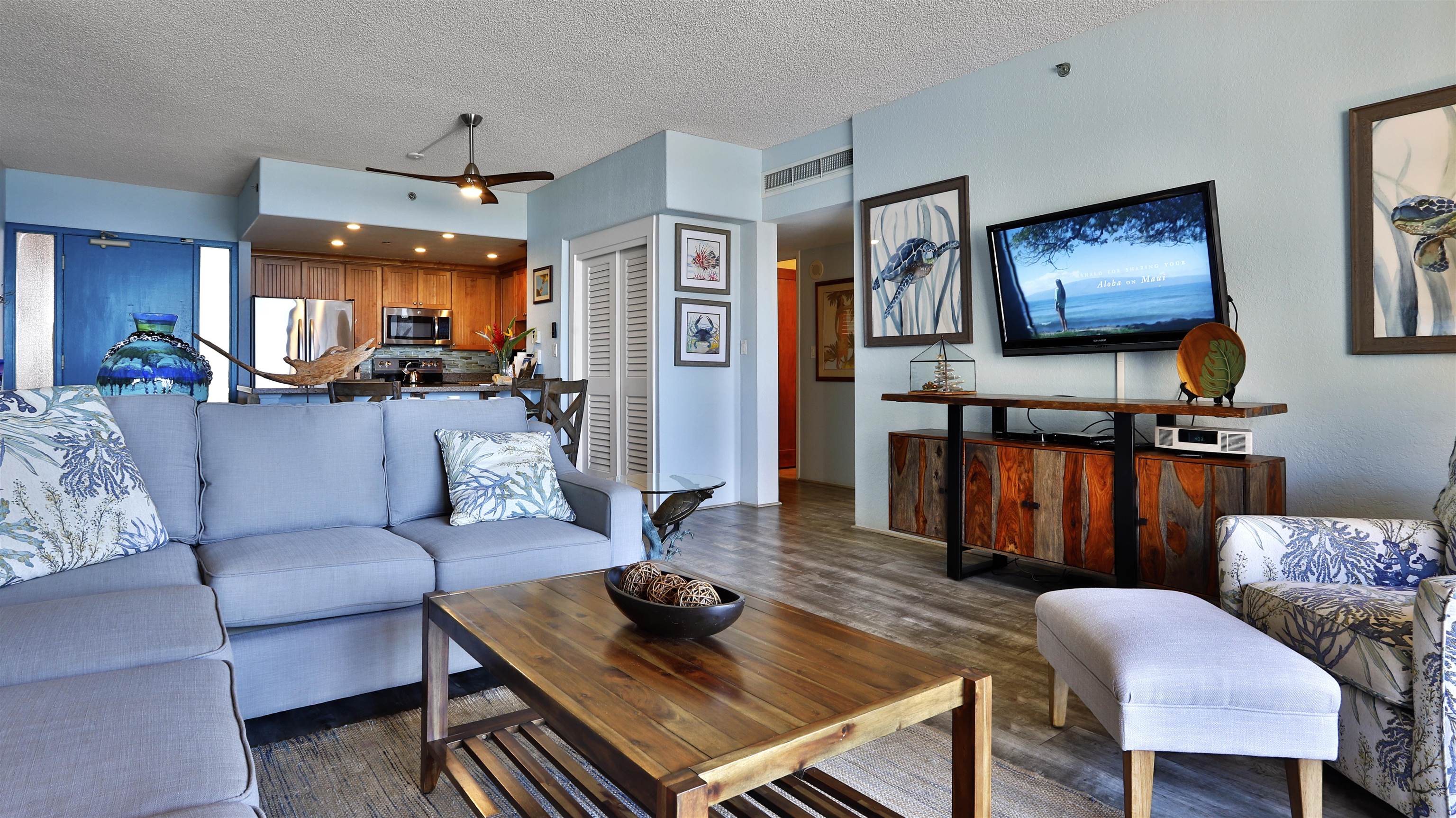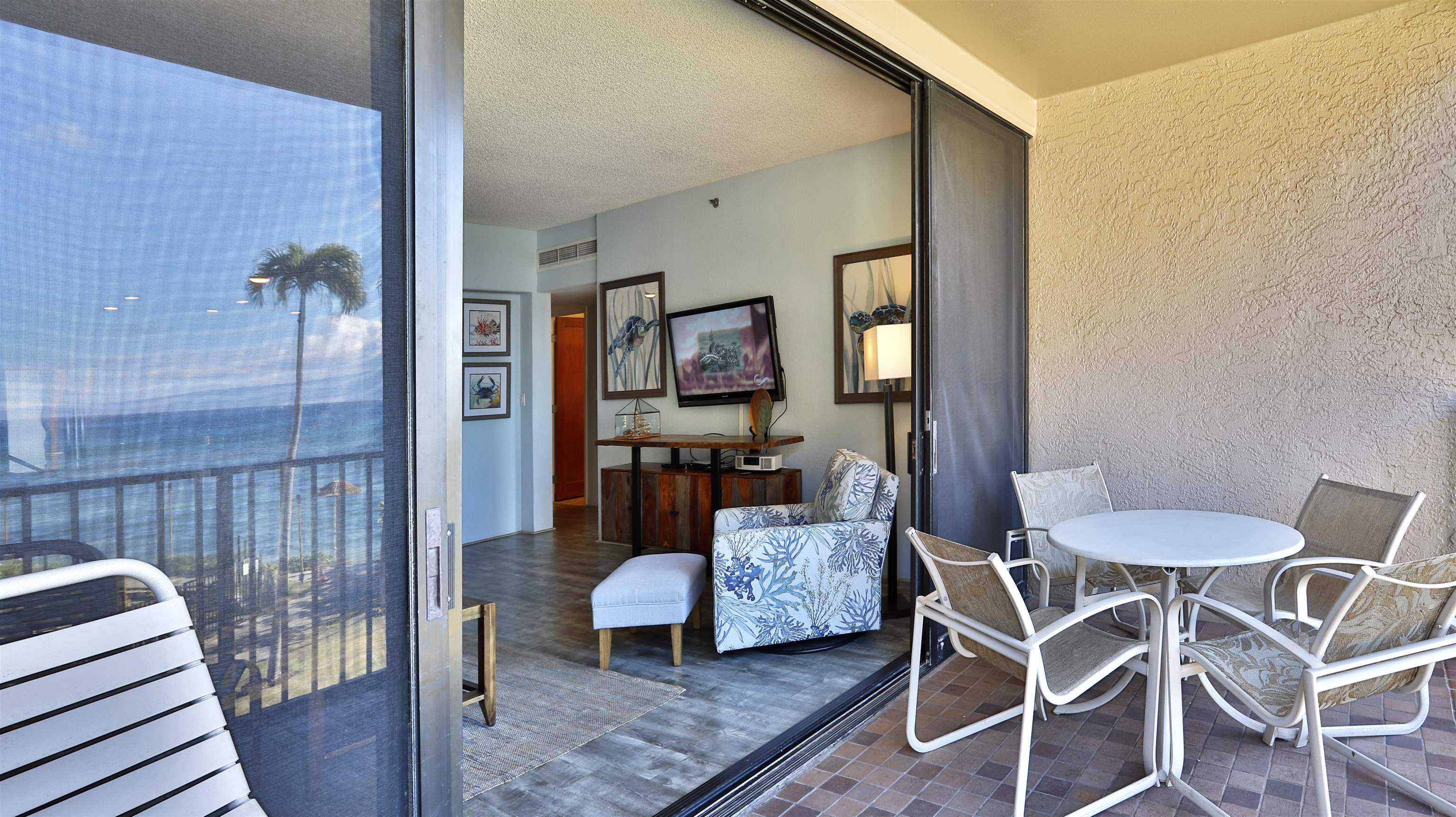 Discover the ultimate Maui retreat at Kaanapali Shores 259, a beautifully renovated 2 bedroom, 2 bath oceanfront condo offering some of the best views in the resort. This hotel-zoned property allows for short-term rentals, offering both flexibility and value for owners. Located on the second floor, this spacious 1,078 sq. ft. residence captures the essence of island living with full ocean views. Just steps from the shoreline, Kaanapali Shores 259 offers a front-row seat to Maui’s most captivating scenery. From the private lanai, take in stunning, ocean views while listening to the soothing sound of the waves rolling onto the beach. Step inside to find an upgraded interior featuring Luxury Vinyl Plank flooring, modern furnishings, and a comfortable sofa with a 6” memory foam mattress for additional sleeping space. Central air conditioning, a private lanai, and thoughtful design details ensure comfort and relaxation throughout. The open-concept layout and floor-to-ceiling glass doors create seamless indoor-outdoor living, perfect for taking in breathtaking sunsets, seasonal whale sightings, and gentle ocean breezes. Kaanapali Shores 259 is fully turnkey and ready for short-term rental operation, offering excellent rental performance and strong guest appeal. It’s also perfectly suited as your personal Maui getaway and ideal for extended stays or as a second home where you can truly live the island lifestyle. The Kaanapali Shores Resort spans ten acres of beautifully manicured oceanfront property and offers an array of amenities: two swimming pools, two spas, tennis courts, BBQ areas, a poolside restaurant and lounge, and a full-service spa and salon. There’s also a privately owned fitness center and convenient onsite shops. Stroll to nearby restaurants, the farmer’s market, grocery store, and beach park, all within walking distance. Kaanapali Shores is one of West Maui’s most beloved destinations, where oceanfront living meets resort-style comfort. With its stunning views, modern updates, and proven rental success, Unit 259 offers an exceptional opportunity to own a piece of paradise on one of the world’s most sought-after coastlines. THIS IS A LEASEHOLD PROPERTY. Some artwork is not included in the sale.