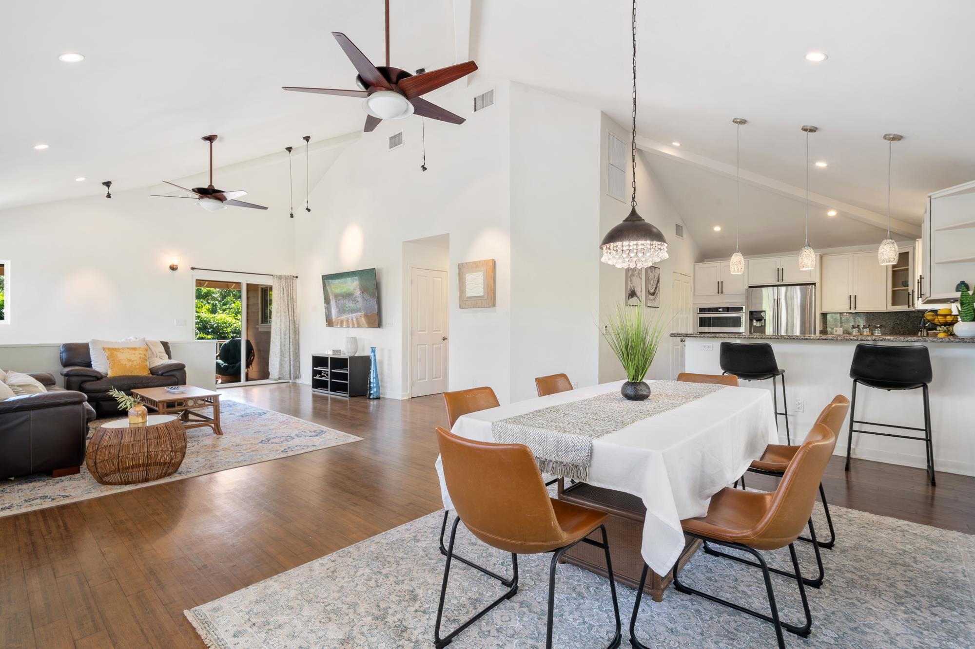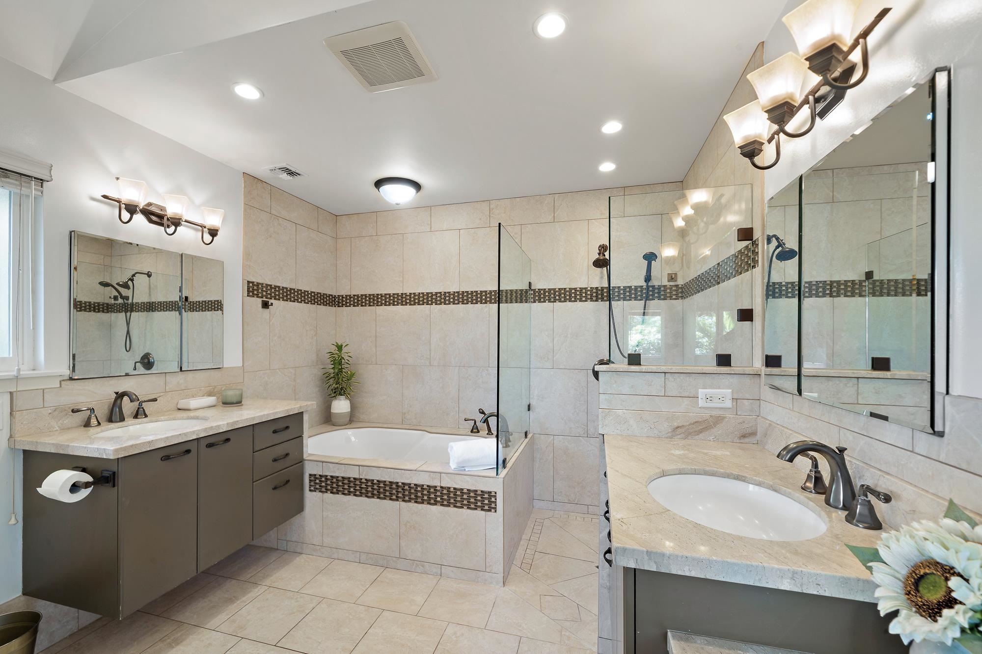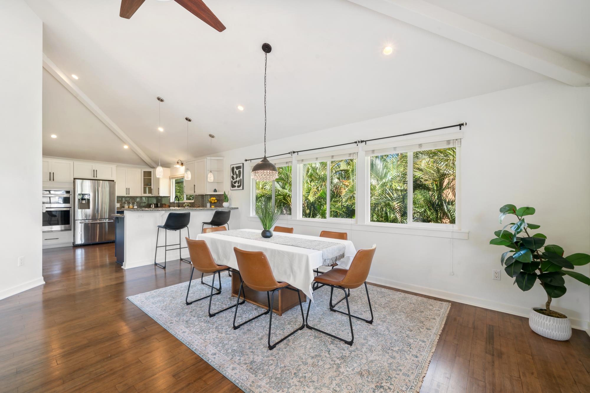 Welcome to your garden oasis. Nestled in the gated community of Kahana Wai–a boutique neighborhood of just 17 custom-designed homes–54 Hua Nui Way is a 3-bedroom, 2.5-bathroom residence located across the street from the ocean. Offering the best of island living, the home features vaulted ceilings, bamboo flooring and abundant natural light. The open-concept floor plan seamlessly connects the modern kitchen to the dining area, living room and covered lanai, creating an ideal space for entertaining or relaxed living. The primary suite is a tranquil retreat with a cozy daybed nook and a spa-inspired bathroom. The lower level offers two additional bedrooms, a full bath and a flexible bonus area with a bar refrigerator, and direct access to a spacious lanai that opens to the lush backyard. Surrounded by tropical landscaping with a fully fenced yard, this home is a true garden oasis. A gazebo sitting area overlooks irrigated garden beds ready for your personal touch. Modern comfort meets sustainability with central AC, an owned photovoltaic system, fresh interior paint, a new water heater, and a recently replaced AC compressor. Perfectly situated between Kapalua and Ka‘anapali, this home offers easy access to pristine beaches, championship golf, fine dining and shopping–all while enjoying the charm and vibrant community of Kahana Wai.