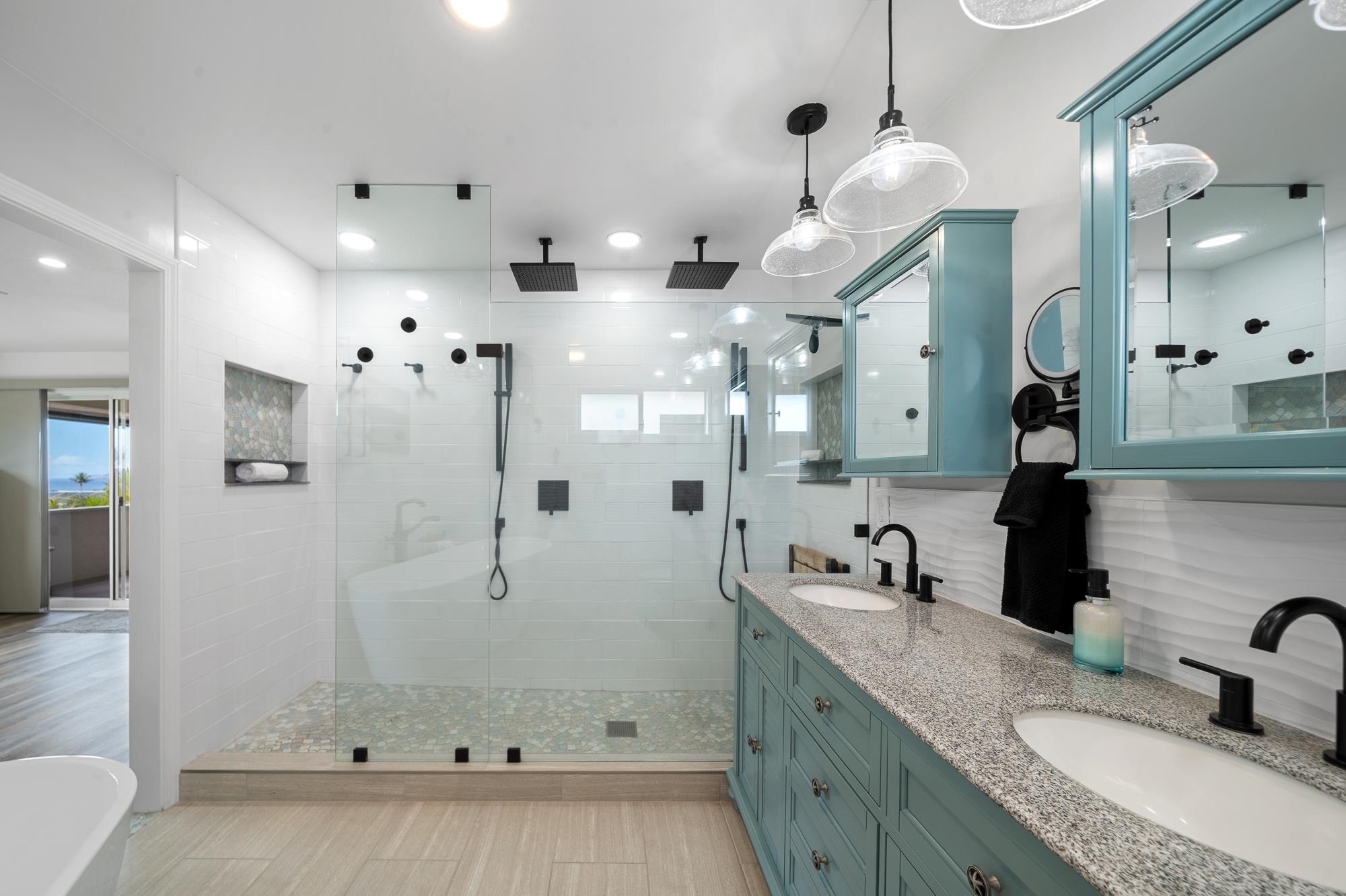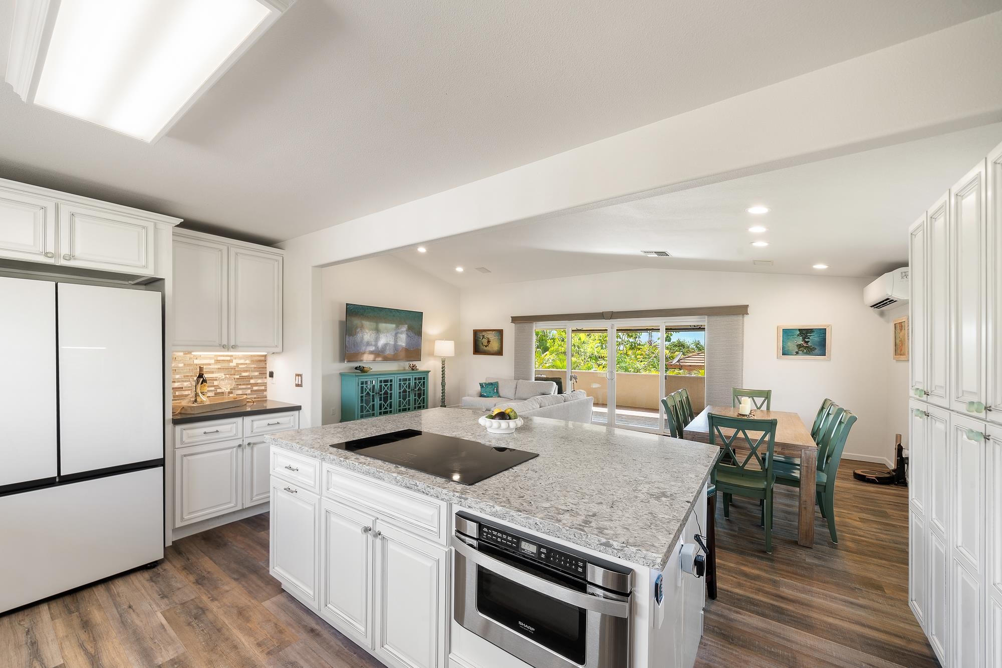 You’ll love this beautifully remodeled and spacious split-level home in the Pacific Terrace subdivision. Located on a quiet cul-de-sac near Kam III Beach Park, this move-in ready property offers ocean and mountain views, central and split air conditioning, and generous indoor and outdoor living areas. Enjoy the private gated front yard with a large in-ground pool and low-maintenance landscaping. Inside, the open floor plan features two large family rooms ideal for entertaining. The upper level includes a bright dining and living area with a kitchen bar and a large island offering double-deep storage, the primary suite, a guest bedroom, a full bath, and a covered lanai with ocean views. The lower level offers an office, bonus room, laundry room, two guest bedrooms, and another full bath. Additional highlights include a new roof installed in 2025, ensuring long-term durability and peace of mind. Just minutes from the world-class beaches, golf courses, and resorts of Wailea and Makena, this South Kihei home has it all.