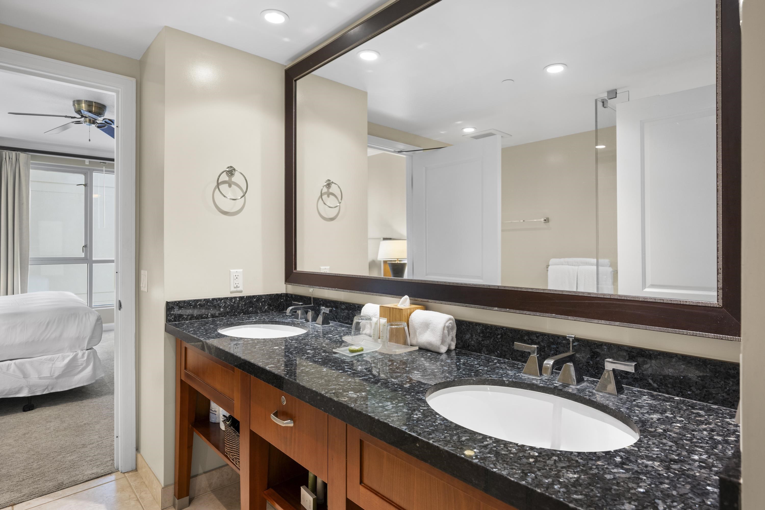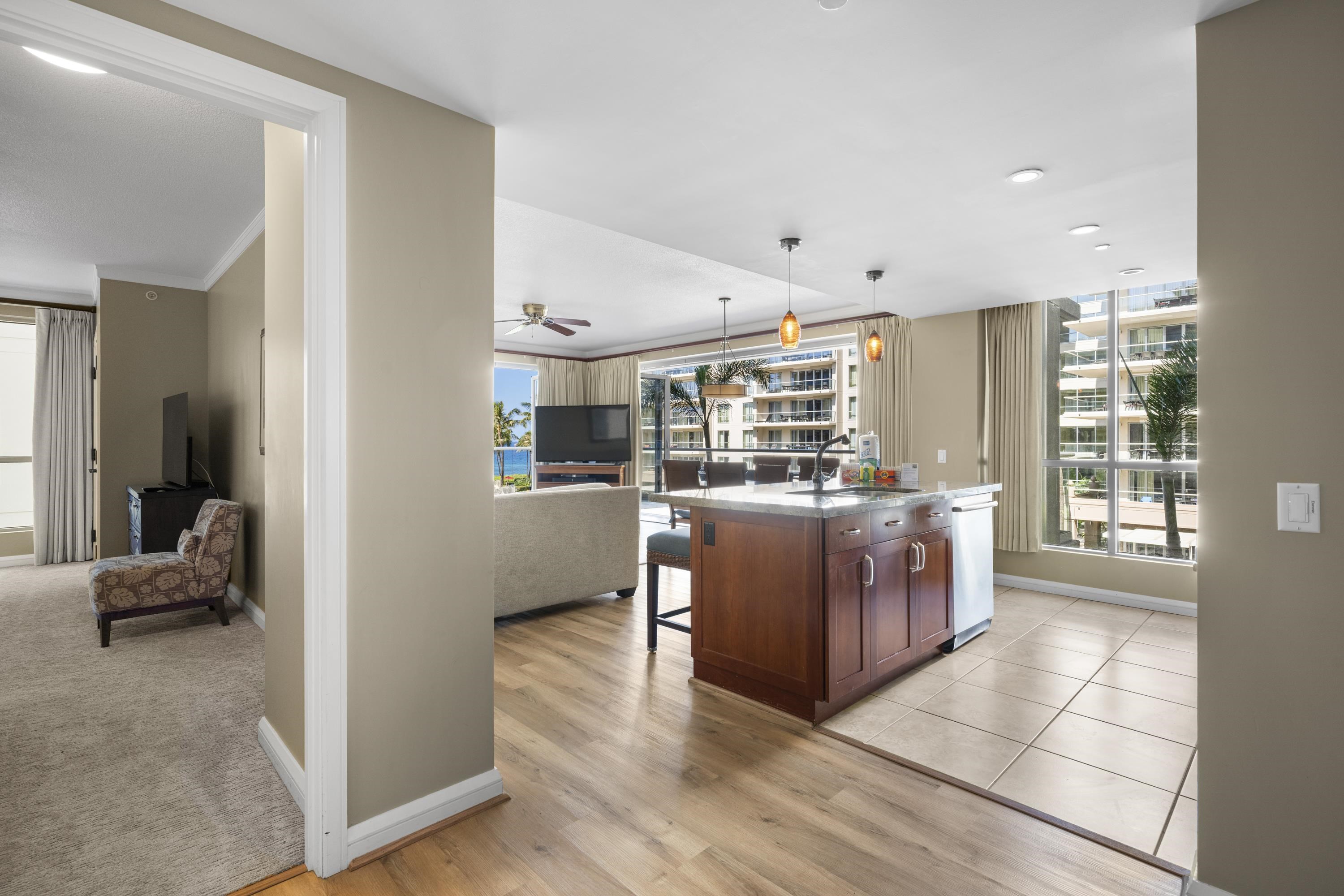 Rarely does an L-shaped lanai 2-bedroom inner courtyard condo come onto the Honua Kai resale market. And this one is certainly special. In the last two years the owner has upgraded the entire 1325 sq.ft. home with a new stove and oven, microwave, refrigerator, dishwasher, washer and dryer along with an upgraded water heater. The home offers two owner closets with custom storage shelving. New 60” OLED tvs were added along with a sonos sound system which make watching tv a “theater-like” experience. Finished off with new bedroom carpeting and vinyl plank flooring in the foyer and living room, this home is absolutely turnkey, with no foreseen repairs or appliance replacements for a long time to come! Its oversized lanai offers leisure dinners enjoying the Pacific sunsets and whale watching. This is truly Honua Kai “at its best”. Priced very competitively, this is a “must consider” for every buyer. Honua Kai amenities include 3 distinct swimming pools, 5 hot tubs, valet and underground parking, concierge service, HOA owned work out facility, Ho'ola Spa and of course, Dukes Beach House.