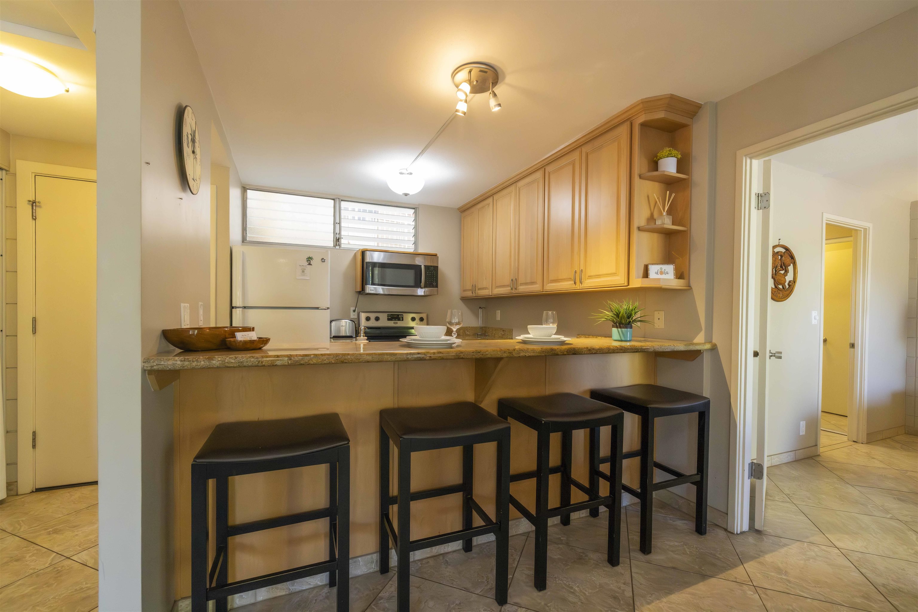 Welcome to Haleakala Shores, where the dream of Maui living becomes your everyday reality. Just half a block away from the beach, this beautifully maintained 2 bedroom 2 bath condo blends comfort, style and an ubeatable location- perfect as a home, getaway or currently a strong performing vacation rental. Step inside and feel the island breeze flow through the bright, airy open floor plan featuring sleek tile floors, upgraded cabinetry, and granite countertops throughout. Upgraded appliances, in-unit washer/dryer and on-demand water heater for endless hot showers after your beach adventures. Every room is comfort enhanced with new ceiling fans, while a powerful livingroom AC unit keeps you cool year round. An electronic door lock provides for effortless access-ideal for both guests and owners. This unit is ideally positioned for easy access from you deeded parking stall to your front door. Enjoy resort style amenities, including a sparkling swimming pool, grilling area and a shaded poolside gazebo for perfect relaxing with friends and family. Located near some of South Maui's most iconic spots- Kama'ole Beach Parks I, II & III and the world renowned Keawakapu Beach. You are steps away from swimming, snorkeling, paddling or watching postcard worthy sunsets. Walk to fantastic restaurants, a natural grocery store, and local shops, or take a quick drive to The Shops at Wailea. Do not miss this chance to own this extraordinary maui retreat. Schedule your showing today with your favorite Realtor. We will work showings around the guests staying in the unit.