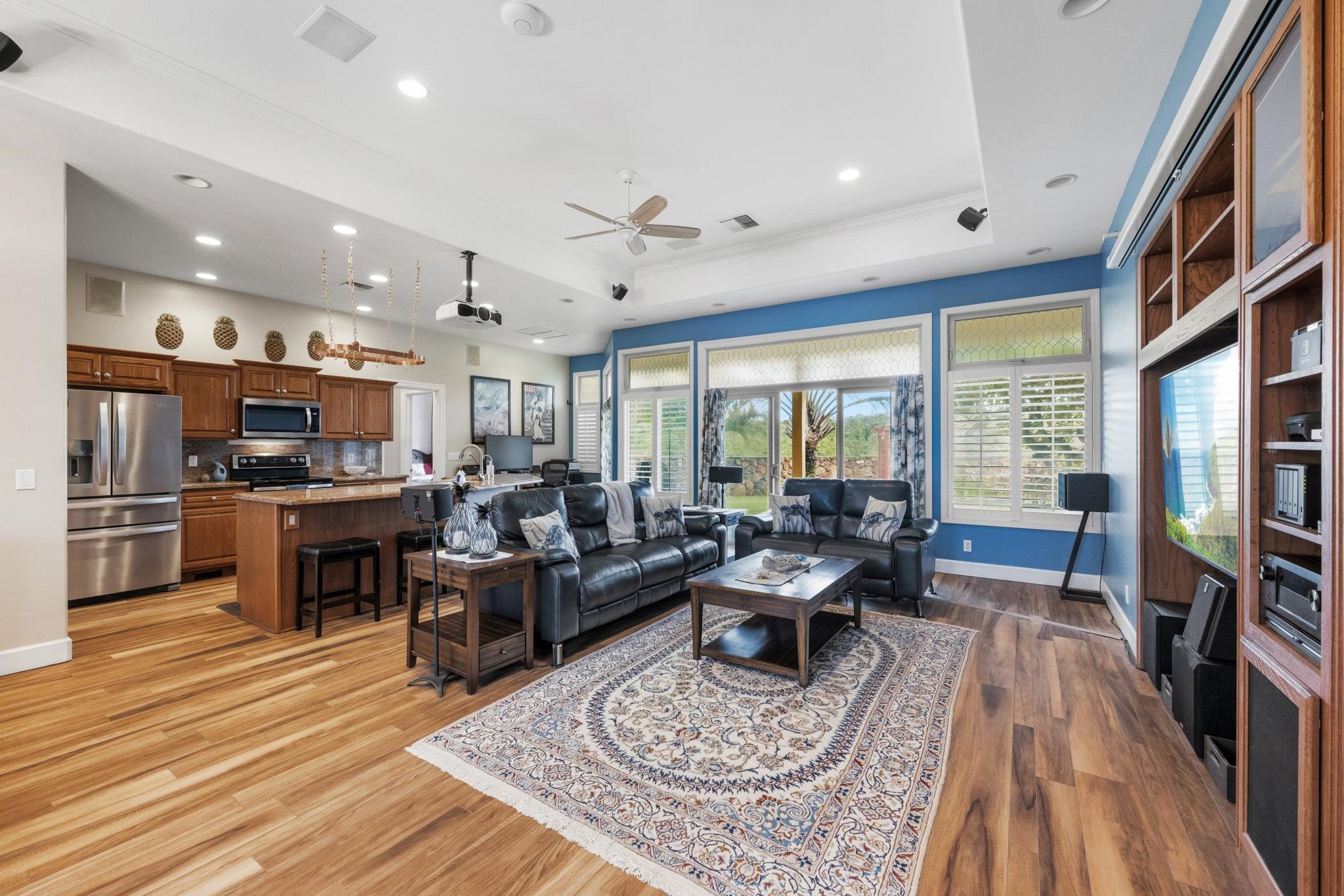 Welcome to a smart home crafted for comfort, privacy, and effortless single-level living. From the moment you enter, the high ceilings and expansive layout set a tone of understated elegance. The heart of the home–its open-concept kitchen and living area–flows seamlessly to a large covered outdoor space designed for both relaxing and entertaining. Granite surfaces, a substantial kitchen island, and soft, neutral tones enhance the home’s timeless appeal. Thoughtful features such as indoor/outdoor surround sound, a central vacuum system, recessed lighting, new central A/C, and a full security setup reflect careful attention to quality, convenience and safety. The primary suite offers a private retreat with a jetted tub, glass shower, and a walk-in closet. Two additional bedrooms and a full bath sit on the opposite side of the home, ideal for guests or family. Situated on one of the community’s largest lots, the backyard feels like a secluded sanctuary. With a three-car garage, Monier tile roof, stucco finish, and a premium home warranty included, this residence is ready for its next discerning owner.