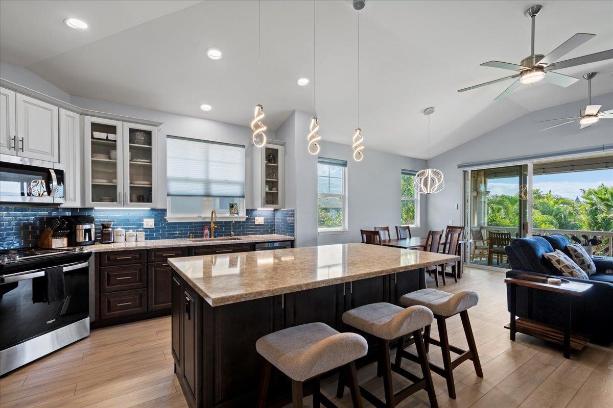Welcome to 30 Laukahi St, a beautifully remodeled home in the heart of Moana Estates, offering space, views, and an unbeatable location. This 5-bedroom, 4-bathroom residence features the largest floorplan in the neighborhood, with over 2,700 sq. ft. of interior living space plus more than 500 sq. ft. of covered lanais, creating over 3,000 sq. ft. of exceptional indoor-outdoor living. Situated on nearly a quarter acre, this home boasts one of the largest yards in Moana Estates–plenty of room to add a pool, sport court, or lush tropical landscaping. Enjoy breathtaking ocean and mountain views from the upstairs and downstairs lanais, perfectly positioned to capture Maui’s natural beauty. The flexible layout includes a spacious downstairs ensuite bedroom with a separate entrance, ideal for guests, extended family, or a private home office. Thoughtfully updated in 2023, this home is move-in ready while offering endless possibilities to make it your own. Nestled in a prime, quiet location within the neighborhood, you’re just minutes from Kamaole Beach, shopping, and dining. This is the opportunity you’ve been waiting for–space, views, and an incredible Kihei lifestyle.