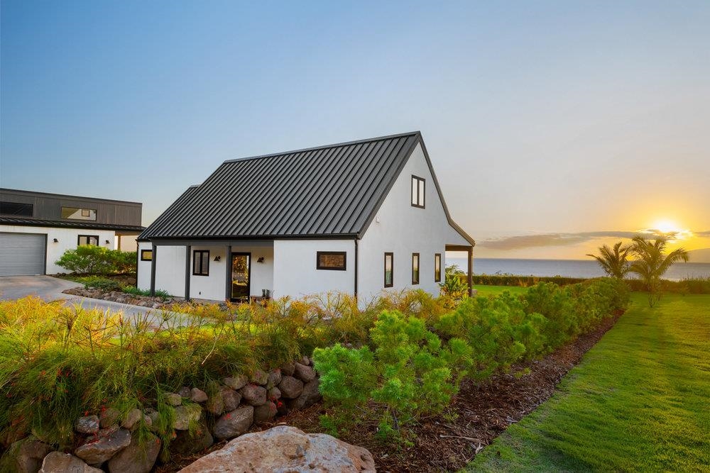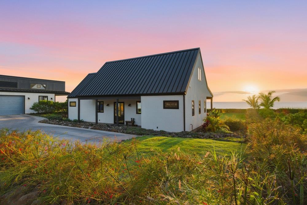 Nestled in the desirable Launiupoko community in West Maui, this recently built contemporary home commands sweeping, unobstructed ocean views. Unique aesthetic touches dazzle throughout with white walls, a bold black standing-seam roof, epoxy floors, and expansive glass to create a serene, modern backdrop for daily sunsets and seasonal whale watching from the lanai and pool area. The CPR'd 2 bedroom 2 bathroom residence offers spacious indoor-outdoor living, a gourmet island kitchen, serene primary suite, and well-separated guest rooms. A large detached two car garage provides additional storage space and a newly installed PV system complete with two Tesla batteries. Easy access to Launiupoko Beach Park and West Maui’s best surf and paddle spots, this is relaxed, upscale island living at its finest.