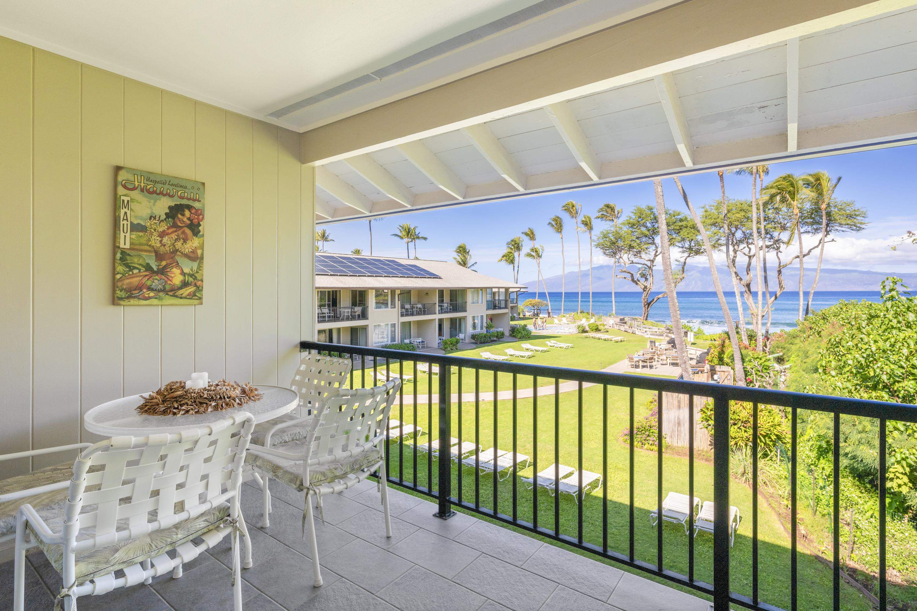 Wake up to breathtaking ocean views in this bright and recently renovated studio! Napili Surf is located directly on the stunning Napili Bay, boasting panoramic ocean and Molokai views, which can be enjoyed from the living space, kitchen, and spacious second story lanai. This charming Lokelani studio unit offers modern and thoughtful finishes, a full kitchen, and plenty of natural light, creating a serene island retreat which combines functionality with classic island charm. Enjoy resort-style amenities including a front desk reception, two sparkling pools, BBQ area, and direct access to a sandy beach perfect for swimming, snorkeling, and sunset strolls. Whether you’re looking for a place to call home or an investment opportunity, this property combines comfort, convenience, and the pristine beauty of West Maui’s coastline. Napili Surf is a boutique, hotel-zoned resort in which units seldom come to market.
