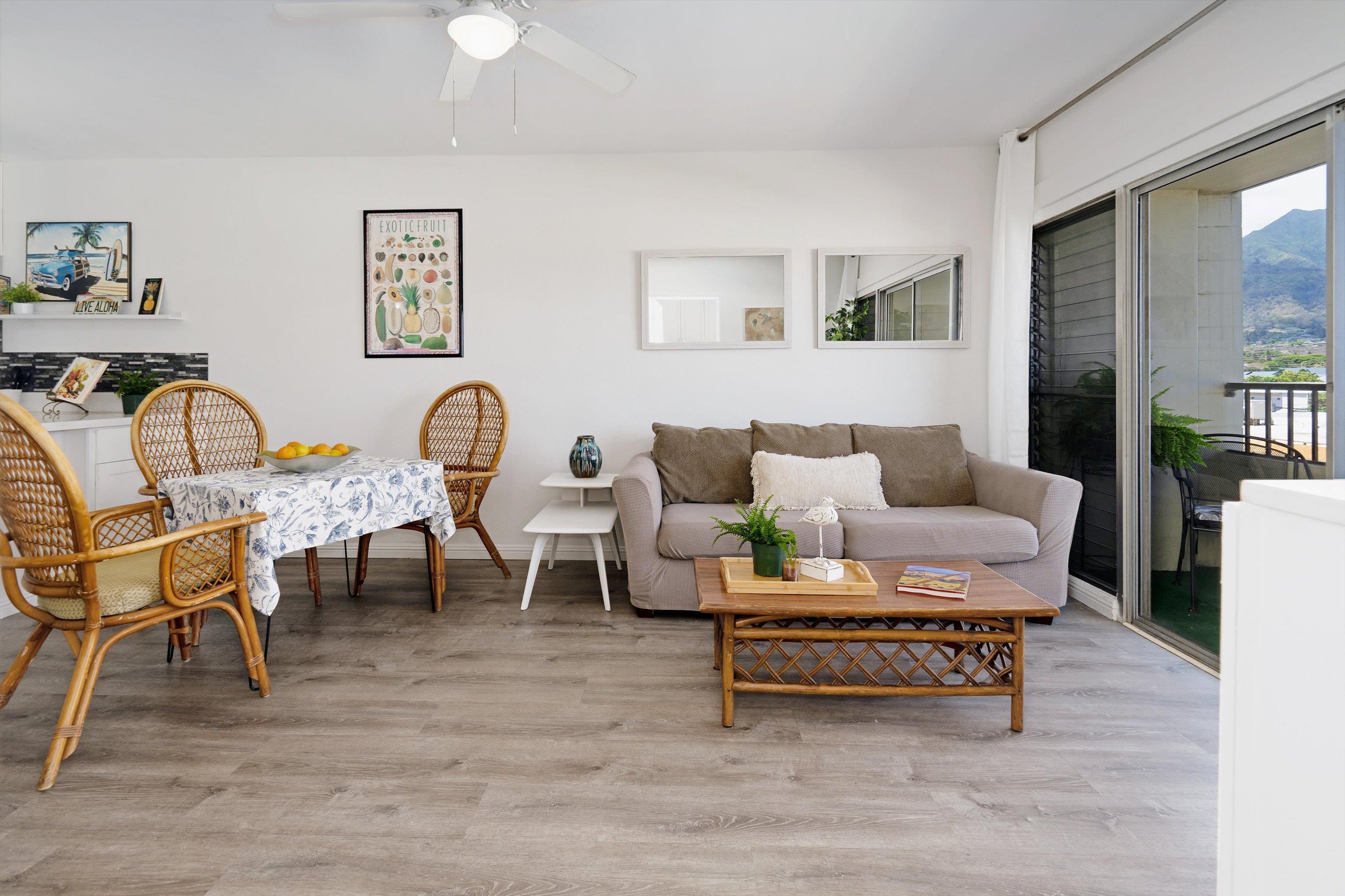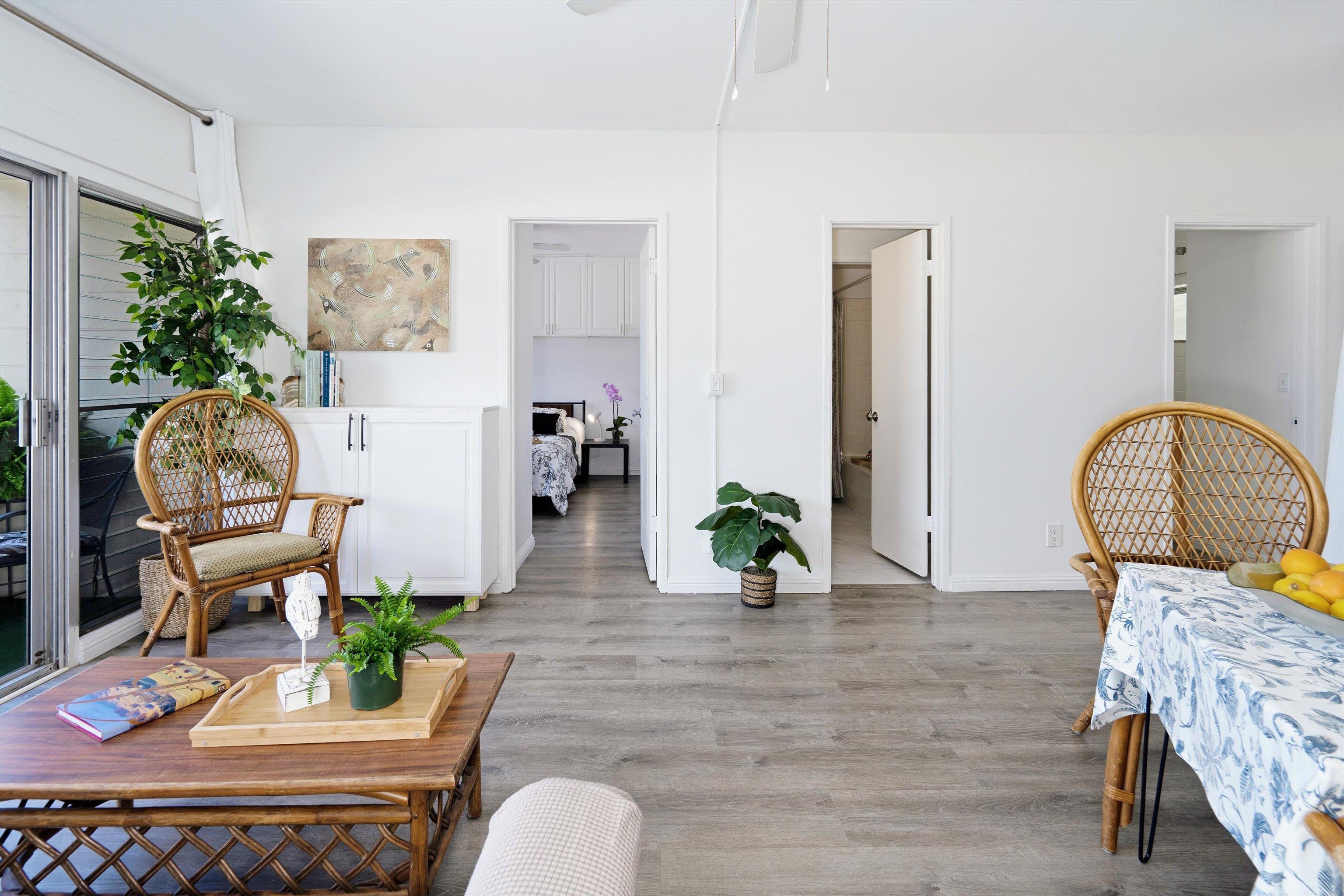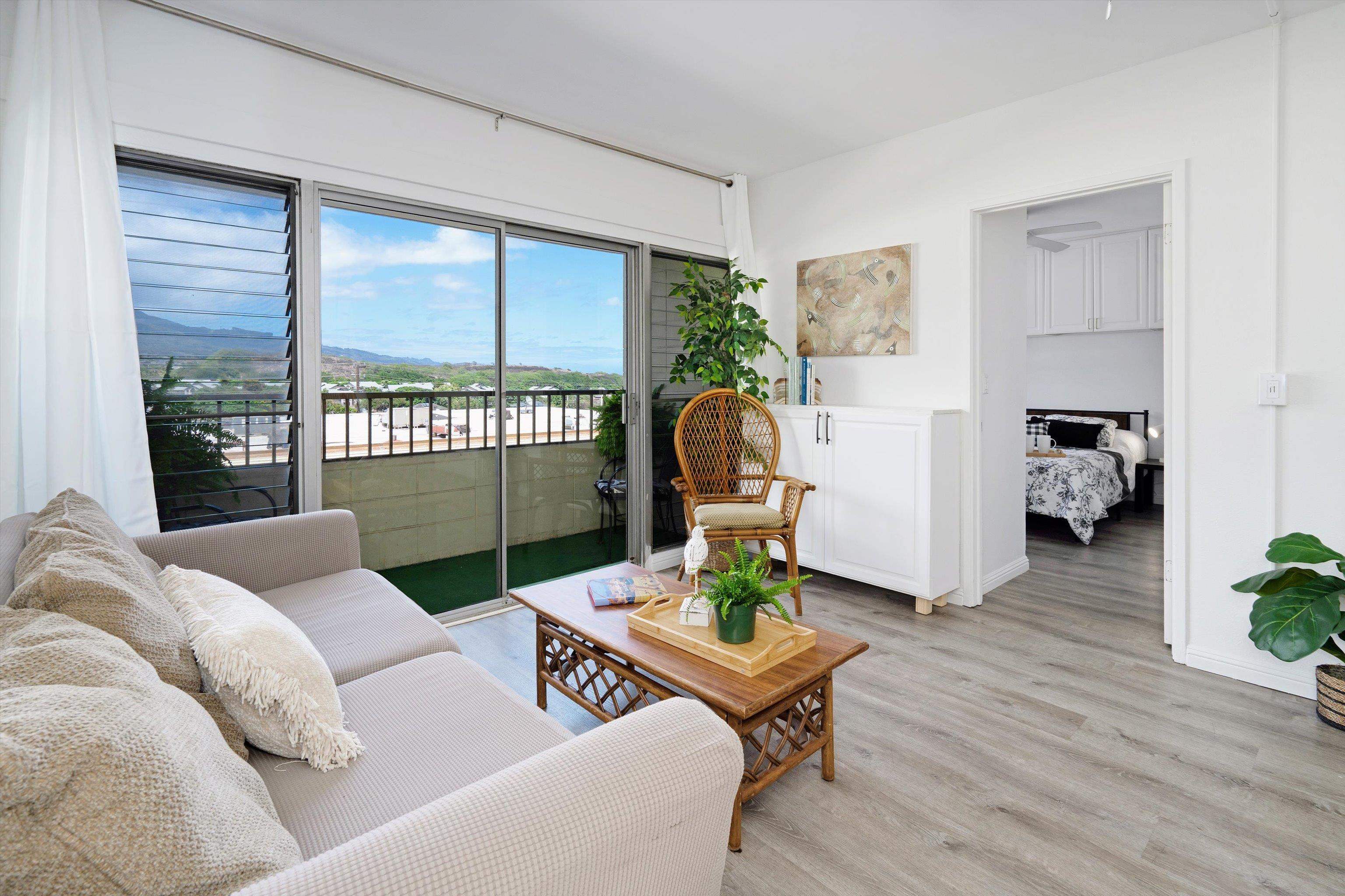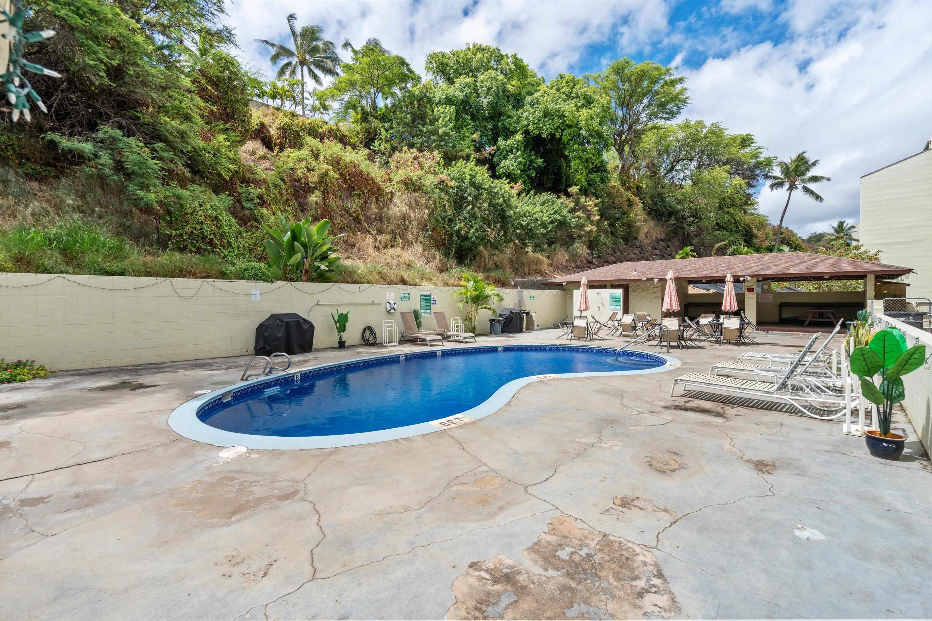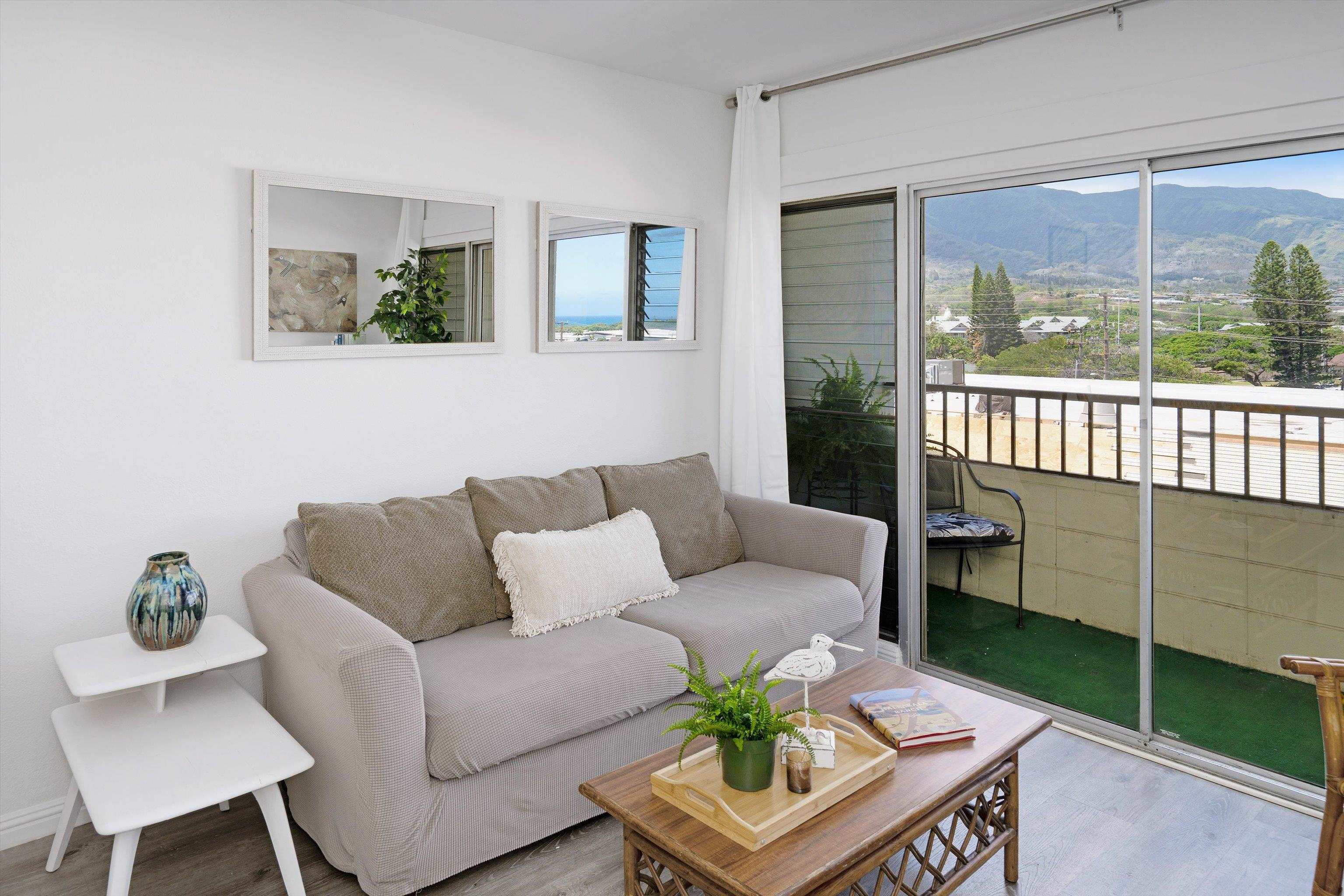 Welcome to Puuone Towers & Plaza, where convenience meets comfort in this bright and updated two-bedroom, one-and-a-half-bath condo. From the lanai, enjoy stunning views of the West Maui Mountains and glimpses of the ocean, creating a relaxing backdrop for everyday living. Inside, the home is well-appointed with modern touches, including quartz countertops, luxury vinyl tile flooring, and newer appliances including a stacked washer and dryer. The required updates extend to the plumbing, which has already been completed for the entire unit, giving you peace of mind. This pet-friendly complex offers desirable amenities, including an in-ground pool with a shaded gathering area, garden space, covered parking with one assigned stall, and both elevator and stair access conveniently located near the unit. The monthly HOA covers common area maintenance, water, trash, and an onsite manager, making life here easy and stress-free. Centrally located, you’ll find yourself close to shopping, restaurants, government and legal offices, the hospital and medical offices, and everything Wailuku has to offer. Being sold partially furnished, this move-in-ready condo is waiting to welcome its new owners. Both Sellers hold an Active Hawaii Real Estate License. The listing agent is one of the owners.