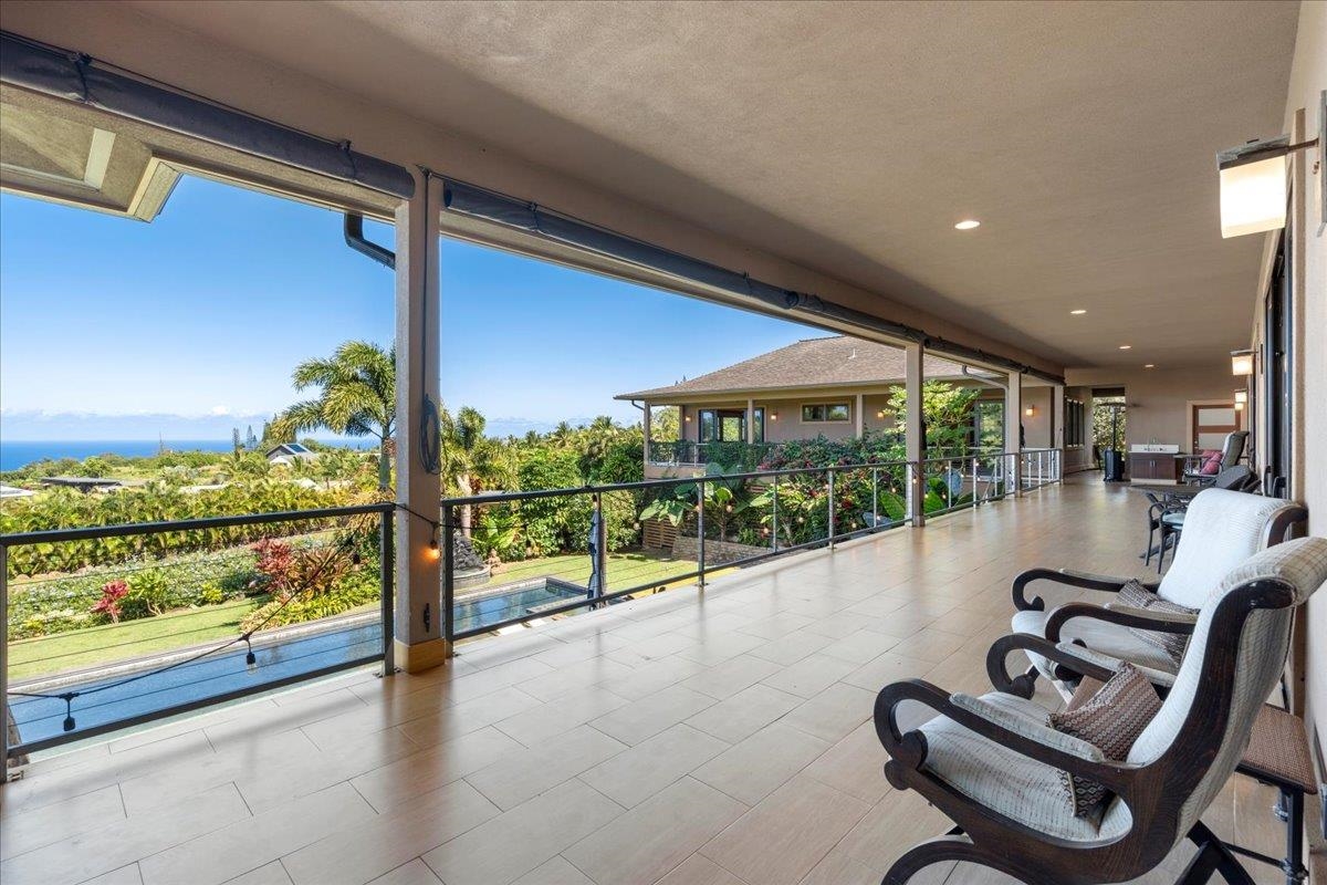 Exceptional Ocean Vistas amidst your tropical paradise estate on Maui's famed North Shore. Affectionately coined, "Hale O Peahi" this expansive custom crafted estate offers unlimited potential on a seamless level on an open facing lanai that flows out to the like-new saline pool and spa. Nestled in the highly desirable and exclusive Peahi Hui Land Subdivision on Maui's breathtaking North Shore. This expansive single-family residence offers a tranquil, elevated retreat on a generous 2-acre estate blessed with stunning ocean and mountain views from this exceptional gated estate.Hale O Peahi offers sophisticated single-level living with exceptional privacy and views. Boasting 3,576 sq ft of living space, the home features 4 bedrooms, 2.5 baths, and “pod” style architecture interconnected by covered breezeways and an expansive covered 1576 sq ft lanai. The center pod includes the open-concept gourmet kitchen, dining, and living areas – all flowing seamlessly to the outside lanai. Plus a versatile room ideal for an office, gym, theater room, or guest suite. The master suite is elegantly tucked into its own wing, offering sweeping ocean and mountain views The luxurious spa-style bathroom has a vibroacoustic therapy deep soaking spa tub, and just outside is a luxurious tropical shower. The bathroom is a generous open area featuring a large walk in closet, perfectly situated near the laundry room. The guest wing features two generous guest suites, each with expansive walk-in closets, and a well-appointed spacious bathroom. The guest wing provides comfort and privacy, with open lanai views to the ocean and the pool. Designed for effortless living, the home features 50+ smart lightbulbs and Alexa hubs, giving you full voice-activated control of the lighting in every room. Step outside to your own private oasis, featuring a heated salt-water lap pool with motorized cover, a jetted spa, and a bubbling fountain–perfect for relaxation or entertaining. The fully fenced grounds showcase lush Zoysia lawns, a raised-bed garden, mature tropical fruit trees, and prolific apple bananas, offering the delight of fresh-picked fruit anytime. A quarter-acre of pasture with two charming resident goats, this property captures the essence of country living. Enjoy prime potential for a 1,500 sq. ft. second dwelling, or envision an AG barn with a second story to create expansive, flexible living or storage space. Practical amenities include a workshop/garage, storage space, a grid-tied solar PV system with Tesla battery backup, and a Solar-plus-storage setup for energy efficiency. With its carefully curated finishes, open layout, and thoughtful integration of indoor-outdoor living, this North Shore Maui hideaway captures timeless elegance, modern sustainability, and private island charm. Don't miss these Stunning Triple Blue Views! Drop in and experience your special piece of paradise.