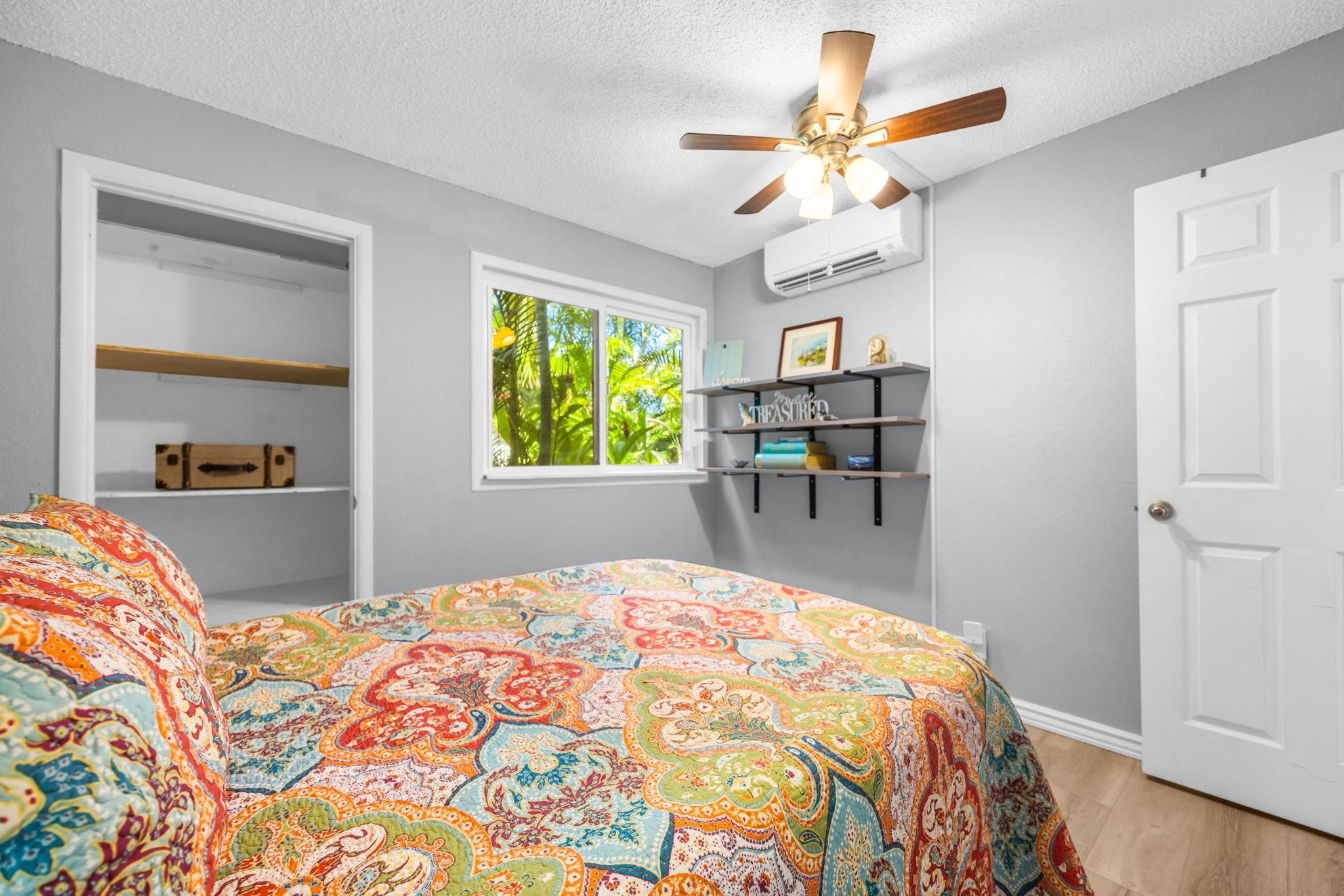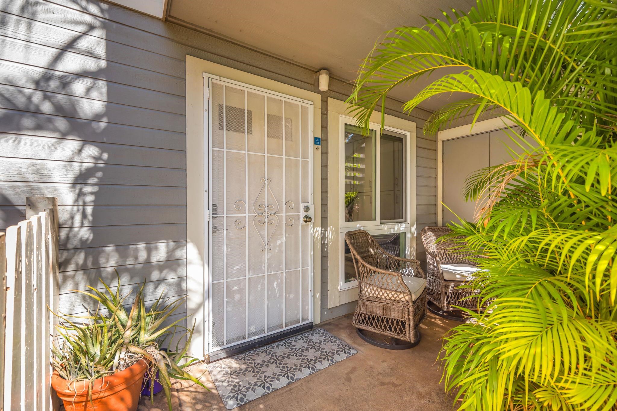 Don't miss this opportunity for a very private ground floor unit in Building #36! This remodeled 2-bedroom, 1.5-bath home features an owned 9-panel photovoltaic system to lower your electric bills, a fully remodeled kitchen with wall to wall soft-close cabinets, and an updated 1.5 bathroom with a walk-in shower. The living room showcases a built-in entertainment wall system, coastal wood accent wall, and sliding glass door with built-in blinds. Both bedrooms and the living area have split air conditioning, and the primary bedroom boasts a walk-in closet. The unit is painted in soft grey and white tones and includes a spacious yard with a privacy fence and tropical plants, perfect for outdoor living and entertaining. The secure outdoor closet provides even more storage for the unit. There is one assigned parking space (#675) with visitor parking nearby. Conveniently located on the ocean side of Kihei Villages, you’re just minutes from the local Farmer’s Market, Kihei Canoe Club, and Sugar Beach. Act fast–this unit won't last long!