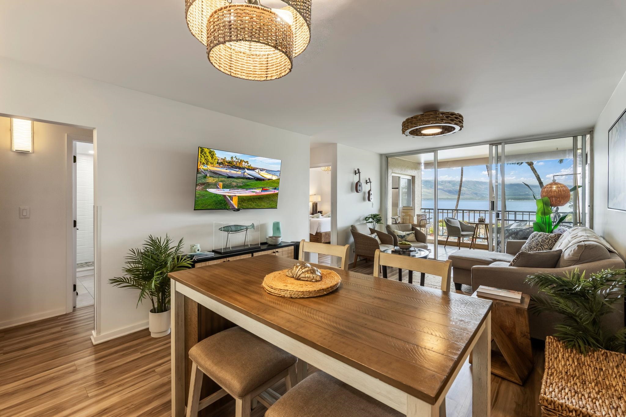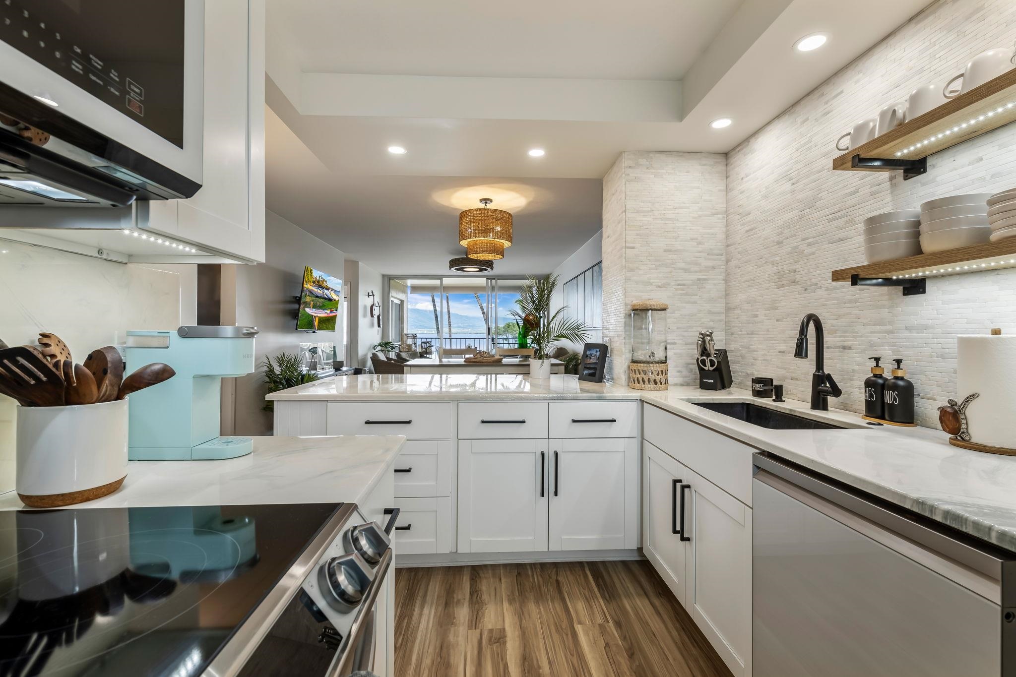 Indulge in breathtaking ocean and mountain vistas from this HOTEL-ZONED modern oceanfront condo in Maui. Graced from floor to ceiling with a custom remodel in 2023, this luxurious two-bedroom, two-bathroom oasis features exquisite lighting, faux wood flooring, and a fully equipped kitchen perfect for entertaining. Complete with top-notch appliances and furnishings, it’s no surprise this unit boasts exceptional reviews from guests. Menehune Shores provides a range of amenities such as an on-site restaurant, rooftop patio with barbecue facilities, a heated pool, board storage, shuffleboard, and well-maintained grounds. Enjoy serene views of a traditional Hawaiian fishing pond right outside your balcony offering a peaceful escape and water activities for everyone to experience. Embrace the quintessential Hawaiian lifestyle and book your private showing today.