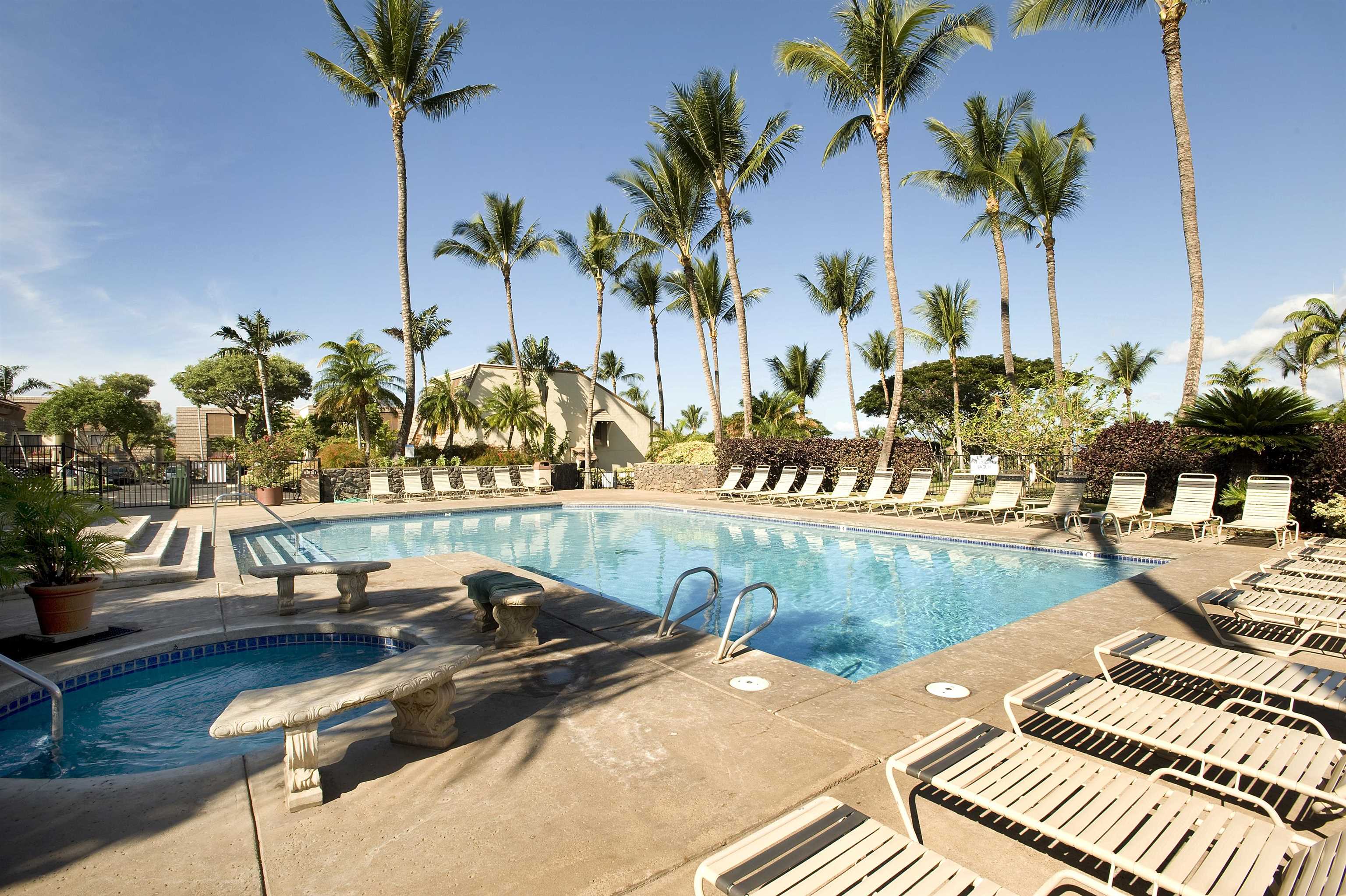 Welcome to Maui Kamaole, one of South Maui's most sought-after resort communities. Set on 23 acres of beautifully maintained tropical grounds, this low-rise complex offers a rare sense of privacy, space, and serenity in an unbeatable Kihei location-just moments from Wailea and some of the best beaches on Maui. This 2-bedroom, 2-bath townhouse-style condominium is perched above the front pool, offering a relaxing vantage point with ocean views and lush landscaping as the backdrop. You are a short walk to a sandy beach and the Kihei boat ramp, where you can launch for a snorkeling trip to Molokini. The open layout, generous lanais, and island breezes create a true indoor-outdoor living experience that captures the essence of Maui. Maui Kamaole is known for its exceptional amenities, including two resort-style pools, two hot tubs, two tennis courts, BBQ stations, and dedicated owner storage for kayaks and paddle boards-perfect for those who embrace the Maui lifestyle. Nearby, enjoy world-class dining, shopping, golf, and endless recreational opportunities along the Wailea and South Kihei coastline. Currently, the complex is zoned A-1. This condo is ideally located! Don't miss this opportunity!