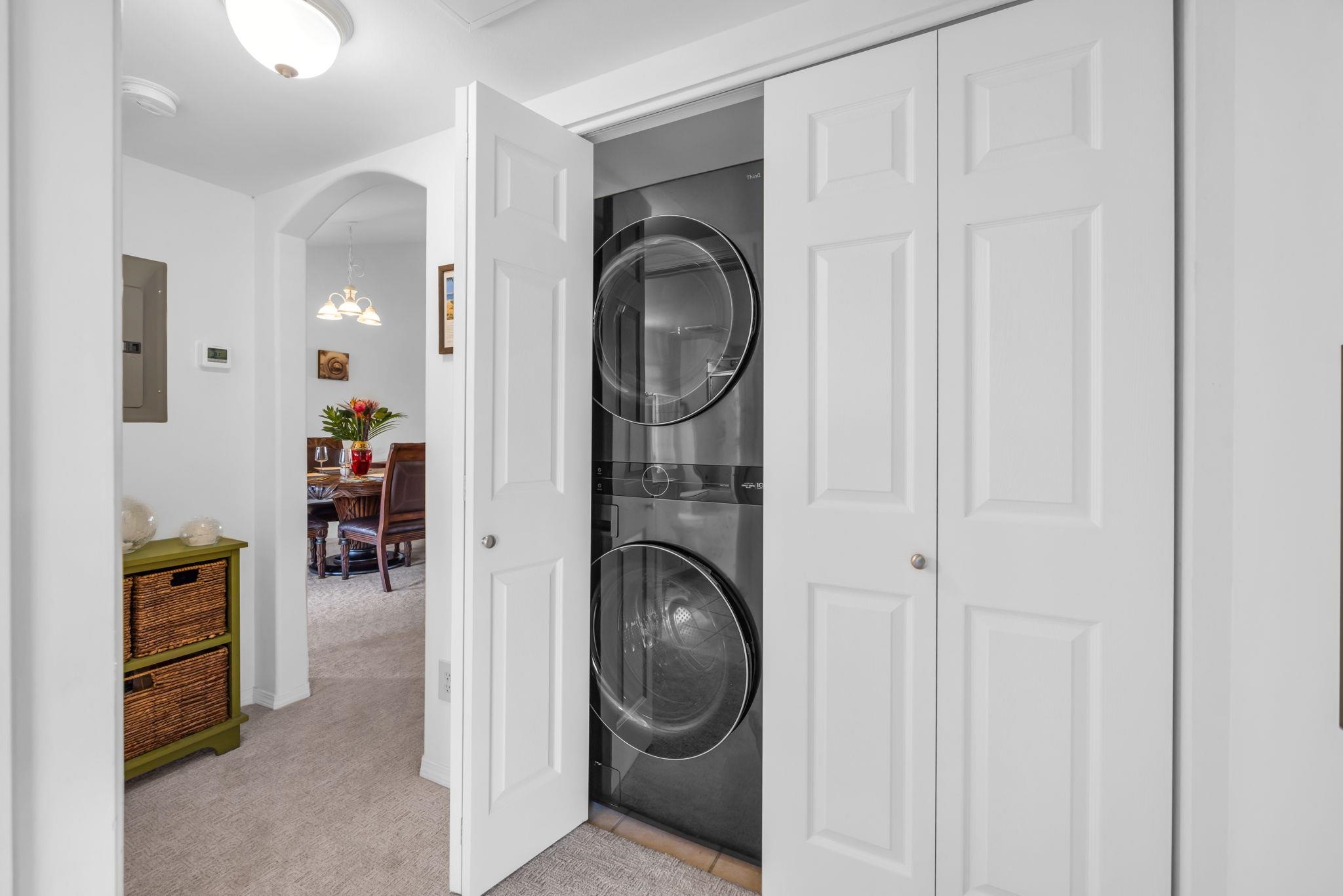 This beautifully maintained, fully furnished, and move-in ready condo features the largest 2-bedroom floor plan in Kai Makani and is located in one of the community's most desirable buildings. Building 32 is known for its exceptional landscaping, peaceful setting, and the rare advantage of having no cars parked in front-offering a serene and welcoming entry. An added bonus is the highly sought-after separate 6X8 storage locker, unit #308, located within the complex, offering valuable extra space. This bright corner unit captures refreshing North-facing trade winds and includes brand-new carpet, vaulted ceilings, granite countertops, and a spacious open layout that flows naturally from the kitchen and living area to the large covered lanai. Both bedrooms are generously sized with large walk-in closets, and each has access to its own full bathroom. The primary suite opens directly onto the lanai and features double sinks with granite countertops and a jacuzzi-sized soaking bathtub. Lightly lived in by owners who visit only a few times a year, the home includes like-new appliances, a recently replaced water heater, and washer/dryer plus a brand new refrigerator. An added bonus is the highly sought-after separate storage unit located within the complex, offering valuable extra space. Kai Makani spans 9 beautifully landscaped acres and offers resort-style amenities including a saline heated pool, jacuzzi, fitness center, and multiple BBQ areas. Two conveniently located parking stalls are included. Just across the street is Sugar Beach, Maui's longest sandy shoreline - perfect for morning walks, water activities, and breathtaking sunsets. A prime opportunity to enjoy spacious living in one of South Maui's most coveted beachside location. Turnkey furnished minus a few staging items.