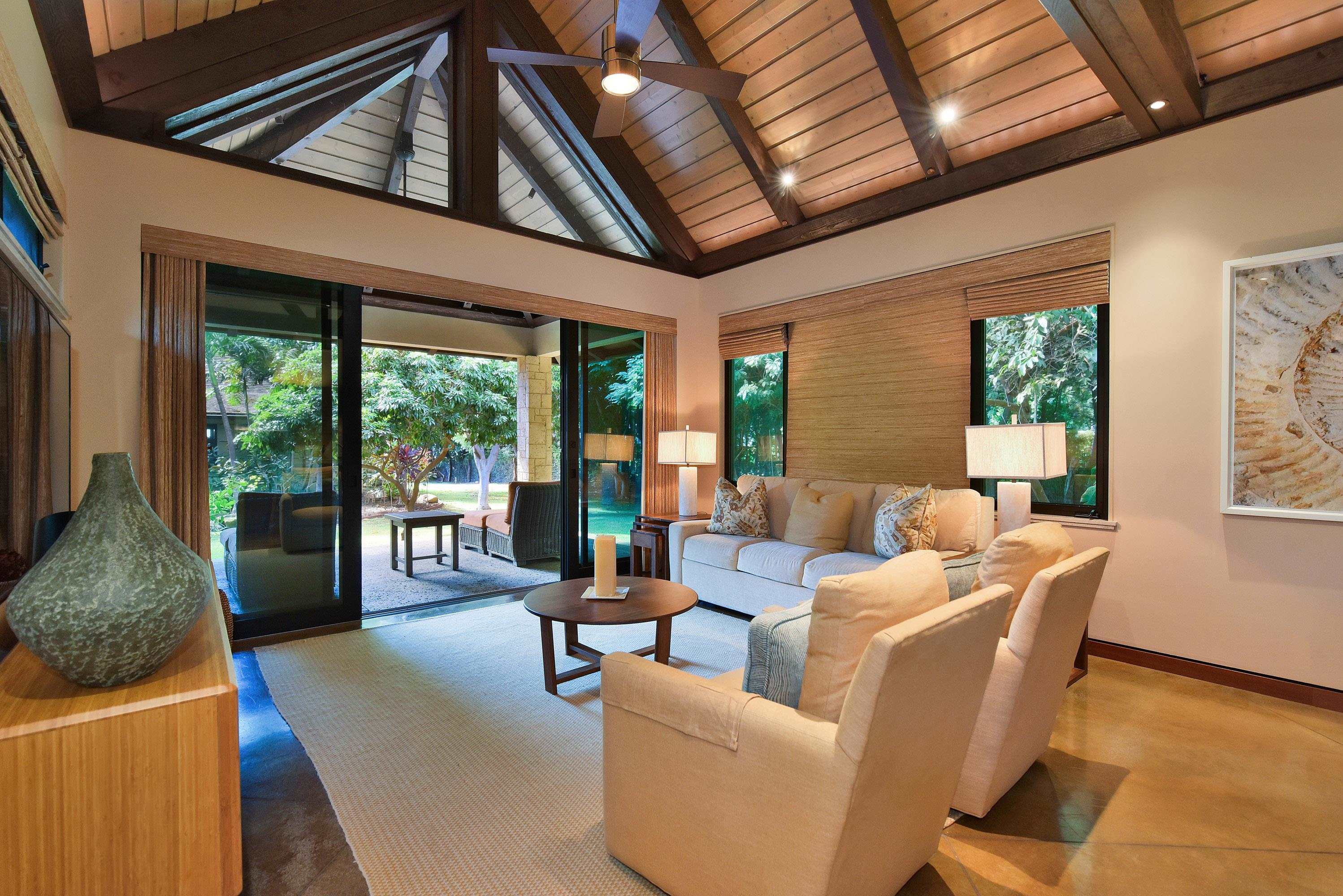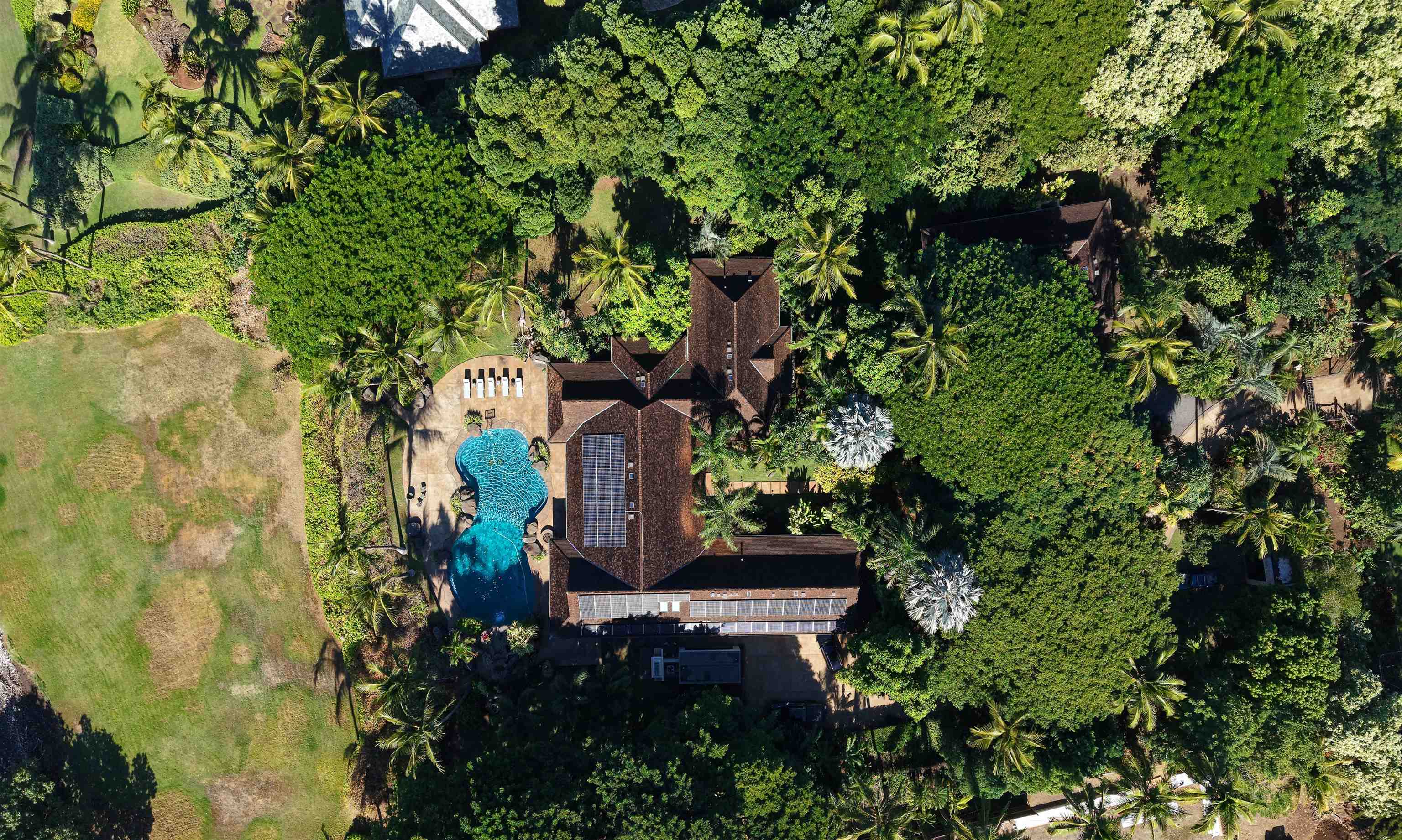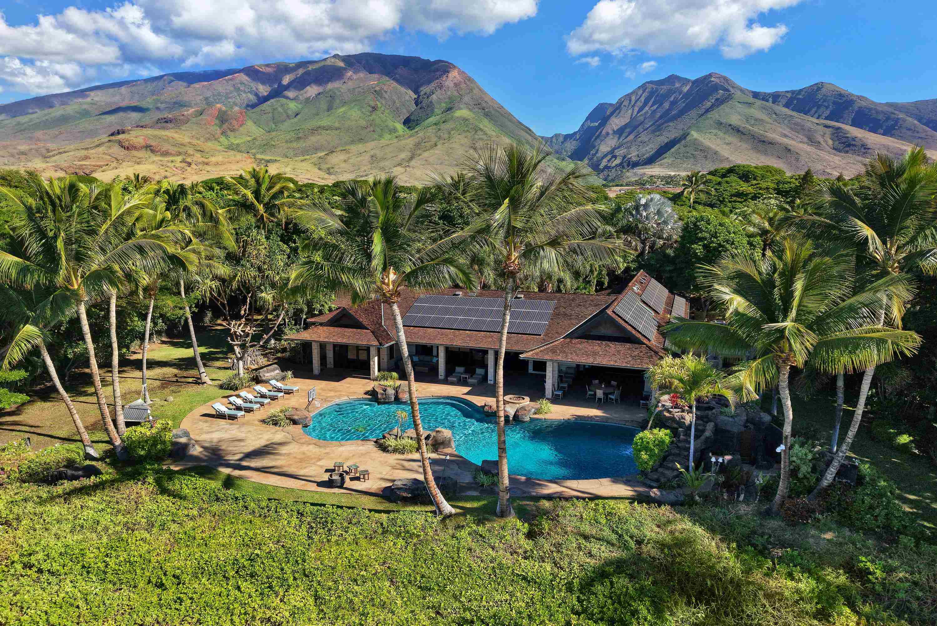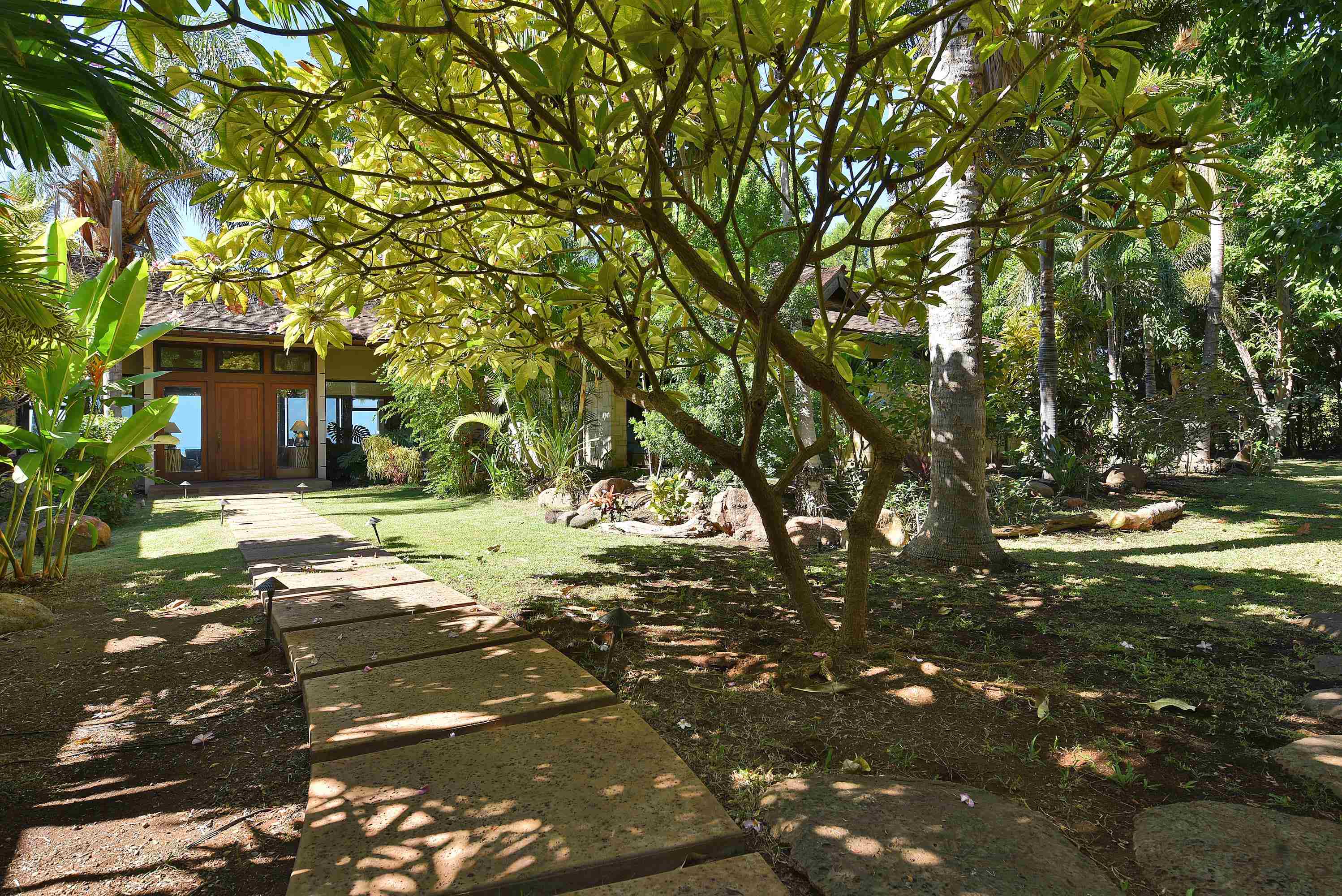 Discover an unparalleled sanctuary on the pristine shores of West Maui. This extraordinary, private estate is one of just a few properties nestled within a small, exclusive oceanfront gated community. Encompassing two lush, landscaped acres, this rare offering provides the ultimate in privacy, luxury, and seamless indoor-outdoor island living. The main residence is a serene sanctuary designed to embrace the essence of aloha featuring three spacious bedrooms and three and a half baths. Cathedral ceilings soar above polished concrete floors, creating an expansive, airy ambiance that captures the ocean breeze. The gourmet kitchen, a chef’s dream, is equipped with high-end appliances, perfect for entertaining. Every bedroom serves as a private haven, boasting its own en-suite bathroom and a uniquely Hawaiian luxury: a private, enclosed outdoor shower for a truly sensory experience with nature. Step outside to a spectacular covered exterior lanai, an extension of the living space designed for relaxation and entertaining. The large, resort-style pool, complete with waterfall, is the centerpiece of the outdoor oasis, inviting endless afternoons of sun-soaked enjoyment against the backdrop of the Pacific Ocean. A separate, charming two-bedroom, one-bathroom ohana offers comfortable accommodations for guests or extended family. The estate is as functional as it is beautiful. A gated driveway entrance ensures security and exclusivity. Eco-conscious features include a photovoltaic system with Tesla battery storage, ensuring sustainable and reliable power. A three car garage and separate storage areas provide ample space for autos and all your kayaks and and other ocean toys! Conveniently located just south of Lahaina this estate offers seclusion without sacrificing convenience. Steps away from the vibrant Olowalu farmers market, the historic Olowalu General Store, and the famed culinary delights of Leoda’s Kitchen and Pie Shop. This is more than a home; it’s a legacy property, offering a private, luxurious slice of Hawaiian paradise. Schedule your private showing today and step into the lifestyle you deserve.