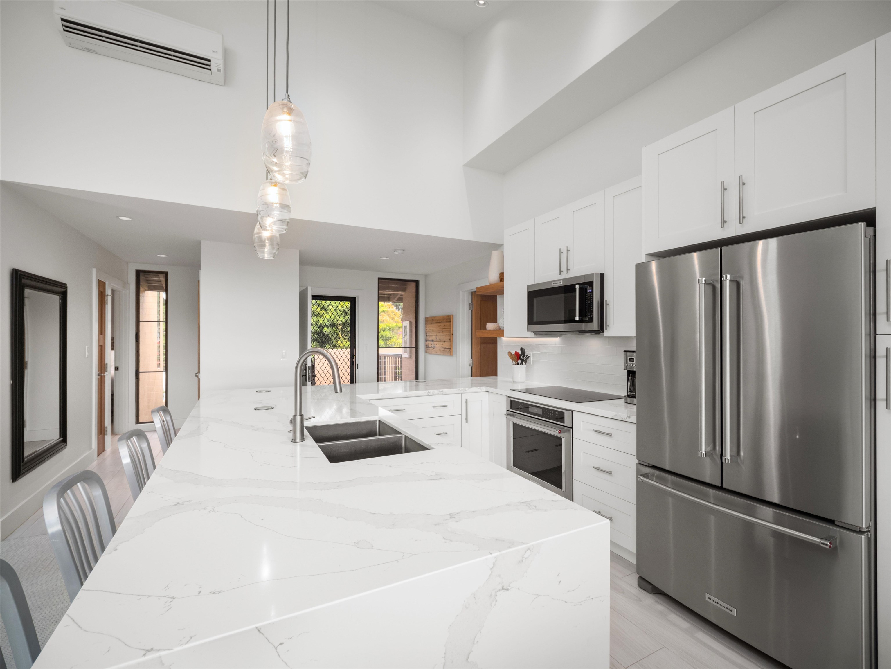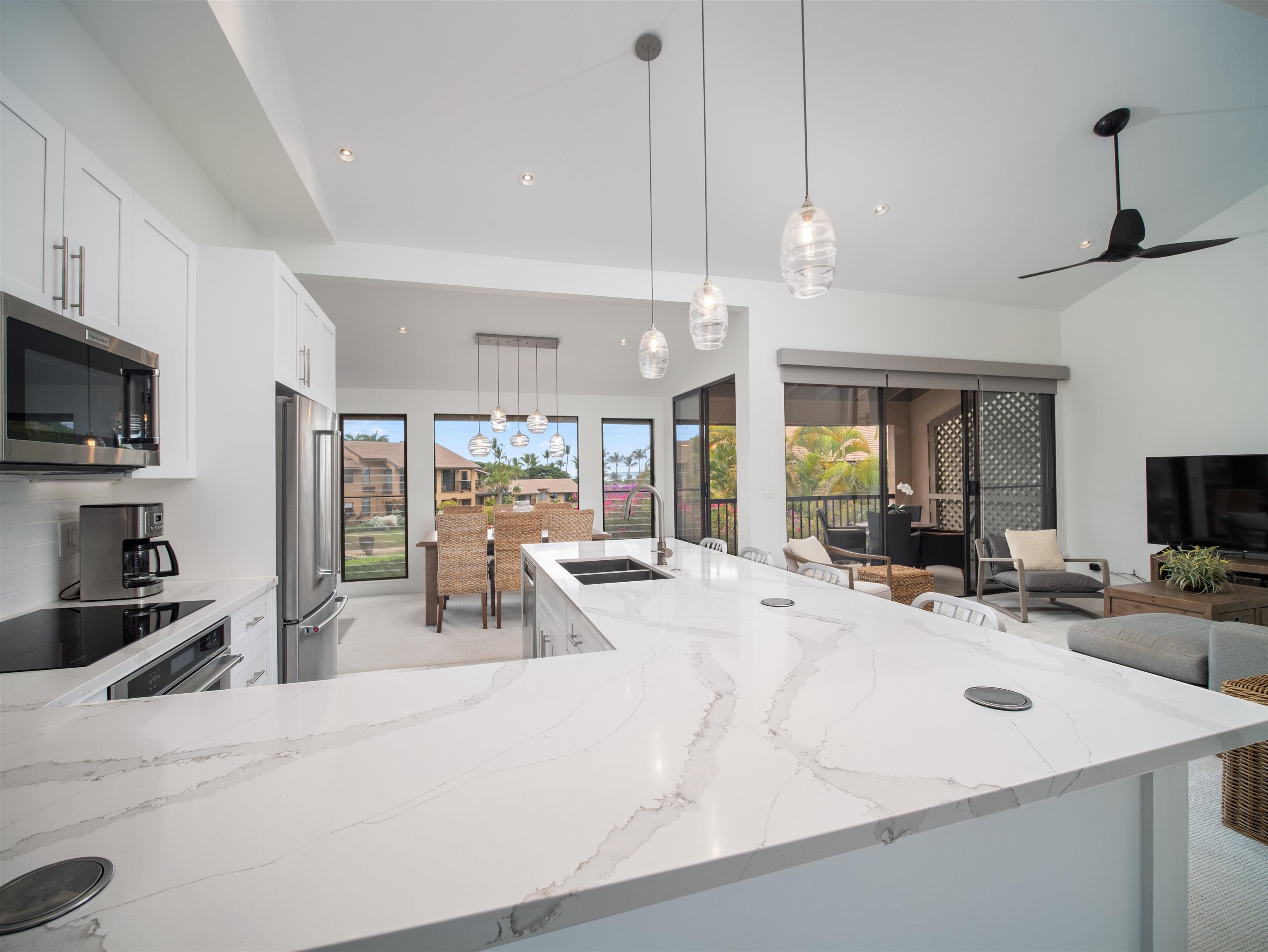 Absolutely stunning and meticulously remodeled from top to bottom, this luxury retreat delivers a rare combination of tasteful modern design, exceptional craftsmanship curated by ADX Construction, and undeniable wow factor. Wailea Ekahi 41C is a 1,172 sq. ft. top-floor single-level, corner residence featuring 2 bedrooms and 2 bathrooms. Expansive vaulted ceilings in the kitchen, living room, and primary suite enhance the bright, airy ambiance throughout. The open-concept chef’s kitchen is anchored by a striking waterfall-edge quartz island and accented with artisan pendant lighting, stainless steel appliances, and solid white oak custom doors throughout. Spa-like elegance awaits in both bathrooms, offering rainfall showerheads, high-end fixtures, and designer finishes. Enjoy the rare luxury of three private lanais with sweeping views of Haleakala, Kaho‘olawe, Molokini Crater, and the Pacific Ocean. Seamless indoor-outdoor living is enhanced by large sliding glass doors in every room, welcoming abundant natural light and gentle Maui breezes. Oceanfront Wailea Ekahi is a highly sought-after, low-density 35-acre community renowned for its lush tropical landscaping and direct access to Keawakapu Beach. Residents enjoy four swimming pools, a beachfront pavilion, pickleball courts, and a brand-new fitness center. Pet-friendly and ideally located just minutes from The Shops at Wailea, luxury resorts, championship golf, and five-star dining, this property offers the ultimate blend of lifestyle and location. This is more than a home–it’s a legacy in paradise.