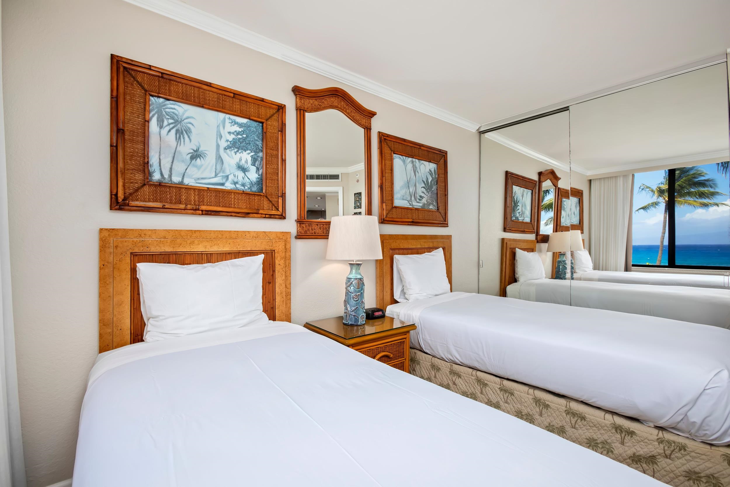 Kaanapali Shores 304 - If you are looking for a luxurious oceanfront condo at a price point from four years ago, you’ve found it! From your private lanai, you will enjoy watching and hearing the waves break. If you love the idea of being lulled to sleep by the sound of the ocean, you can experience that from either of your bedrooms. When it comes to luxury, the attention to detail is exquisite. This renovated condo features fine crown molding throughout. All interior rooms have new six-panel doors. The kitchen counters and backsplash are finished with fine sea-green marble, complemented by a stunning panel featuring beautiful wild macaws. The appliances are all high-quality stainless steel. Both bedrooms offer breathtaking ocean views. As a bonus, the primary suite also features a private lanai, perfect for enjoying your morning coffee. The primary bathroom, as you might expect, is luxuriously appointed with quality cabinetry, stunning granite countertops with double sinks, and an oversized walk-in shower. This is the best buy on Maui for a high-end oceanfront condo. Contact your favorite Realtor for more details and to arrange a showing today! This popular 10-acre condominium hotel boasts two swimming pools, two spa pools, saunas, a fitness center, two tennis courts, and a Pickleball court. You can relax at the poolside restaurant for breakfast, lunch, or dinner. There are convenient gift shops, a food pantry store, and a beauty salon located on the premises. This is a world-class location with high vacation rental potential. Lay back and make Kaanapali Shores your Hawaiian getaway! This property has a history of high rental occupancy and income for owners who want to participate in vacation rentals. Maintenance fees include all utilities, such as electricity (central A/C), water, sewer, trash, Wi-Fi access, cable TV, and local phone service, as well as storm, flood, and general liability insurance. The maintenance fees also include a monthly contribution to the Capital Reserve Fund for major building components, such as roofs, painting, pools, spas, and other amenities.