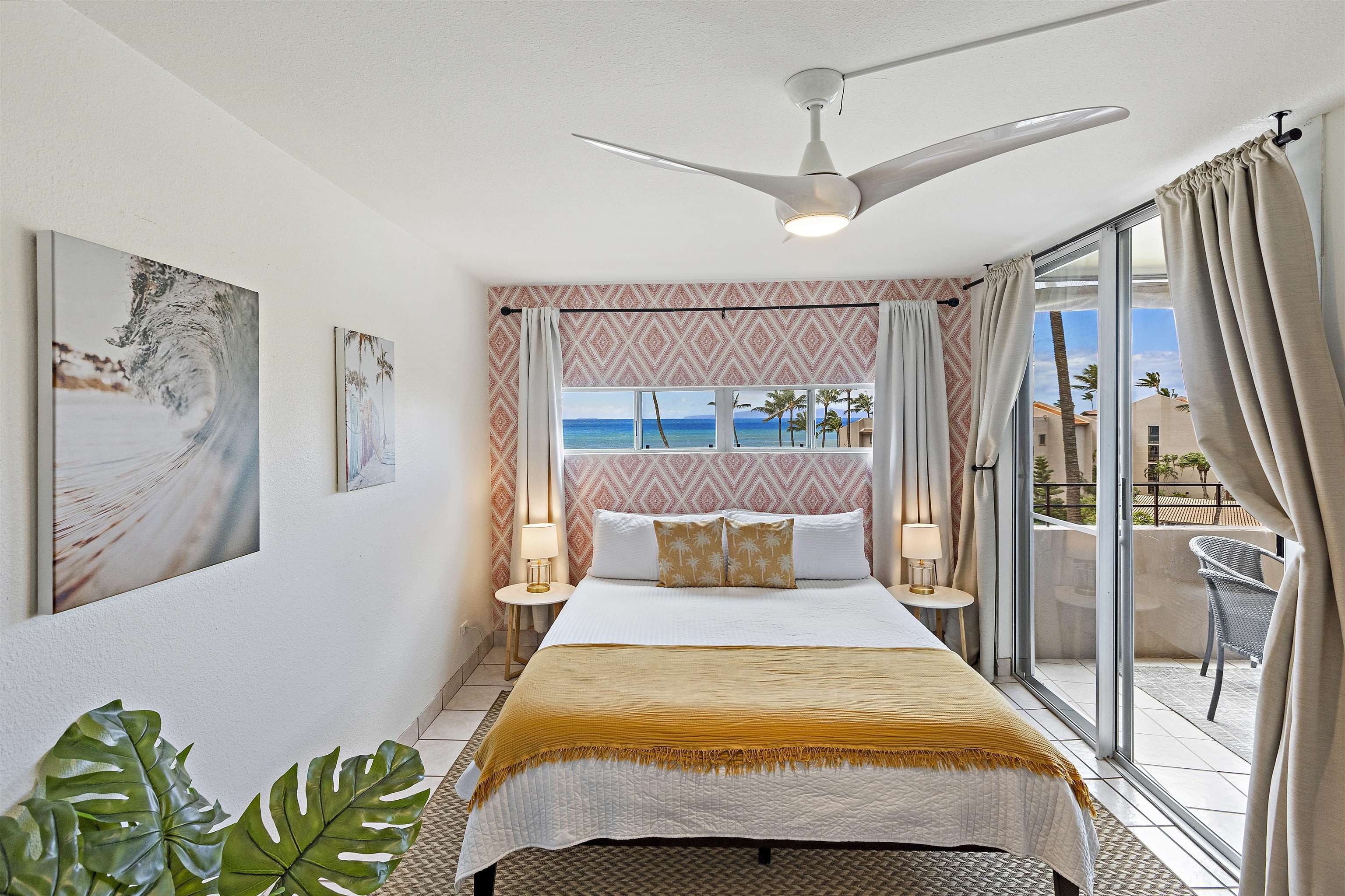 Highly sought-after oceanfront 5th-floor condo in one of Maalaea’s most desirable buildings. Enjoy spectacular ocean and outer-island views from your private covered lanai. Beautifully remodeled in 2022 with new kitchen cabinets and countertops, updated bathroom vanities, and split-system A/C in all rooms. Tile flooring throughout extends seamlessly to the spacious lanai. Offered fully furnished with assigned parking. Ideally located just a short walk to the beach, Maalaea Harbor, Maui Ocean Center, shops, and restaurants.