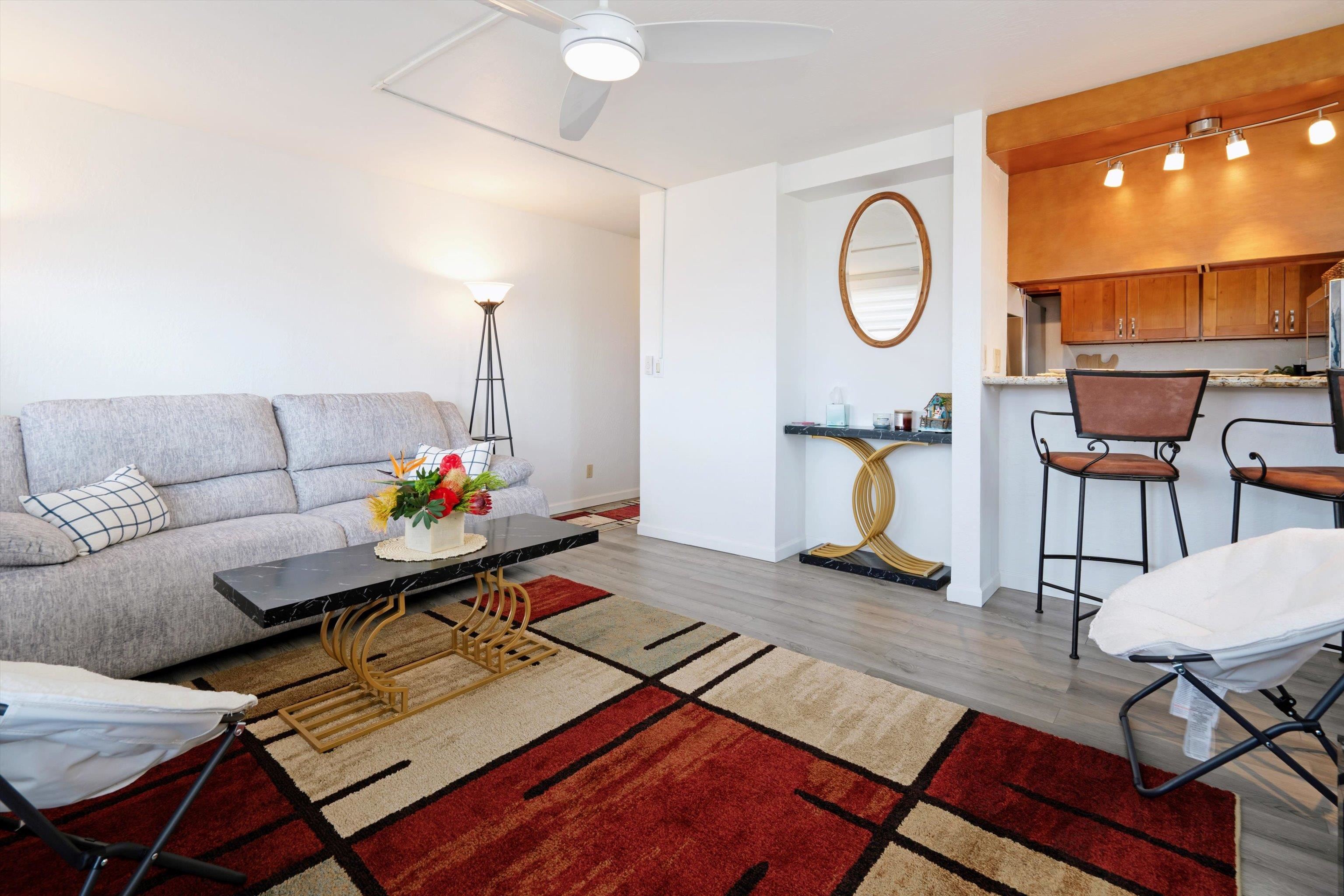 Spectacular Ocean View Maui Condo \ Fully Furnished 1BR/1BA \ Rare Wailuku Manor Offering Wake up to breathtaking North Shore ocean views from this beautifully upgraded 1-bedroom, 1-bath condo in Wailuku Manor, a true hidden gem where units are rarely available. This 560 sq. ft. residence offers a unique and elevated vantage point with sweeping vistas of the Pacific Ocean, the West Maui Mountains, and majestic Haleakala–all visible from the unit. Conveniently located near the hospital, shopping, government buildings, restaurants, and the airport, this condo delivers the perfect balance of island serenity and everyday accessibility. Built in 1981 and tastefully updated, the home features warm wood cabinetry, granite countertops, and a well-equipped kitchen with range, refrigerator, microwave, disposal, and an in-unit washer and dryer. The first-floor entrance allows for no-stair access, while the sloped setting keeps the covered lanai elevated–ideal for enjoying the views and trade winds. Additional highlights include automatic blinds on the front picture window, one assigned parking space, and a thoughtfully designed layout. Offered fully furnished, this move-in-ready condo is an exceptional opportunity–whether as a primary residence, second home, or investment. With its unbeatable views, prime location, and limited availability, Wailuku Manor is a rare chance to own a true Maui hidden gem.