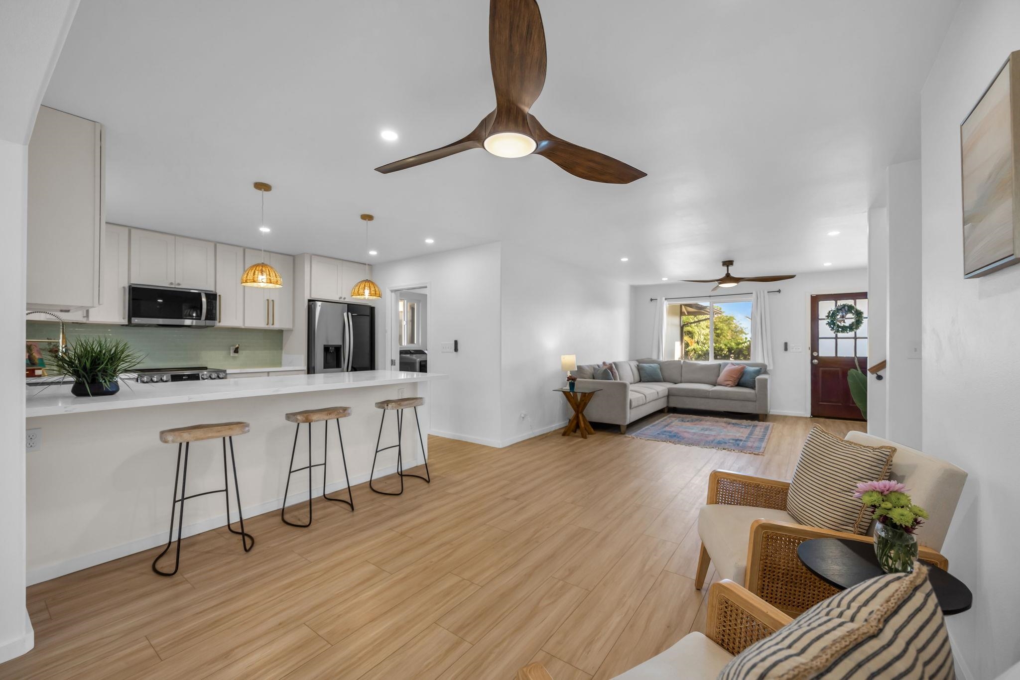 Welcome to 1395 Hiahia Street in Oceanview Estates on Maui’s North Shore. Located just one block from the beach and the iconic Sand Piles surf break, this home offers the rare opportunity to hear the waves crashing from your front door. Thoughtfully renovated in 2023, the residence showcases extensive updates including new flooring throughout, a fully remodeled kitchen, updated bathrooms, fresh interior paint, and modern finishes. The home is truly move-in ready for its next owners. A substantial addition in 2004 added approximately 740 square feet to the rear of the home, creating a highly flexible living space with its own private entrance, living area, bedroom, and bathroom–while still maintaining the ability to connect to the main home. Ideal for extended family, guests, or additional living space, this layout offers versatility that perfectly suits Maui living. Upstairs, the spacious primary suite features an attached lanai with beautiful ocean views. Check the surf conditions without leaving bed–just look out your window. The property includes multiple yard areas on both sides of the addition, along with a flat front yard, offering ample opportunity for landscaping or fruit trees. Waiehu’s ideal climate delivers refreshing tradewinds most days, and on calmer days, split AC in the main living area provides added comfort. Additional highlights include a large two-car garage and a separate laundry room located off the garage, offering valuable storage and functionality. This single-family home combines location, flexibility, and lifestyle–and must be seen in person to fully appreciate everything it has to offer.
