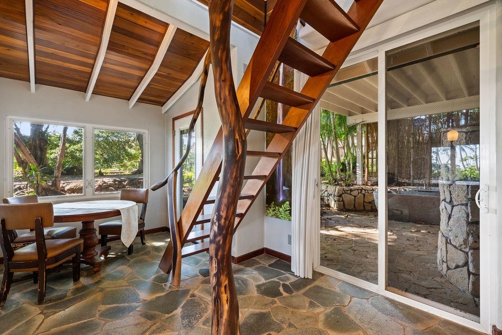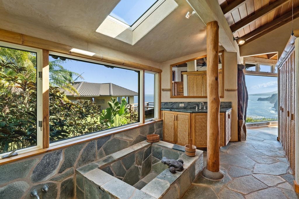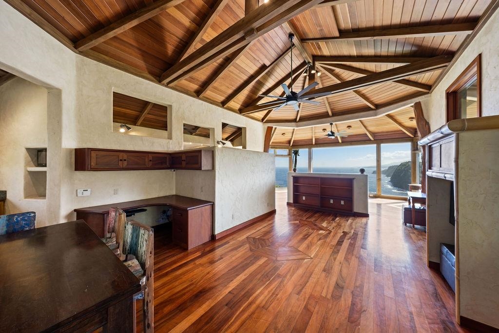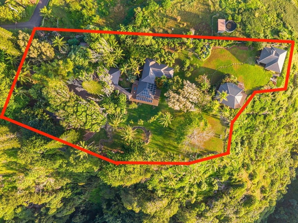 Located on Maui's North Shore and only a 30 min drive from the airport, this property offers a private oasis, irreplaceable natural resources, and panoramic ocean/coastline/waterfall views! This is a perfect generational estate, wellness retreat, or visionary compound! Come tour this double fenced private estate where you will walk through hand crafted 24 foot custom gates to find 6 permitted structures that blend Japanese, Hawaiian and Balinese architectural styles, a yoga studio, an office/garage, an infrared sauna and a custom loft. Take the stone walking path encircling the estate to explore the rainbow eucalyptus forest, paperbark tree grove, and the various trees (cherry, papaya, etc). With a wrap around driveway with parking for 20+ cars, this property is perfect for entertaining family and friends! This property has a 280 foot private well with county water rights, volcanic soil ideal for agriculture, and owned solar with commercial grade infrastructure making it a self-sustainable getaway! Seller has invested millions into the property for custom upgrades/improvements. Do not miss out on this unique property! Seller prefers to sell at 50 percent ownership.