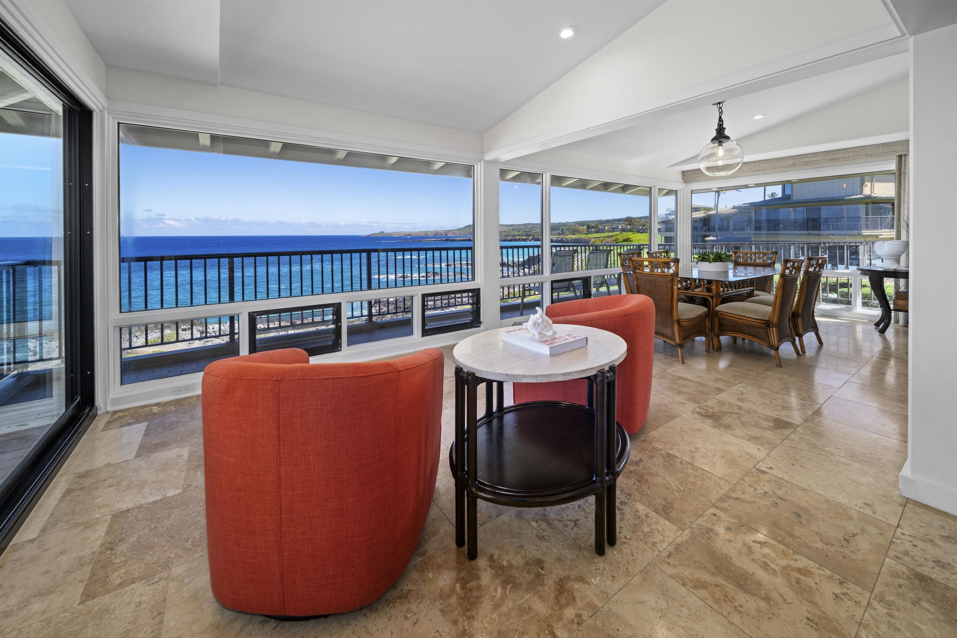 Situated along the Kapalua coastline, this oceanfront sanctuary sits in a premier front-row position offering panoramic views of the ocean and the outer island of Moloka’i, year-round sunsets, and a front-row seat to whale season. Inside, the villa has been thoughtfully and extensively renovated. The kitchen has been completely reimagined to open to the view, complete with designer cabinetry, stone countertops, premium appliances, and enhanced lighting. The open-concept living area flows seamlessly out to the ocean. Both bedroom suites are positioned to maximize comfort, each offering tranquil ocean vistas and updated bathroom suites. In front of the villa, the coastal trail winds along the coast, down to the sandy beach at Oneloa Bay. Nearby are the Ritz-Carlton, Kapalua and Montage Kapalua Bay along with an array of world class restaurants. The Kapalua Bay Villas is renowned for its low-density design, serene landscaping, and exclusive resort-style amenities, including three swimming pools, BBQ areas, and tennis courts. Move-in ready and exquisitely updated, Kapalua Bay Villa 30B3-4 offers the rare opportunity to own a remodeled, turn-key oceanfront residence in one of Maui’s most extraordinary coastal settings.