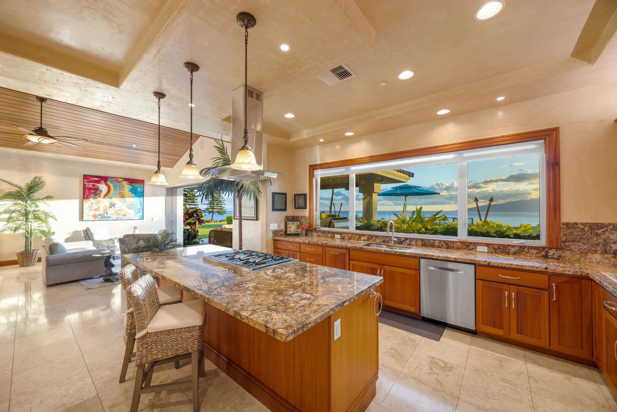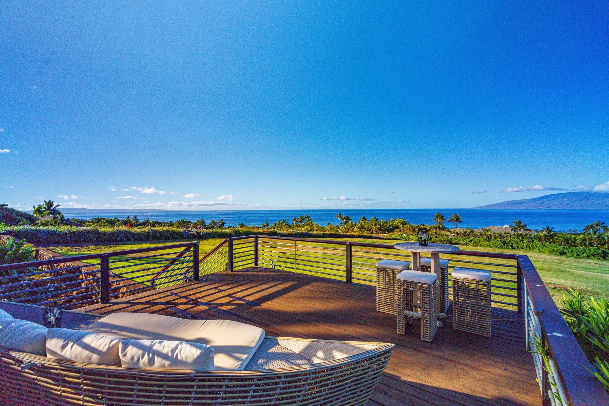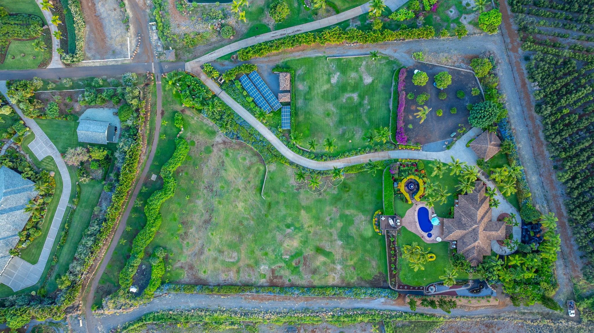 Nestled on what may be the finest parcel in all of West Maui, this expansive five-acre-plus sanctuary claims the premier position within Puunoa Estates. Thoughtfully designed landscaping combines with the property's naturally secluded setting to deliver complete seclusion. Within the exclusive, gated enclave of Puunoa only 24 estate properties exist, each spanning a minimum of five acres. The discerning owners who call Puunoa home have the means to reside anywhere globally, yet they've deliberately chosen this remarkable community. What draws them? An enviable lifestyle where perpetual summer weather meets effortless beach access, all framed by breathtaking vistas of the Pacific, neighboring islands, the West Maui Mountains, spectacular sunsets, and seasonal whale migrations. 67 Wili Okai Way stands apart with distinctive features rarely found among West Maui's current luxury offerings. The private entry drive makes a stunning first impression–majestic royal palms line the approach, framing spectacular mountain and ocean panoramas. An elegant water feature accented by tiki torches creates a welcoming threshold to this sophisticated single-story residence. The entire five-acre grounds showcase meticulous care, with indigenous flora, tropical plantings, and pristine emerald lawns throughout. The property's infrastructure allows for future expansion, including an ideal site for an Ohana cottage and a detached barn structure–both positioned to preserve the main residence's sweeping, uninterrupted views.
