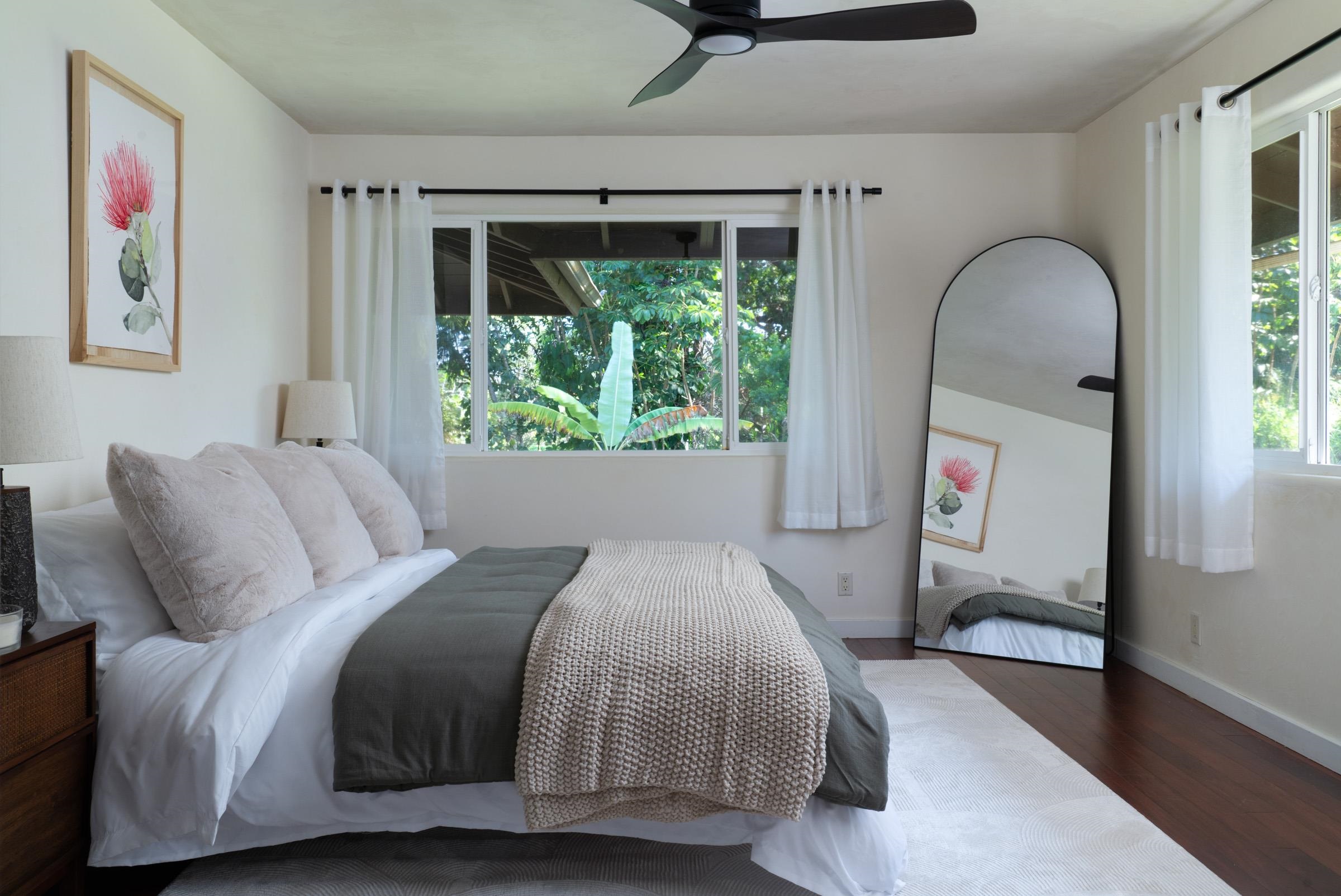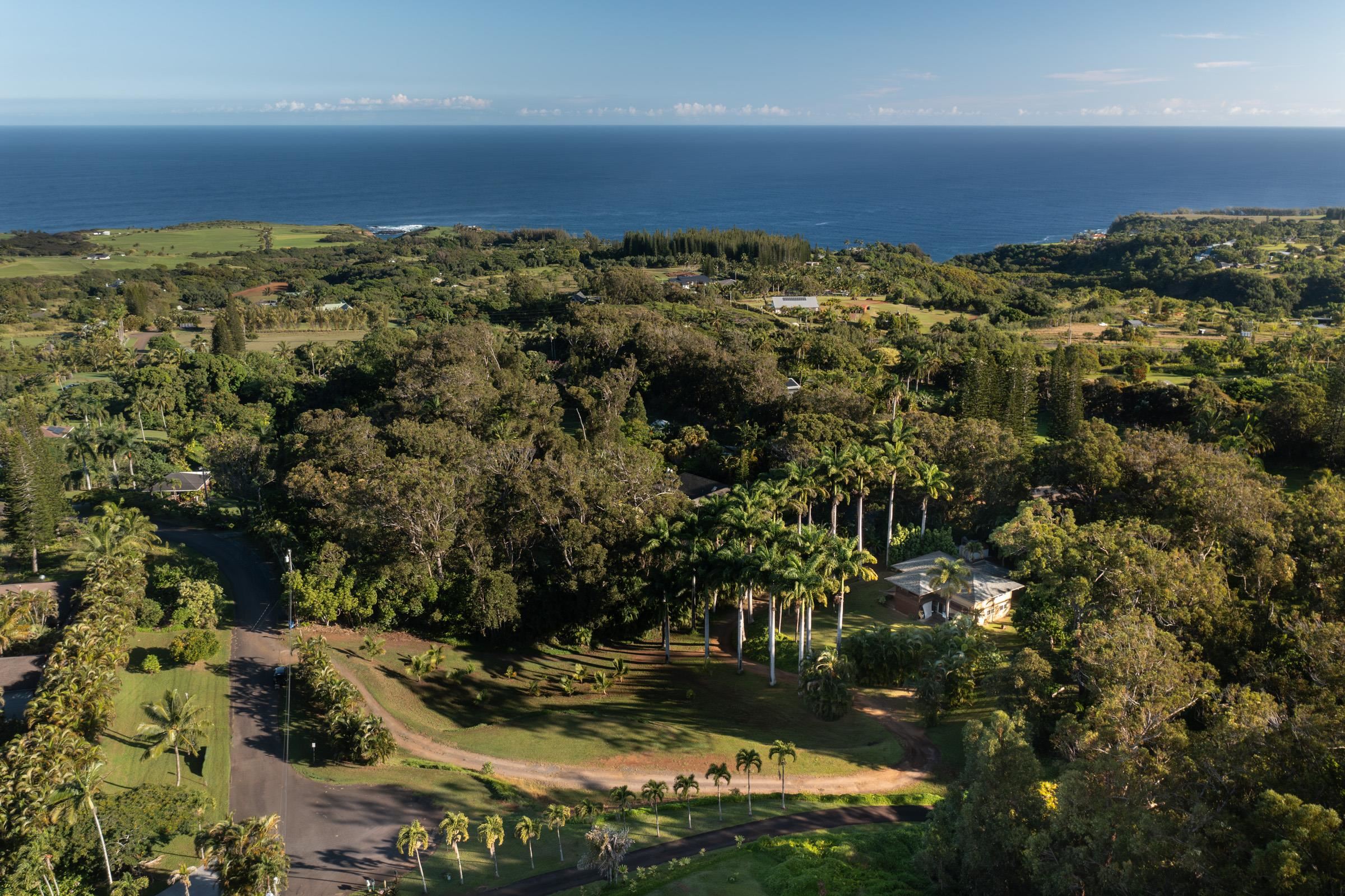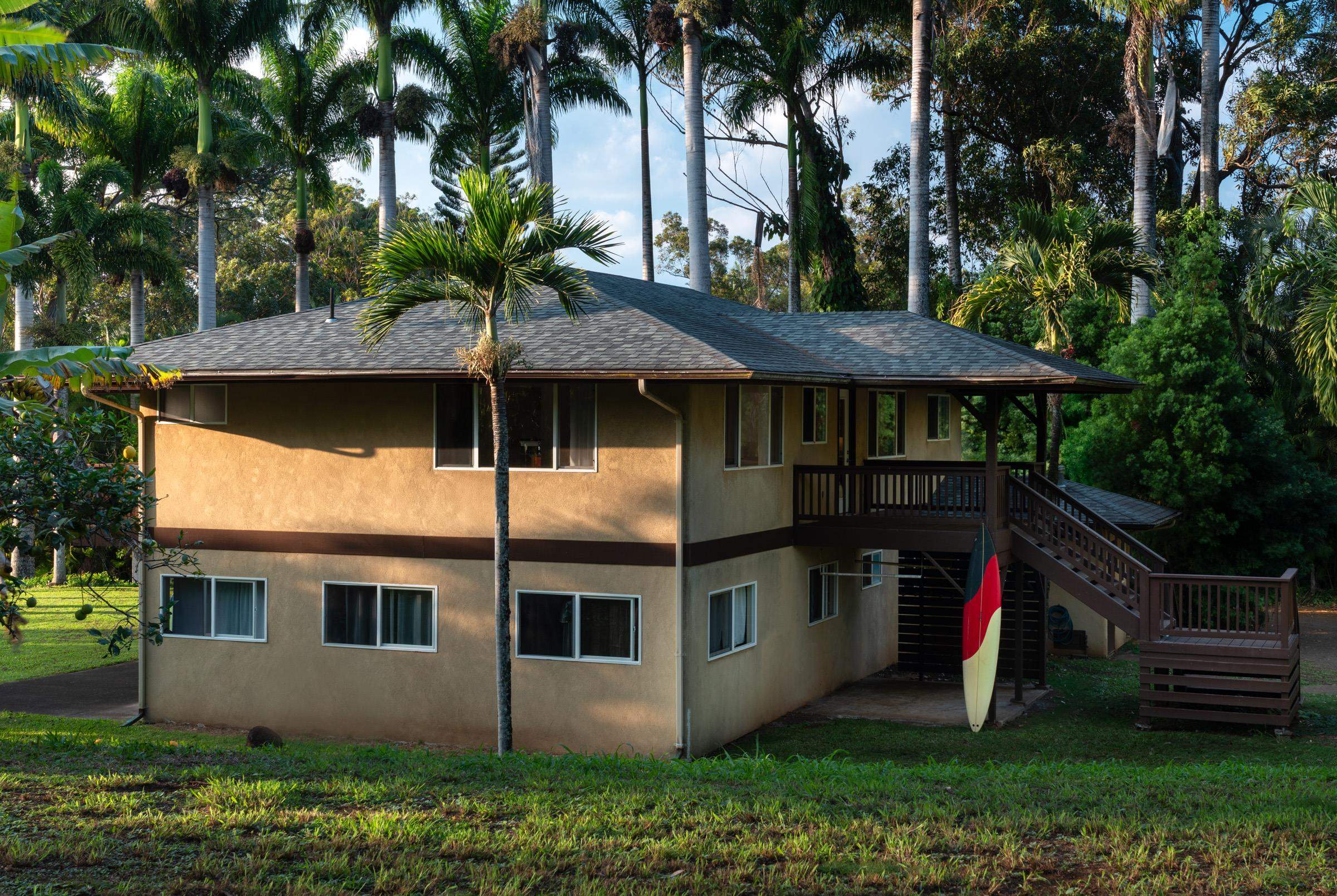 Spacious two-story home set on 2 acres, move-in ready and offering rental income potential and flexible living while you build your dream detached cottage! (Permits approved and ready to go), with CPR potential. In close proximity to Ulumalu Road and Hana Highway, this private property sits at the end of a cul-de-sac and is surrounded by other two-acre parcels. The long, private driveway is lined with majestic old-growth royal palms, an irreplaceable and striking feature that creates a grand sense of arrival. The single-family residence features 3 bedrooms and 2 bathrooms upstairs, an open floor plan, and seamless indoor-outdoor living and dining spaces. The large kitchen includes bar seating, custom hardwood cabinetry, granite countertops, a gas range, generous storage. Downstairs offers additional living spaces. Recent upgrades include a brand-new roof, stucco exterior, and plaster interior. Enjoy expansive views of the entire property from every window, porch, and lanai. Conveniently located 10 to 15 minutes from Paia Town, Ho‘okipa, and world-class surfing, windsurfing, and kiting beaches, and less than 10 minutes from Haiku Town Center, restaurants, shops, gyms and more. This private paradise is connected to county water and electricity and features mature fruit trees with endless possibilities. No HOA fees. Schedule your private showing today.