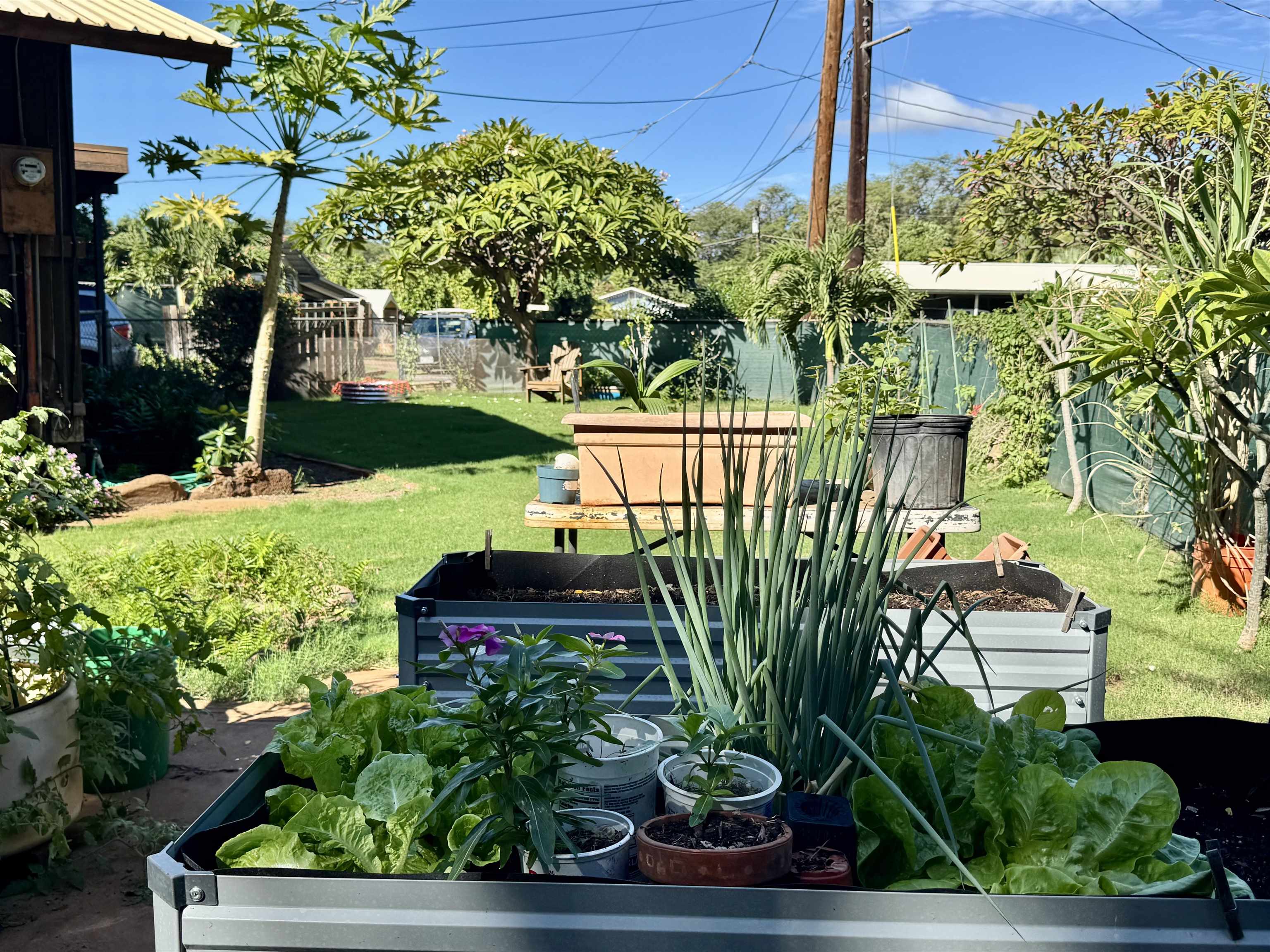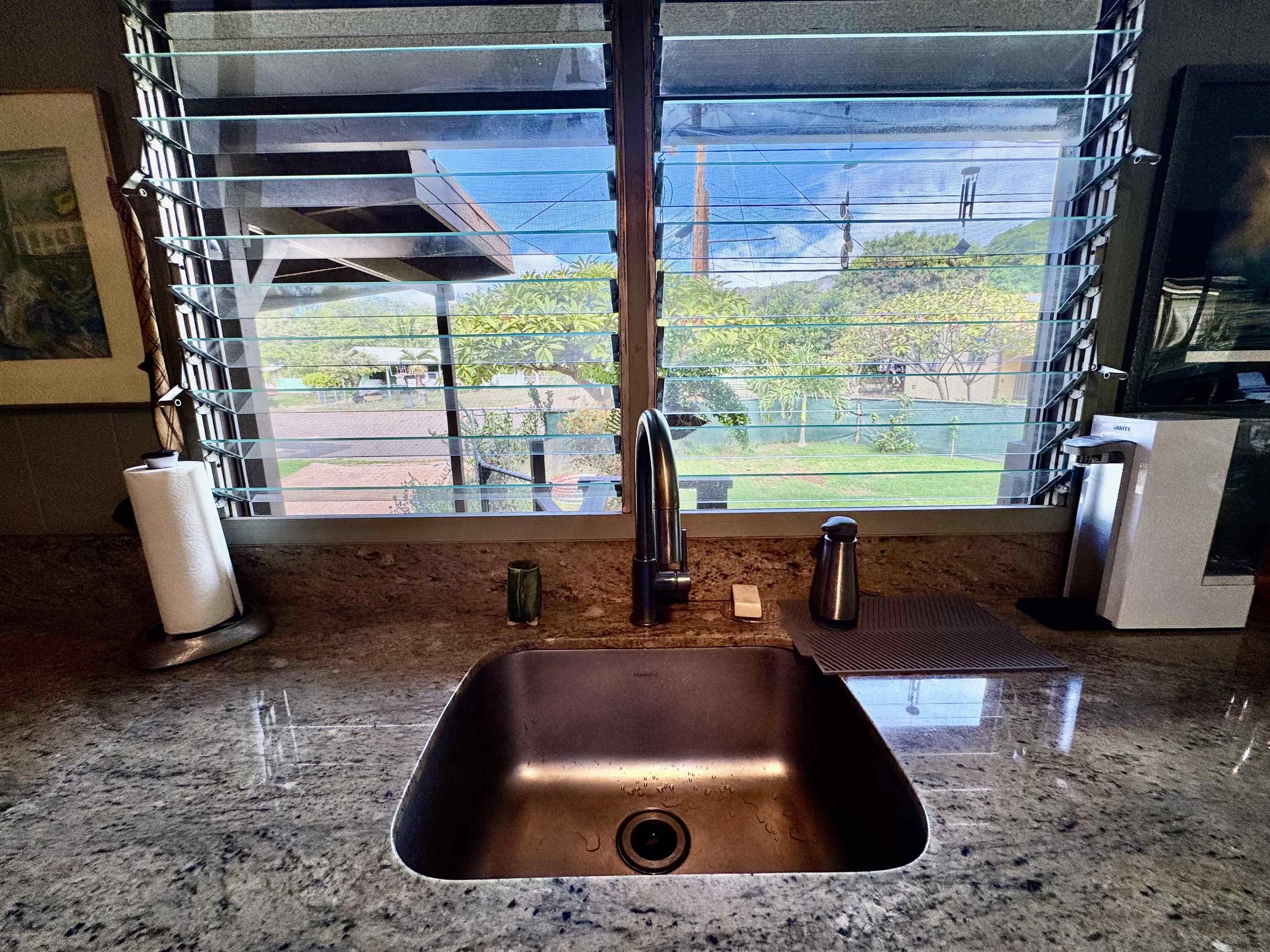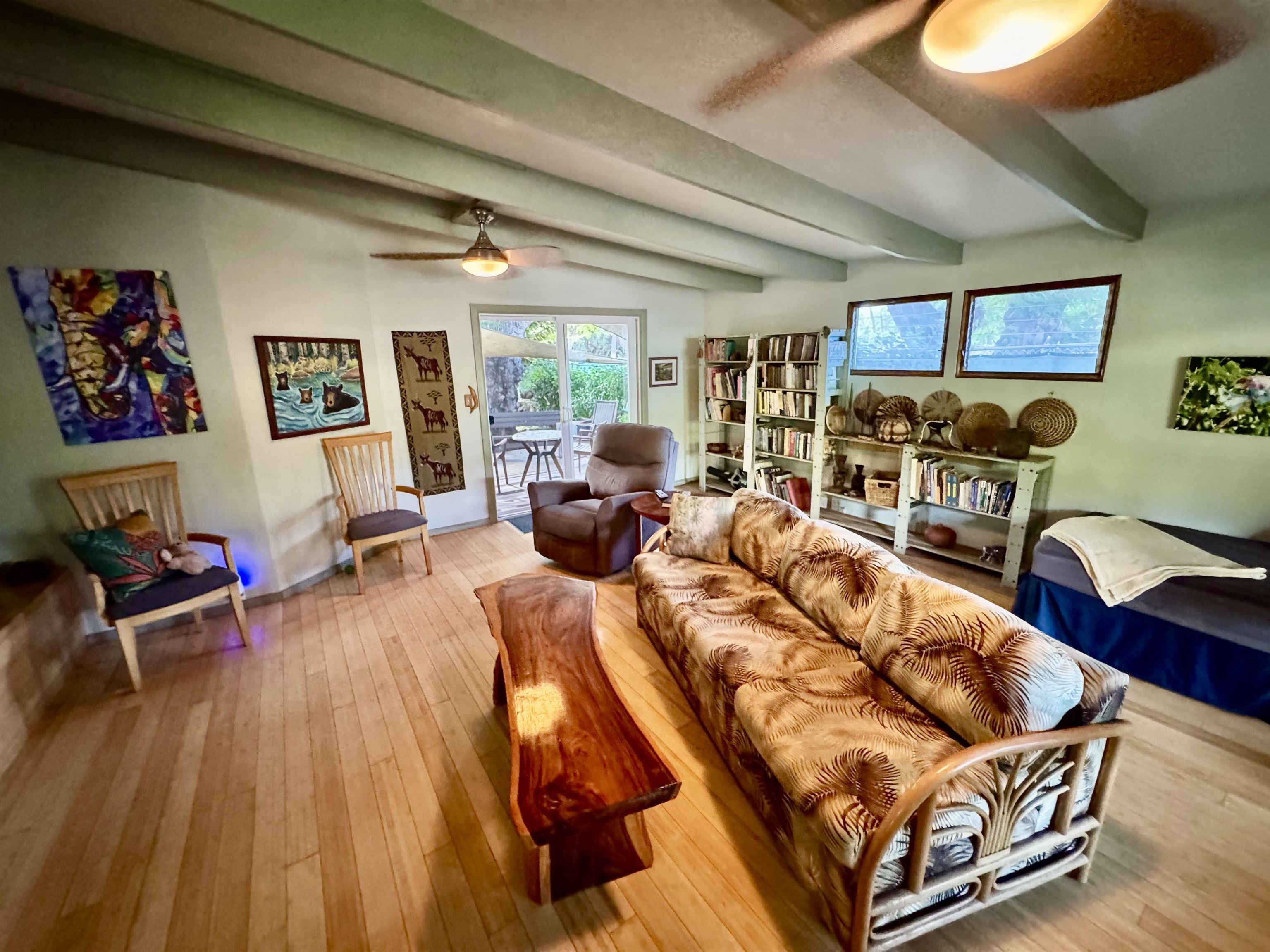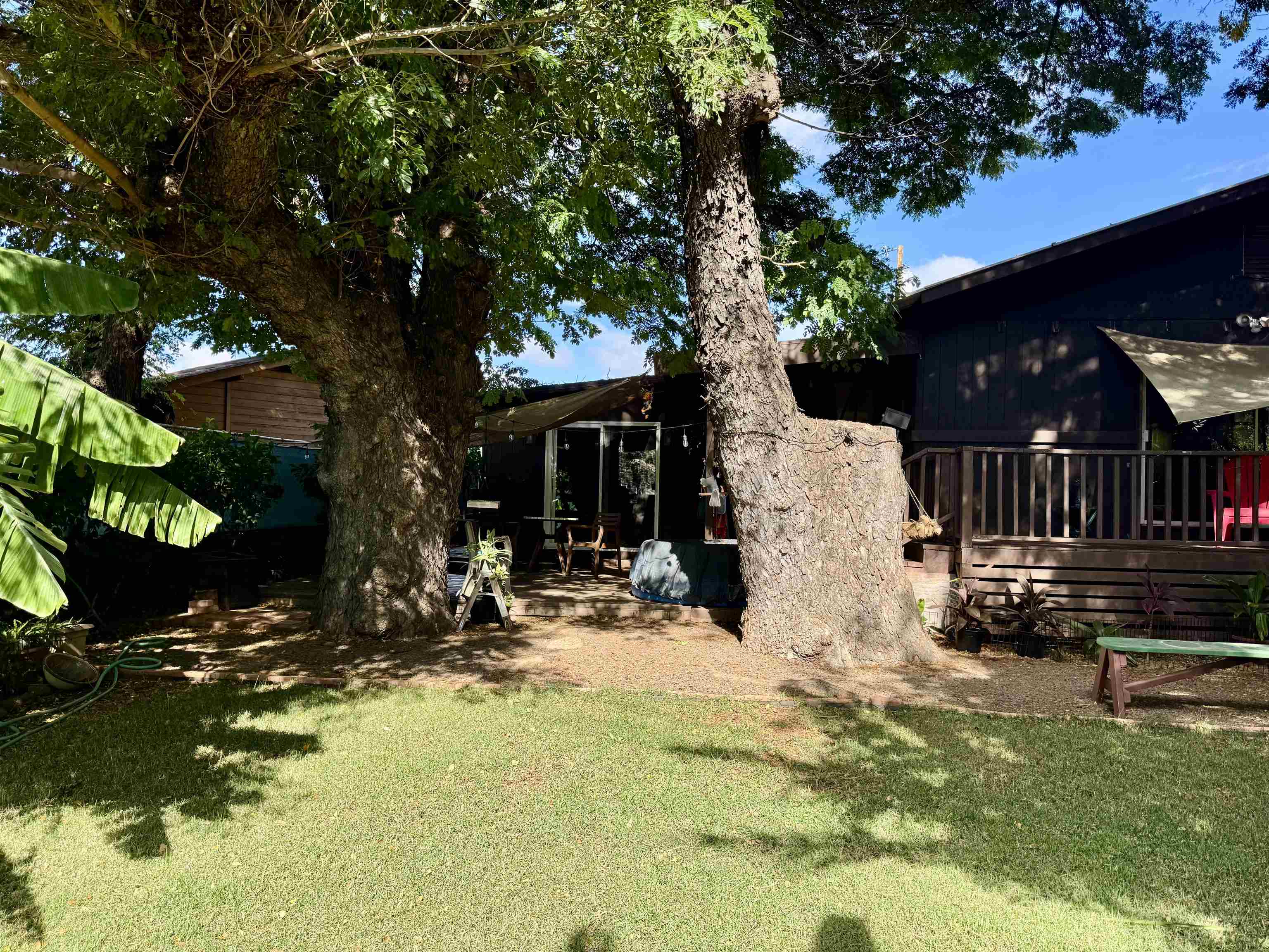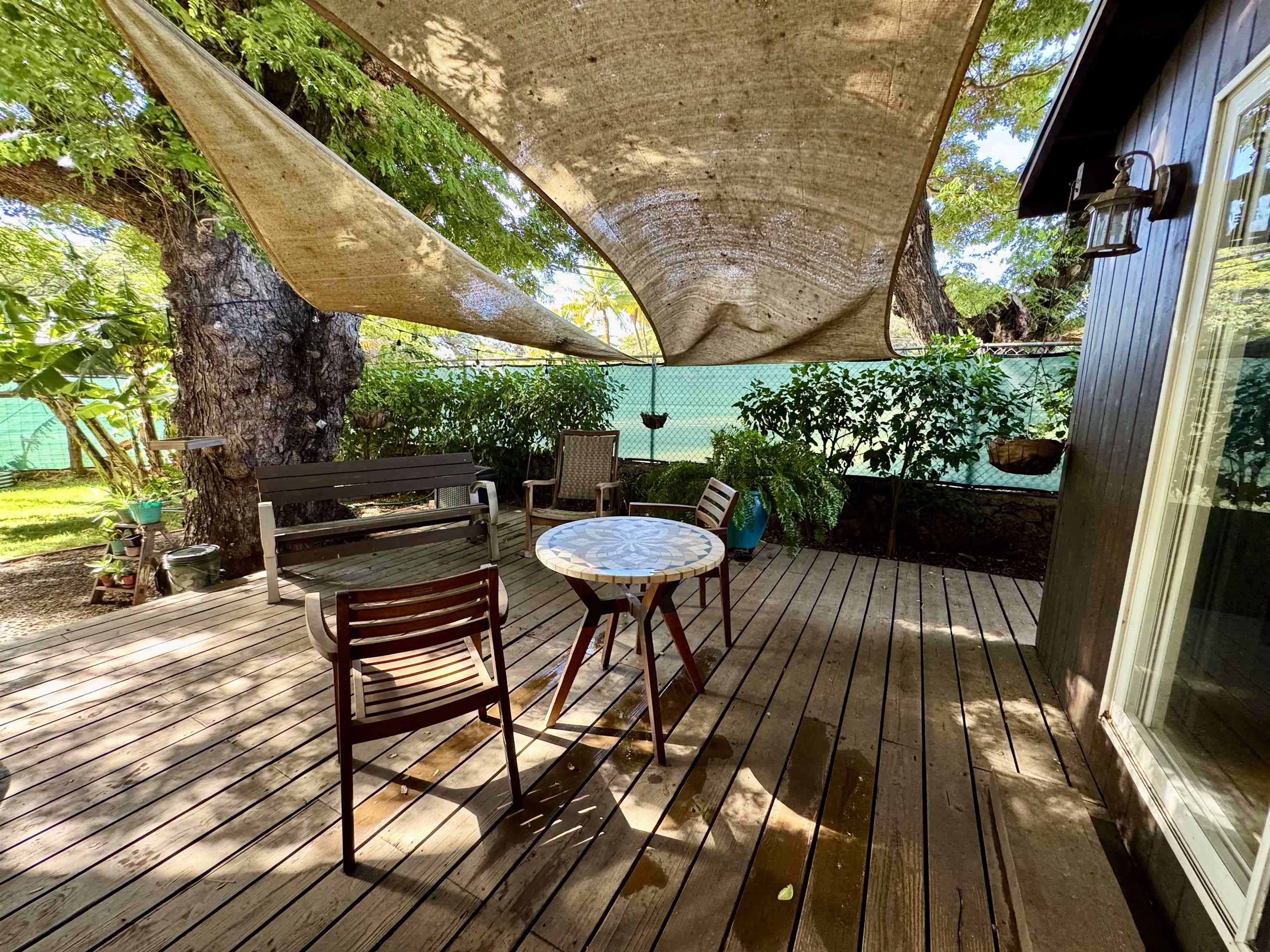 One would describe this home as, inviting, cozy, quaint, delightful, welcoming, homey!! A hidden gem located at the end of a quiet cul-de-sac on the Island of Molokai. This charming 2 bedroom/ one bath home is so tasteful done, it calls you in. There is covered carport so no getting wet with groceries when it's raining. Walk into a beautiful tiled entrance and a sunken in great room with bamboo floors. A bamboo mantel, storage cabinets, makes a great spot to display your art!. Off the living room is sliding doors that open up to a picturesque sitting area for relaxing under the shaded Monkeypod trees. Up the stairs brings you to an over size Kitchen with lots of upgraded quality cabinets, oversize granite countertops, deep farmhouse sink, stainless steel refrigerators, Bosch dishwasher, built in oven and cooktop. Off the kitchen is a dining area perfect for a large family size table or desk area for office with a window AC. There are redwood walls and hard wood floors throughout the original home. Many Ceiling fans Bathroom is tiled with a jacuzzi tub/shower and separate stackable washer and dryer nestle in there. The primary bedroom is over size with a large walk in closet. Off the primary is sliding doors to nice deck to relax and have morning coffee and steps down to a wonderful open air outside shower and sink. The property is very nicely landscaped with a totally fenced in, perfect to keep children or pets contained and the deer out. There are many native plants and a wonderful garden area to grow your own vegetables. This property is perfect for a family starting out or that couple looking to scale down. Only 5 miles to Kaunakakai town where you find all the groceries stores, shops, eateries, pool, school, tennis/pickleball courts, churches, ball parks and a very short walk to the beach!!! It's a must see!!