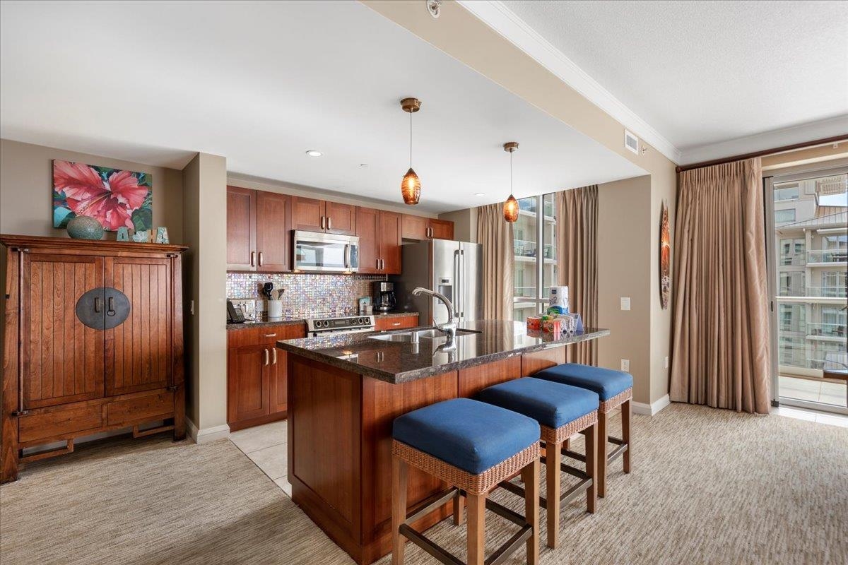 Prime location with exceptional ocean views! This well appointed 2 bedroom, 2 bathroom condo is located at Honua Kai in the Hoku Lani tower. Situated on the inner courtyard, the view includes the Kalohi Channel and northern points of Lana'i. The condominium is fully equipped with stainless steel appliances and tastefully decorated with a tropical motif and fresh paint. Upcoming projects include the installation of new smart tvs and the replacement of air condition units, which is scheduled for summer 2026. Spend your days enjoying Maui and your evenings watching the sunset from your 340 sqft wrap-around lanai. Honua Kai offers well-manicured grounds with tropical flowers, pools and hot tubs, on-site restaurant and market, day spa, and fitness center. Honua Kai is zoned Hotel. The resort is located just a few minutes from additional restaurants, food trucks, shopping, and activities.