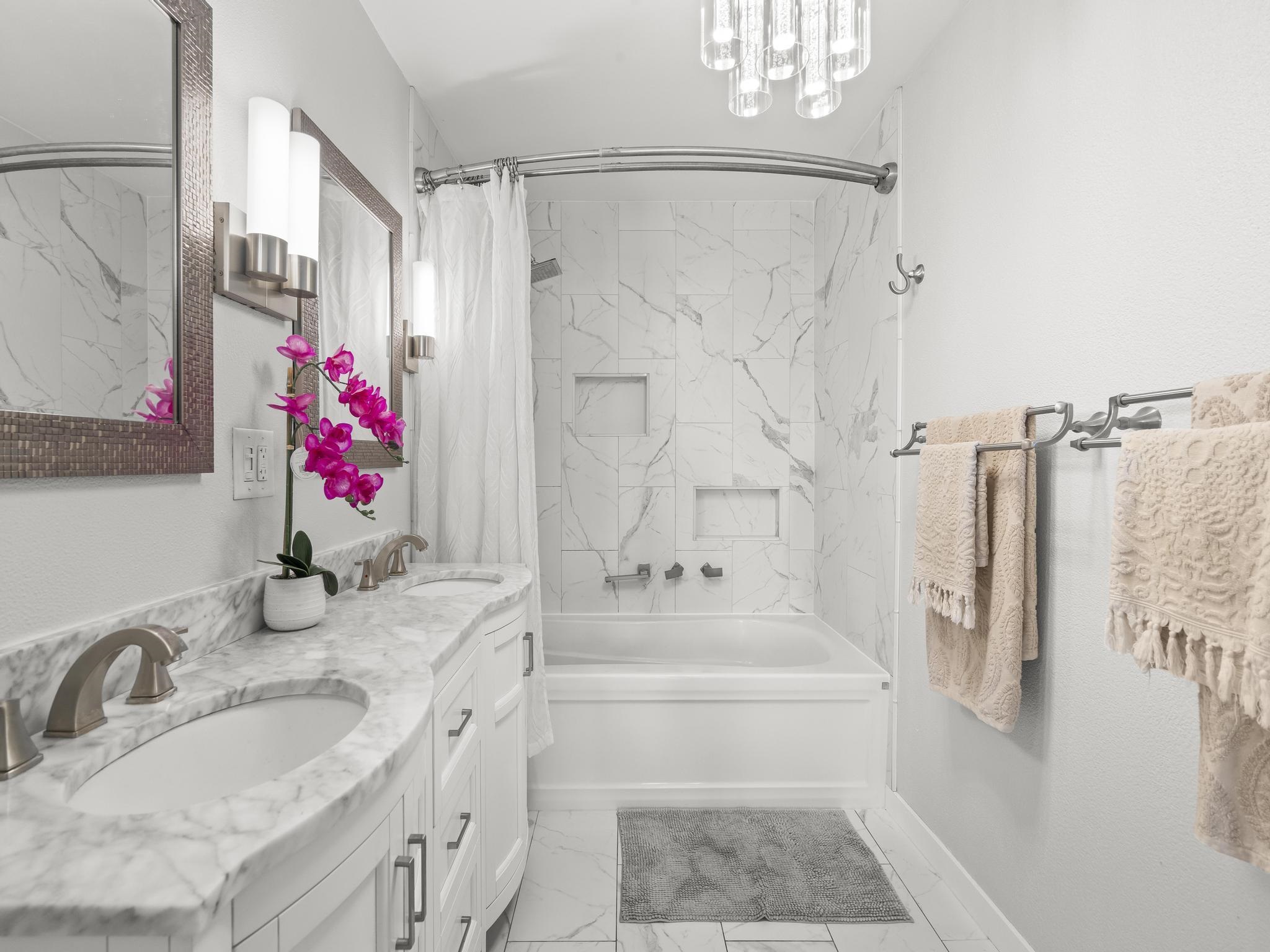 Rare top-floor unit at Harbor Lights! This 2-bedroom, 1-bath penthouse-level home commands sweeping West Maui Mountain views with spectacular sunsets, frequent rainbows, and ocean views. Top-floor privacy with cooling cross breezes. The showpiece bathroom is a resort-quality retreat. Deep soaker tub, jetted shower, double marble vanity, stunning new tile work–a true standout feature. Both bedrooms feature fresh tile flooring. New ceiling fans, light fixtures, and upgraded kitchen appliances including French door stainless refrigerator. Minutes to Queen Ka'ahumanu Center, UH Maui College, airport, Whole Foods, and beach access across the street. Pool, playground, and maintained grounds. Comes fully furnished! Monthly maintenance $933.01 + $308.78 reserves = $1,241.79 includes water. Rental income potential $2,500/month. Limited inventory in this high-demand central Maui location–act fast! All comments, data is provided by seller or seller's representatives. Buyer to confirm all & hold all parties harmless from any discrepancy data in the mls and advertising. Limited Service—Data Entry Addendum signed by seller/s must be signed by buyer/s with Purchase Contract.
